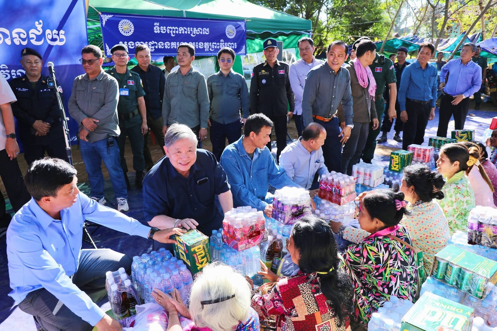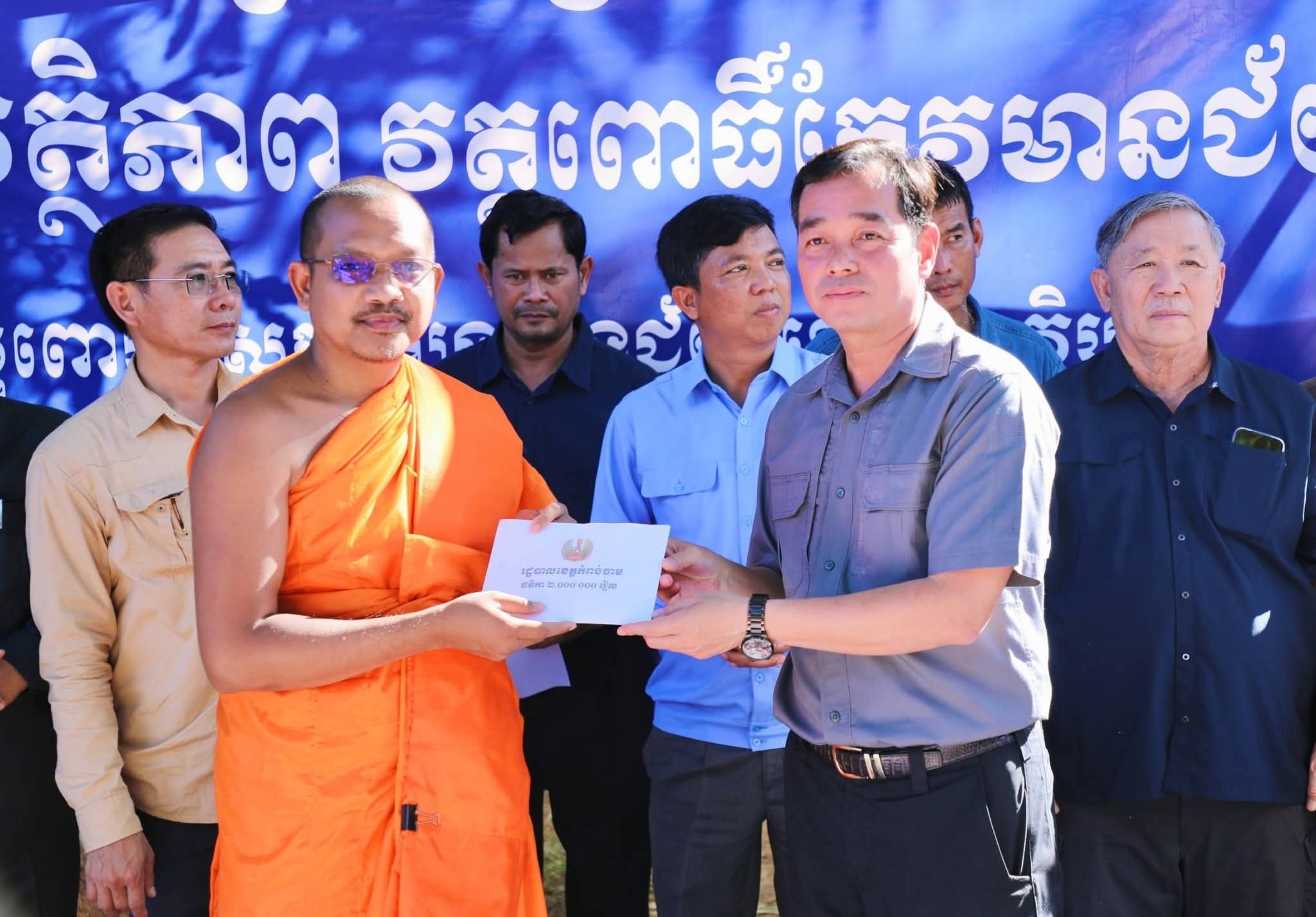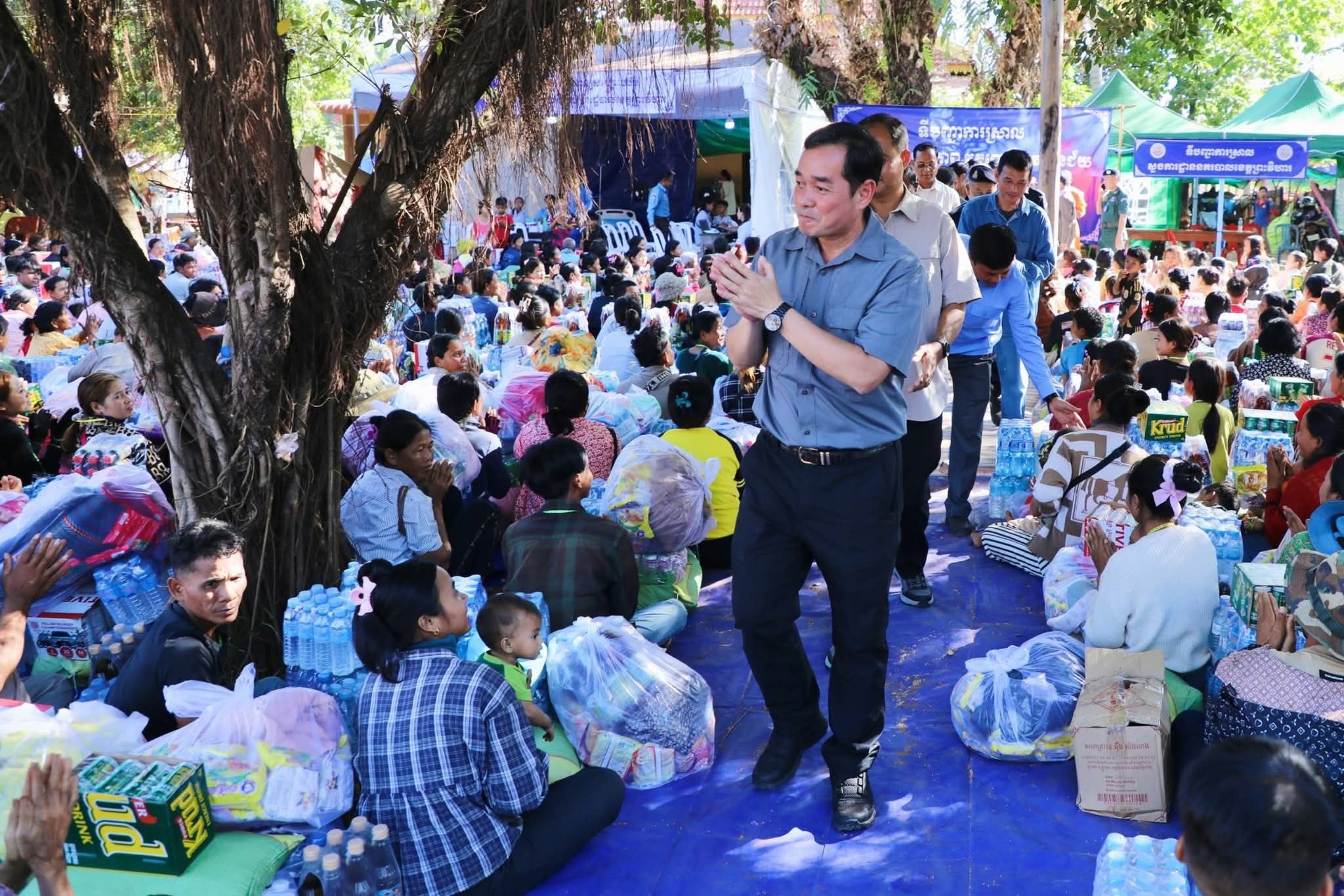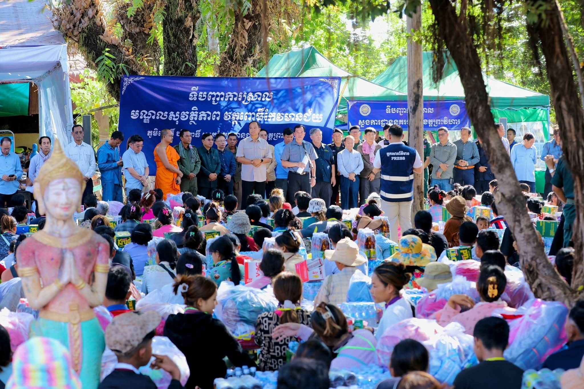 (ព្រះវិហារ): ដើម្បីចូលរូមដោះបញ្ហាស្រាយជីវភាព ការស្នាក់របស់បងប្អូនប្រជាពលរដ្ឋភៀសសឹកដោយសារបញ្ហាជម្លោះព្រំដែនថៃ-កម្ពុជា និងក្នុងស្មារតីជួយគ្នាក្នុងគ្រាលំបាក នៅថ្ងៃទី១៧ ខែធ្នូ ឆ្នាំ២០២៥ នេះ ឯកឧត្តម អ៊ុន ចាន់ដា អភិបាល នៃគណៈអភិបាលខេត្តកំពង់ចាម រួមជាមួយថ្នាក់ដឹកនាំ មន្ទីរអង្គភាពជុំវិញខេត្ត និងមន្ត្រីពាក់ព័ន្ធ បានអញ្ជើញចុះសួរសុខទុក្ខ និងនាំយកអំណោយ ដ៏ថ្លៃថ្លារបស់សម្តេចមហាបវរធិបតី ហ៊ុន ម៉ាណែត នាយករដ្ឋមន្ត្រីនៃព្រះរាជាណាចក្រកម្ពុជា និងលោកជំទាវបណ្ឌិត ពេជ ចន្ទមុនី្ន ហ៊ុនម៉ាណែត និងសប្បុរសជន ផ្តល់ជូនដល់បងប្អូនប្រជាពលរដ្ឋភៀសសឹកចំនួន ១.០០០គ្រួសារ ស្ថិតនៅមណ្ឌលសុវត្ថិ ស្រុកត្បែងមានជ័យ ខេត្តព្រះវិហារ។ ពិធីនេះ ក៏មានវត្តមានអញ្ជើញចូលរួមពីសំណាក់ ឯកឧត្តម គីម រិទ្ធី អភិបាលខេត្តព្រះវិហារ និងថ្នាក់ខេត្ត ស្រុកជាច្រើនរូបទៀត។