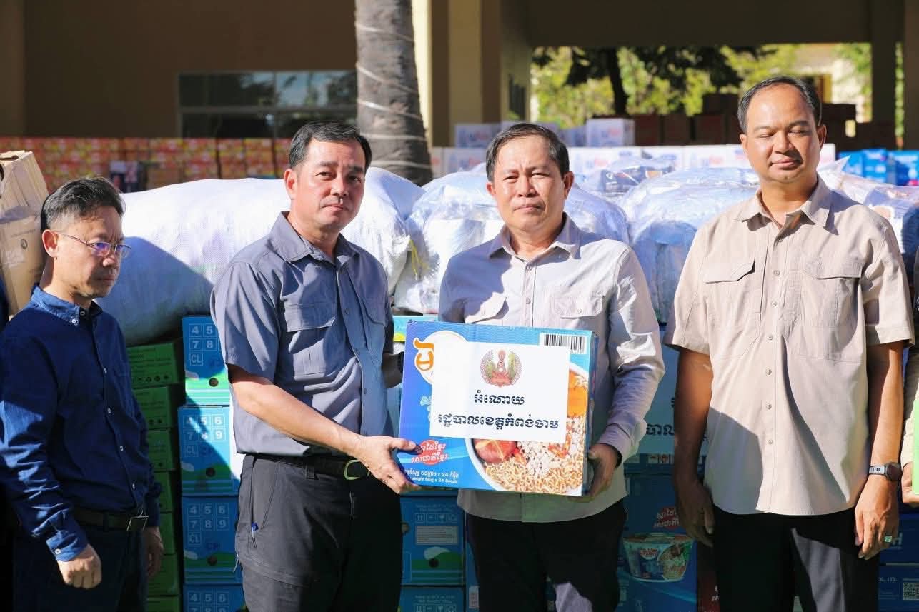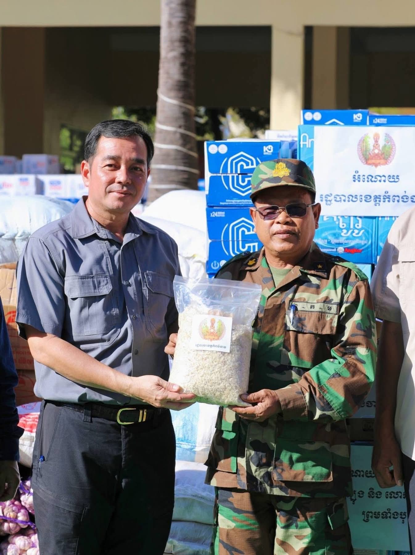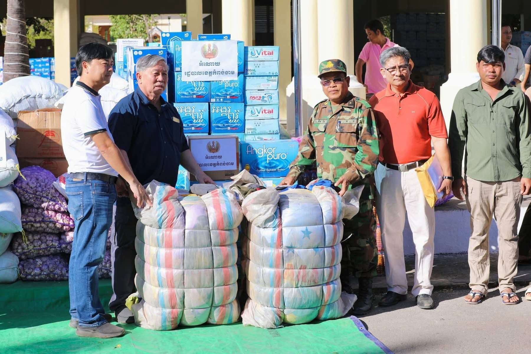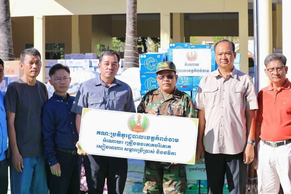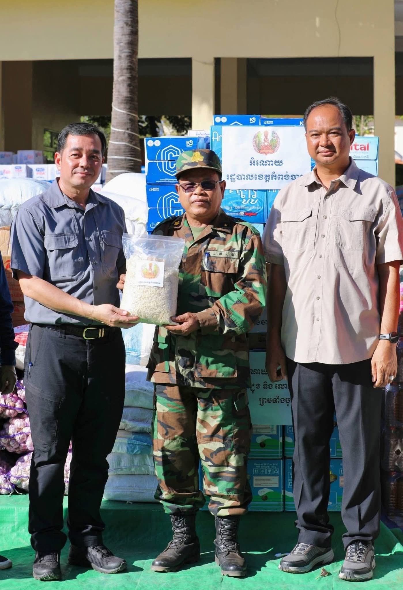 សូមបញ្ជាក់ជម្រាបជូនថា អំណោយដែលរដ្ឋបាលខេត្តកំពង់ចាម បាននាំយកមកចែកជូននៅពេលនេះរួមមាន ៖ អង្ក ថ្នាំពេទ្យ មី ត្រីខកំប៉ុង ត្រីងៀត ឆាយពៅ ខ្ទឹមសរ ទឹកត្រី ទឹកស៊ីអៀវ ទឹកបរិសុទ្ធ ទឹកក្រូច មី ប្រេងឆា ភួយមុង សំសំលៀកបំពាក់ និងសម្ភារប្រើប្រាស់ផ្សេងៗ រួមនឹងថវិកាមួយចំនួនទៀត ផងដែរ៕