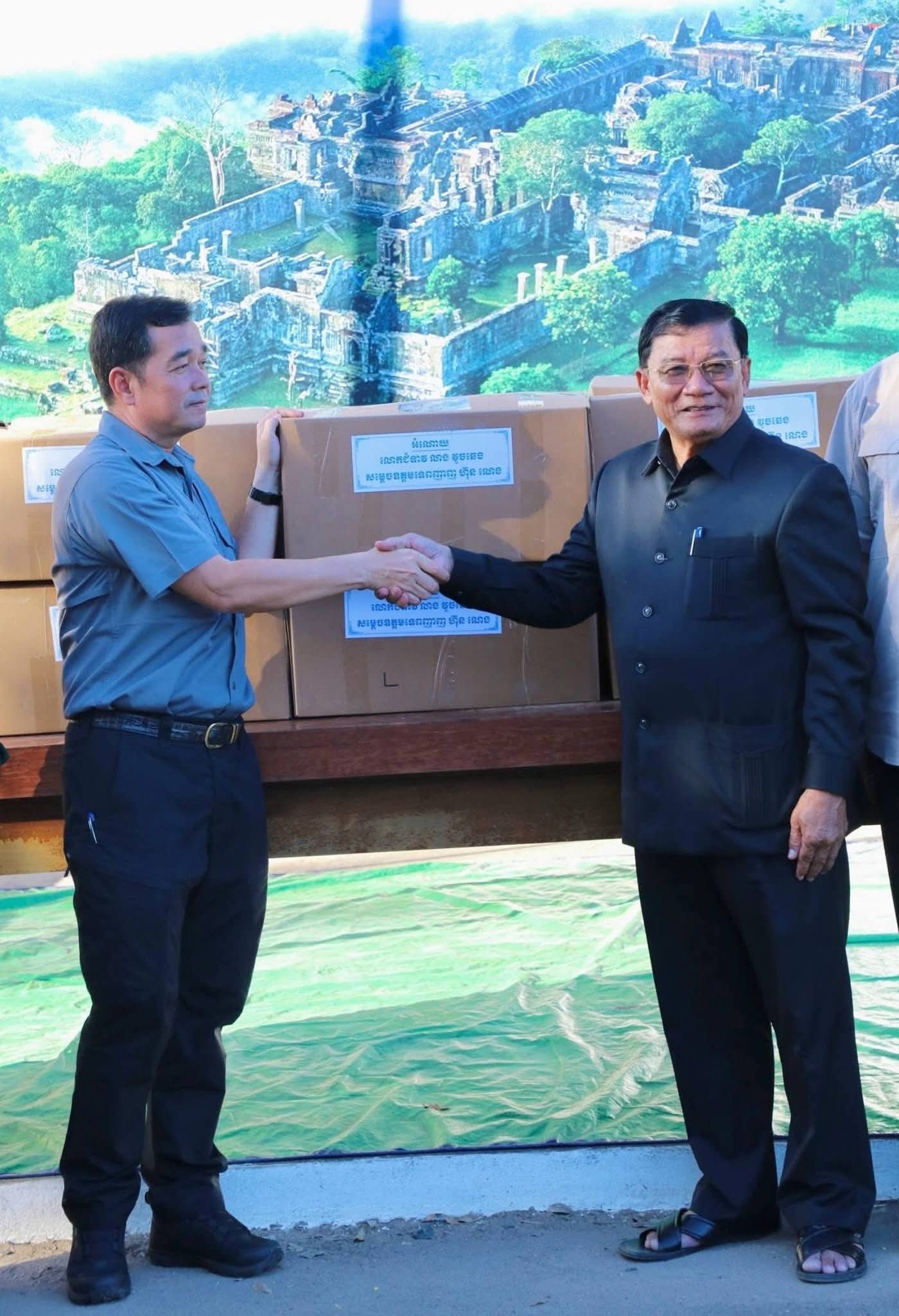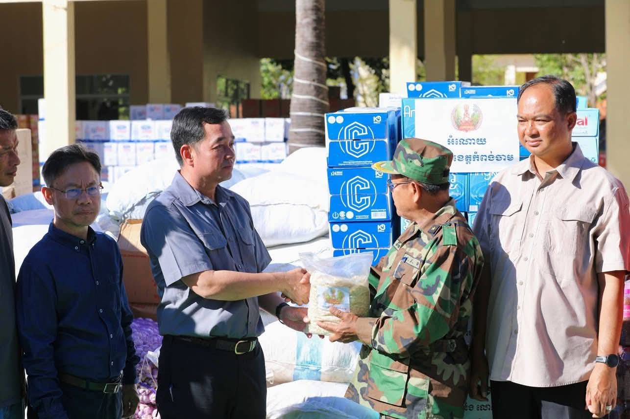 (ព្រះវិហារ): ឯកឯកឧត្តម អ៊ុន ចាន់ដា អភិបាលនៃគណៈអភិបាលខេត្តកំពង់ចាម នៅរសៀលថ្ងៃទី១៧ ខែធ្នូ ឆ្នាំ២០២៥នេះ បានអញ្ជើញចុះសួរសុខទុក្ខ និងនាំយកអំណោយដ៏ថ្លៃថ្លារបស់ប្រជាជន និងសប្បុរសជនខេត្តកំពង់ចាម ផ្តល់ជូនដល់វរកងទ័ព សឹករងខេត្តព្រះវិហារ និងអាជ្ញាធរជាតិប្រាសាទព្រះវិហារ។ ក្រោមវត្តមាន អញ្ជើញទទួលបដិសណ្ឋារកិច្ចយ៉ាងកក់ក្តៅពីសំណាក់ ឯកឧត្តម ប្រាក់ សុវណ្ណ ប្រធានក្រុមប្រឹក្សាខេត្ត និង ឯកឧត្តម គីម រិទ្ធី អភិបាលខេត្តព្រះវិហារ ស្ថិតនៅសាលាខេត្តព្រះវិហារ។