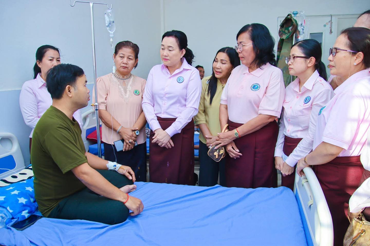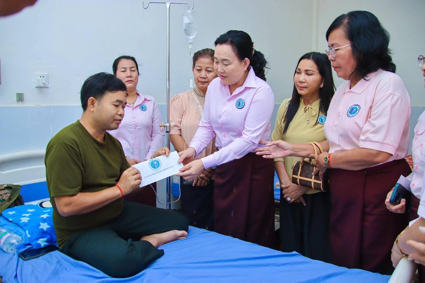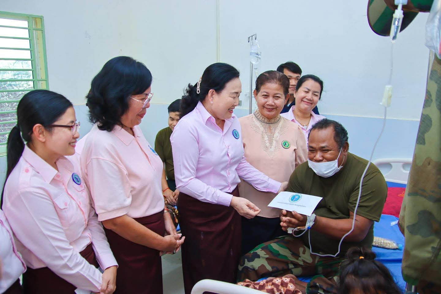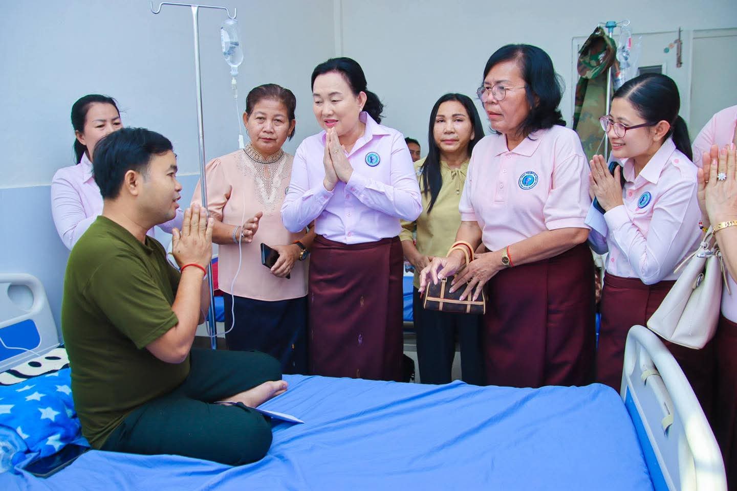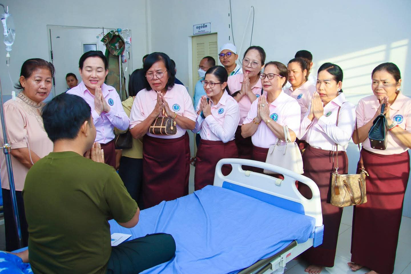 (កំពង់ចាម) ៖ លោកជំទាវ ប៉ាង ដានី ប្រធានប្រតិបត្តិសាខាសមាគមនារី តំណាងលោកជំទាវ ញូង ចរិយា អ៊ុន ចាន់ដា ប្រធានកិត្តិយសសាខាសមាគមនារី ដើម្បីសន្តិភាព និងអភិវឌ្ឍន៍ ខេត្តកំពង់ចាម នៅរសៀលថ្ងៃទី១៨ ខែធ្នូ ឆ្នាំ២០២៥ បានអញ្ជើញសួរសុខទុក្ខ និងនាំអំណោយផ្ដល់ជូនវីរៈកងទ័ព ៣រូប កំពុងសម្រាកព្យាបាលជំងឺ នៅមន្ទីរពេទ្យបង្អែកខេត្តកំពង់ចាម។