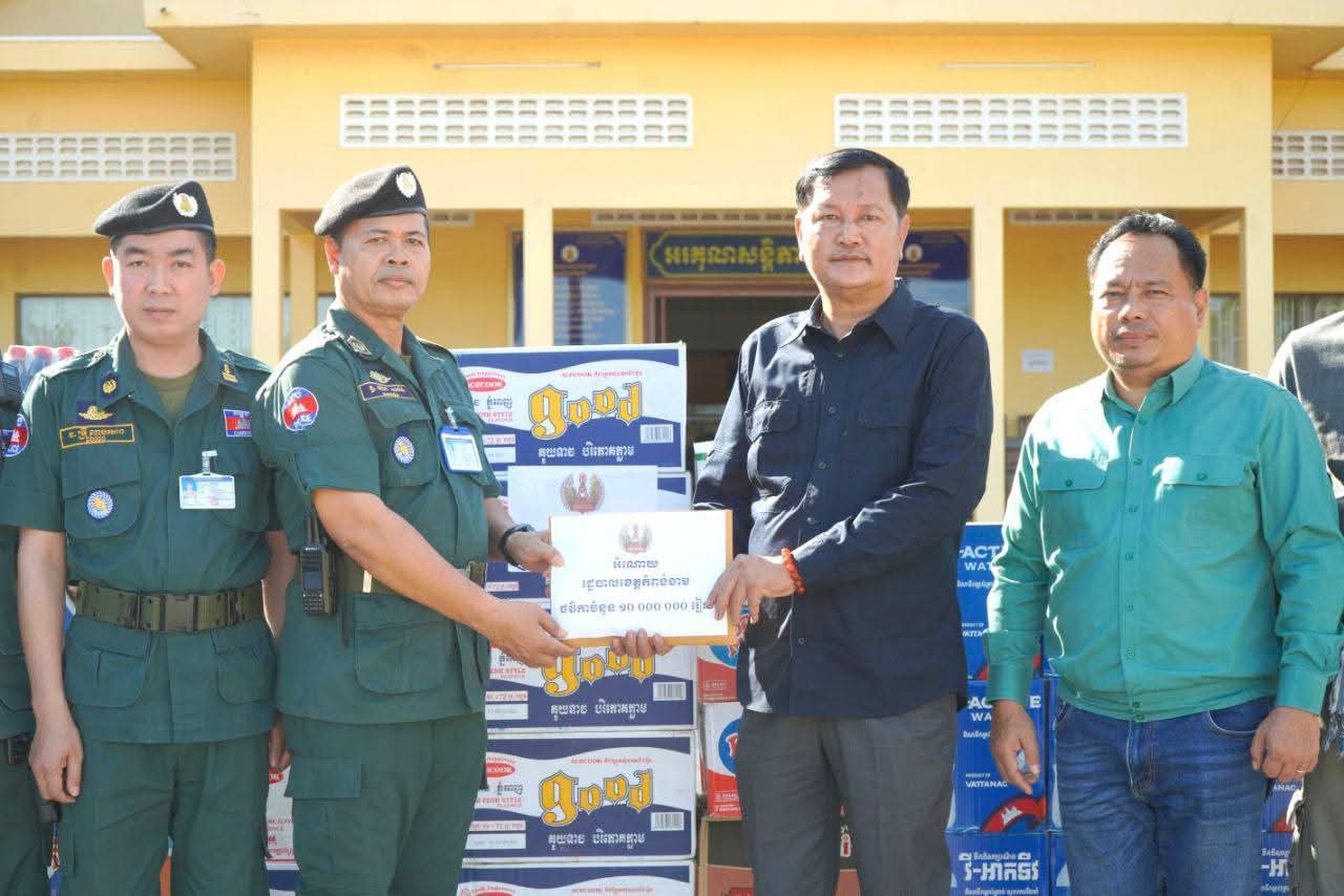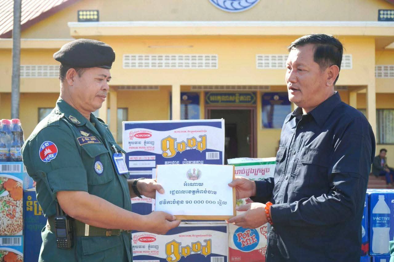 (កំពង់ចាម) : អនុវត្តតាមការណែនាំរបស់ ឯកឧត្តម អ៊ុន ចាន់ដា អភិបាលនៃគណៈអភិបាលខេត្តកំពង់ចាម នៅព្រឹកថ្ងៃសៅរ៍ ទី២០ ខែធ្នូ នេះ លោក លី សុវណ្ណ អភិបាល នៃគណៈអភិបាលក្រុងកំពង់ចាម បាននាំយកអំណោយរបស់រដ្ឋបាលខេត្ត និងសប្បុរសជន ជូនដល់កងនគរបាលការពារព្រំដែន ទិសជួរមុខខេត្តព្រះវិហារ ក្រោមពាក្យស្លោក “សមរភូមិក្រោយនិងសមរភូមិមុខគឺតែមួយ”។
