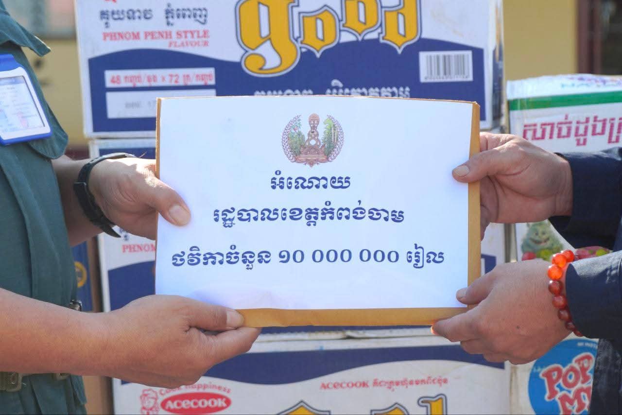 អំណោយដែលបានបញ្ជូនទៅចំនួន ២រថយន្ត ក្នុងនោះរួមមាន៖ ថវិកា ចំនួន ១០ លានរៀល នំសាំងវិច ចំនួន ១១៩ គីឡូក្រាម ស៊ុតមាន់ ស៊ុតទា ចំនួន ១.០០០គ្រាប់ កន្ទុយបោះ ចំនួន ៥០ កំប៉ុង បន្លែគ្រប់មុខ ចំនួន ២៣២ គីឡូក្រាម អំបិល ចំនួន ៥០ គីឡូក្រាម ប៊ីចេង ចំនួន ២៧ គីឡូក្រាម សៀង ចំនួន ២៨ យូរ ទឹកម្ទេស ចំនួន ៦ យូរ ប្រេងខ្យង ចំនួន ៥ កេស ម្សៅស៊ុប ចំនួន ៥ គីឡូក្រាម នំចម្រុះ ចំនួន ២៥៨ គីឡូក្រាម កាហ្វេ ចំនួន ៥៣ គីឡូក្រាម តែ ចំនួន ៦០ កញ្ចប់ ចេកហាល ចំនួន ១២ គីឡូក្រាម ចេកឆាប ចំនួន ៦០០ កញ្ចប់ សណ្តែកសៀងលីងចំនួន ២២ គីឡូក្រាម គ្រាប់ជី ចំនួន ៩ កញ្ចប់ អំបុកមានសាច់ ចំនួន ៤៣០ កញ្ចប់ អំបុកអត់សាច់ ចំនួន ៤៩០ កញ្ចប់ ត្រីខកំប៉ុង ចំនួន ២០ កេស មីជាតិ ចំនួន ១០០ កេស គុយទាវGood ចំនួន ១០ កេសធំ តាំងហ៊ុន ចំនួន ៤០ កញ្ចប់ មីកំប៉ុង ចំនួន ១៤ កេស ទឹកសុទ្ធ V-Active ចំនួន ២០០ កេស បាយក្តាំង ចំនួន ២.៥០២កញ្ចប់ ឆៃប៉ូវ ត្រសក់ចាវ គ្រឿងជ្រក់ ចំនួន ១៩០ កញ្ចប់ នំធុង ចំនួន ៦ធុង សាច់មាន់ស្រស់ ចំនួន ២៥០គីឡូក្រាម បន្លែគ្រប់មុខ ចំនួន ២៣២គីឡូក្រាម ប្រេងឆា ចំនួន ១០០ លីត្រ ខ្ទឹមស ចំនួន ៧៦គីឡូក្រាម ស្ករស ចំនួន ៥០គីឡូក្រាម ទឹកត្រី ចំនួន២៥យួរ ទឹកស៊ីអ៊ីវ ចំនួន២៥យួរ ធូបមូស ចំនួន៤០៥ប្រអប់ សាប៊ូដុសខ្លួន (ទឹក) ចំនួន៥២ដប សាប៊ូលាងចាន ចំនួន ៣៩ដប ថ្នាំពេទ្យ ចំនួន១០កេស ក្រដាសជូតមាត់ ចំនួន ២៨៩ដុំ គ្រាប់ស្វាយចន្ទី កេសធំ ចំនួន ៥០កេសធំ គ្រាប់ស្វាយចន្ទី កេសតូច ចំនួន ៨កេសតូច សំឡីត្បាត្រចៀក ចំនួន ១ថង់ សាច់ក្រកសាច់ជ្រូក ចំនួន ៤១គីឡូក្រាម ប្រហុកខ្ទះ ចំនួន ៣កេស បារី ចំនួន ៤៧សុង៕