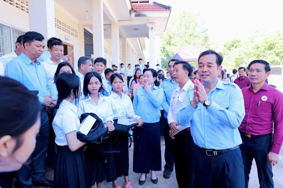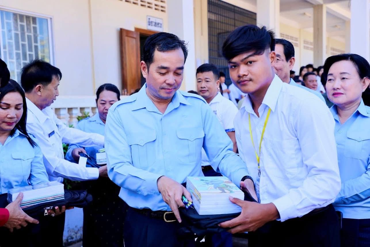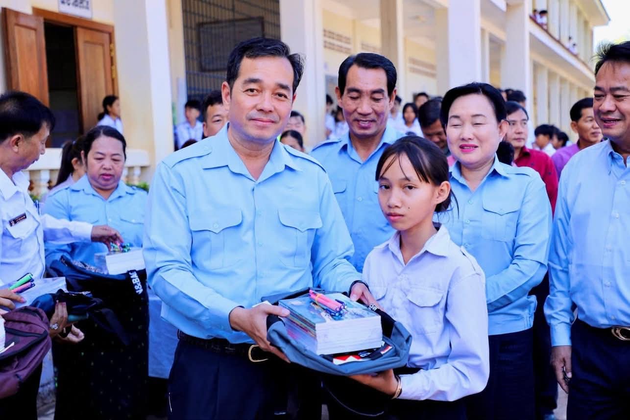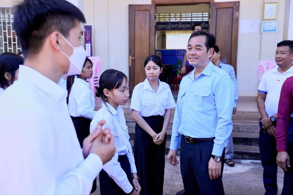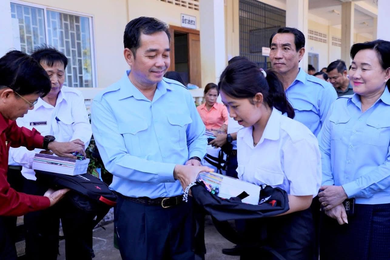 ក្នុងឱកាសនោះ ឯកឧត្តម អភិបាលខេត្ត បានឧបត្ថម្ភ ជាសម្ភារៈសិក្សាមួយចំនួនជូនដល់ក្មួយ សិស្សានុសិស្ស និងបានផ្តាំផ្ញើឲ្យក្មួយសិស្សានុសិស្សទាំងអស់នោះ ខិតខំប្រឹងប្រែងសិក្សារៀនសូត្រឲ្យបានល្អប្រសើរ ដោយកុំបាច់ព្រួយបារម្ភអ្វីក្រៅពីរៀសូត្រ ព្រោះថាបញ្ហាព្រំដែនដែលត្រូវបាននឹងកំពុងរងការយាយីពីចោរឈ្លានពានក៏ពិតមែន ប៉ុន្តែសូមក្មួយសិស្សានុសិស្ស មេត្តាទុកចិត្ត និងជឿជាក់លើ រាជរដ្ឋាភិបាលយើង ដែលដឹកនាំដោយសម្តេចមហាបវរធិបតី ហ៊ុន ម៉ាណែត នាយករដ្ឋមន្ត្រីនៃព្រះរាជាណាចក្រកម្ពុជា និង ភាពអង់អាចក្លាហានរបស់ វីរកងទ័ពយើង។