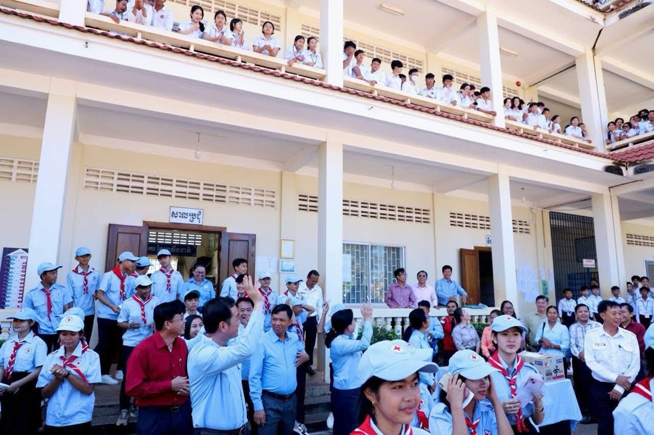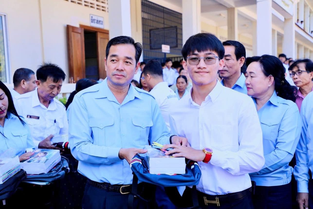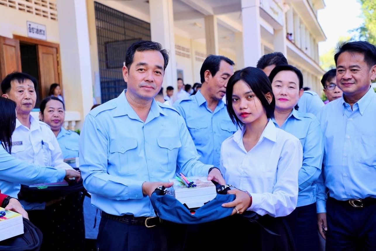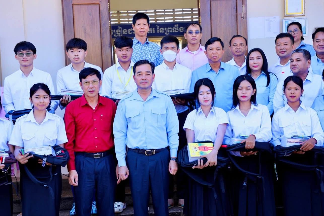 ក្នុងឱកាសនោះ ឯកឧត្តម អភិបាលខេត្ត បានឧបត្ថម្ភ ជាសម្ភារៈសិក្សាមួយចំនួនជូនដល់ក្មួយ សិស្សានុសិស្ស និងបានផ្តាំផ្ញើឲ្យក្មួយសិស្សានុសិស្សទាំងអស់នោះ ខិតខំប្រឹងប្រែងសិក្សារៀនសូត្រឲ្យបានល្អប្រសើរ ដោយកុំបាច់ព្រួយបារម្ភអ្វីក្រៅពីរៀសូត្រ ព្រោះថាបញ្ហាព្រំដែនដែលត្រូវបាននឹងកំពុងរងការយាយីពីចោរឈ្លានពានក៏ពិតមែន ប៉ុន្តែសូមក្មួយសិស្សានុសិស្ស មេត្តាទុកចិត្ត និងជឿជាក់លើ រាជរដ្ឋាភិបាលយើង ដែលដឹកនាំដោយសម្តេចមហាបវរធិបតី ហ៊ុន ម៉ាណែត នាយករដ្ឋមន្ត្រីនៃព្រះរាជាណាចក្រកម្ពុជា និង ភាពអង់អាចក្លាហានរបស់ វីរកងទ័ពយើង។