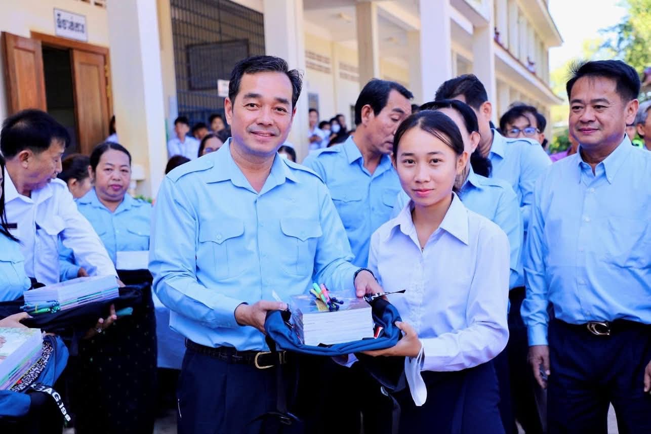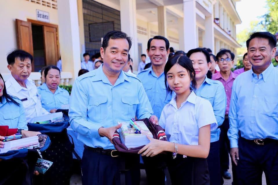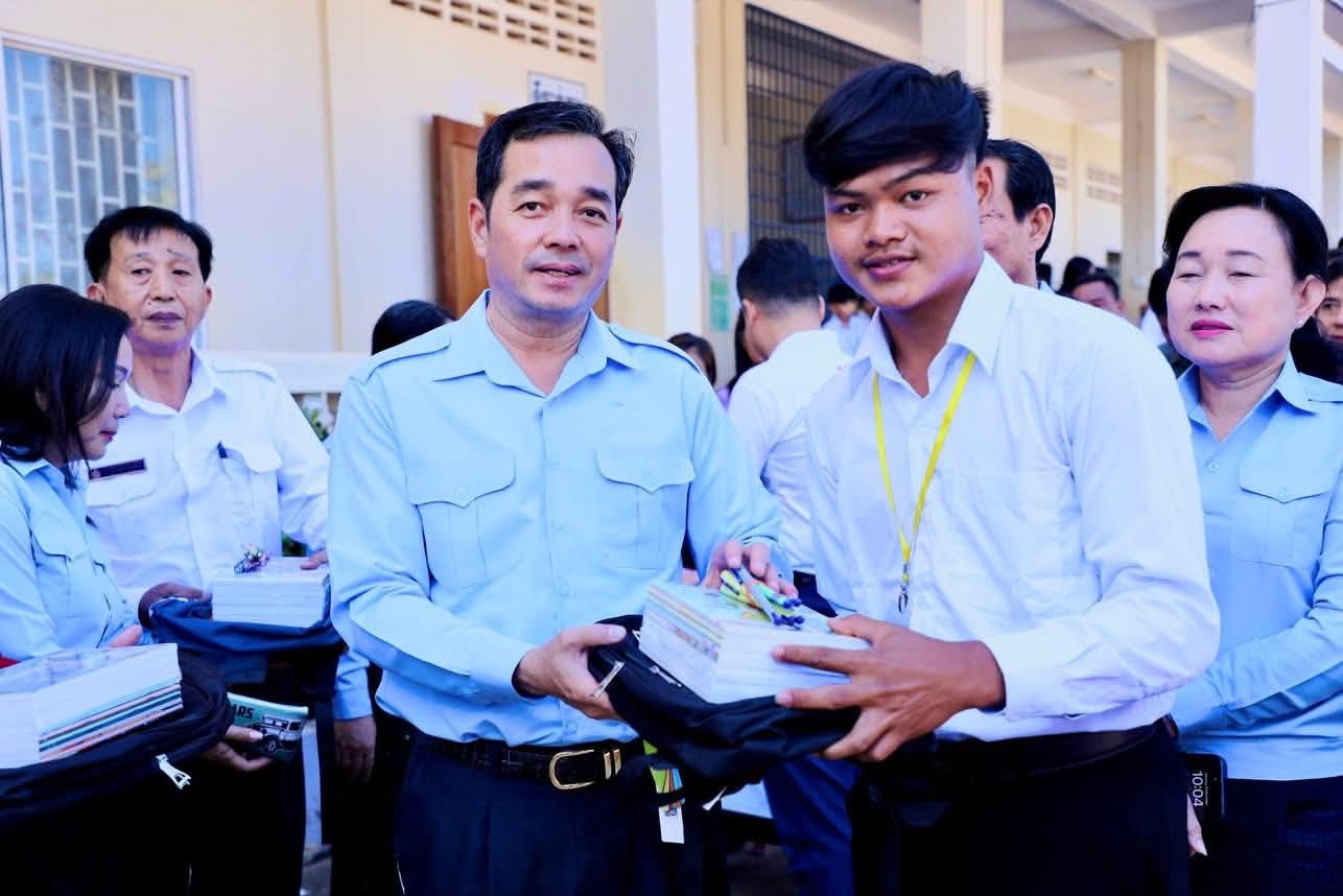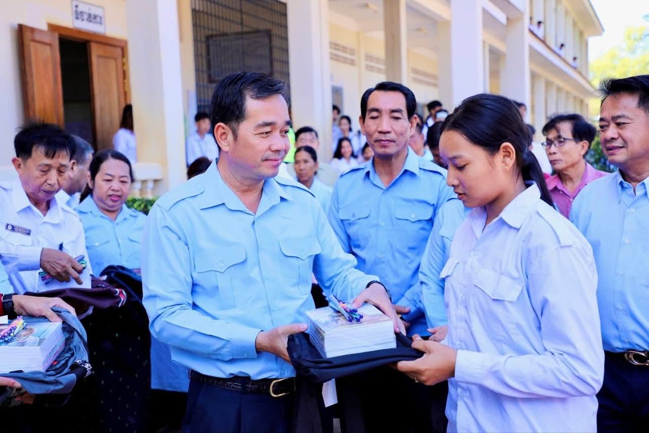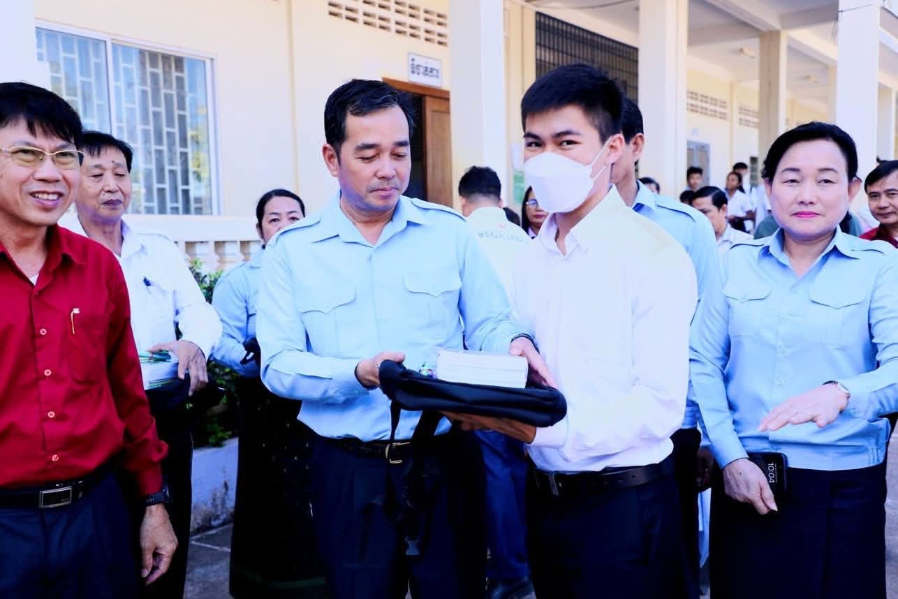ក្នុងឱកាសនោះ ឯកឧត្តម អភិបាលខេត្ត បានឧបត្ថម្ភ ជាសម្ភារៈសិក្សាមួយចំនួនជូនដល់ក្មួយ សិស្សានុសិស្ស និងបានផ្តាំផ្ញើឲ្យក្មួយសិស្សានុសិស្សទាំងអស់នោះ ខិតខំប្រឹងប្រែងសិក្សារៀនសូត្រឲ្យបានល្អប្រសើរ ដោយកុំបាច់ព្រួយបារម្ភអ្វីក្រៅពីរៀសូត្រ ព្រោះថាបញ្ហាព្រំដែនដែលត្រូវបាននឹងកំពុងរងការយាយីពីចោរឈ្លានពានក៏ពិតមែន ប៉ុន្តែសូមក្មួយសិស្សានុសិស្ស មេត្តាទុកចិត្ត និងជឿជាក់លើ រាជរដ្ឋាភិបាលយើង ដែលដឹកនាំដោយសម្តេចមហាបវរធិបតី ហ៊ុន ម៉ាណែត នាយករដ្ឋមន្ត្រីនៃព្រះរាជាណាចក្រកម្ពុជា និង ភាពអង់អាចក្លាហានរបស់ វីរកងទ័ពយើង។