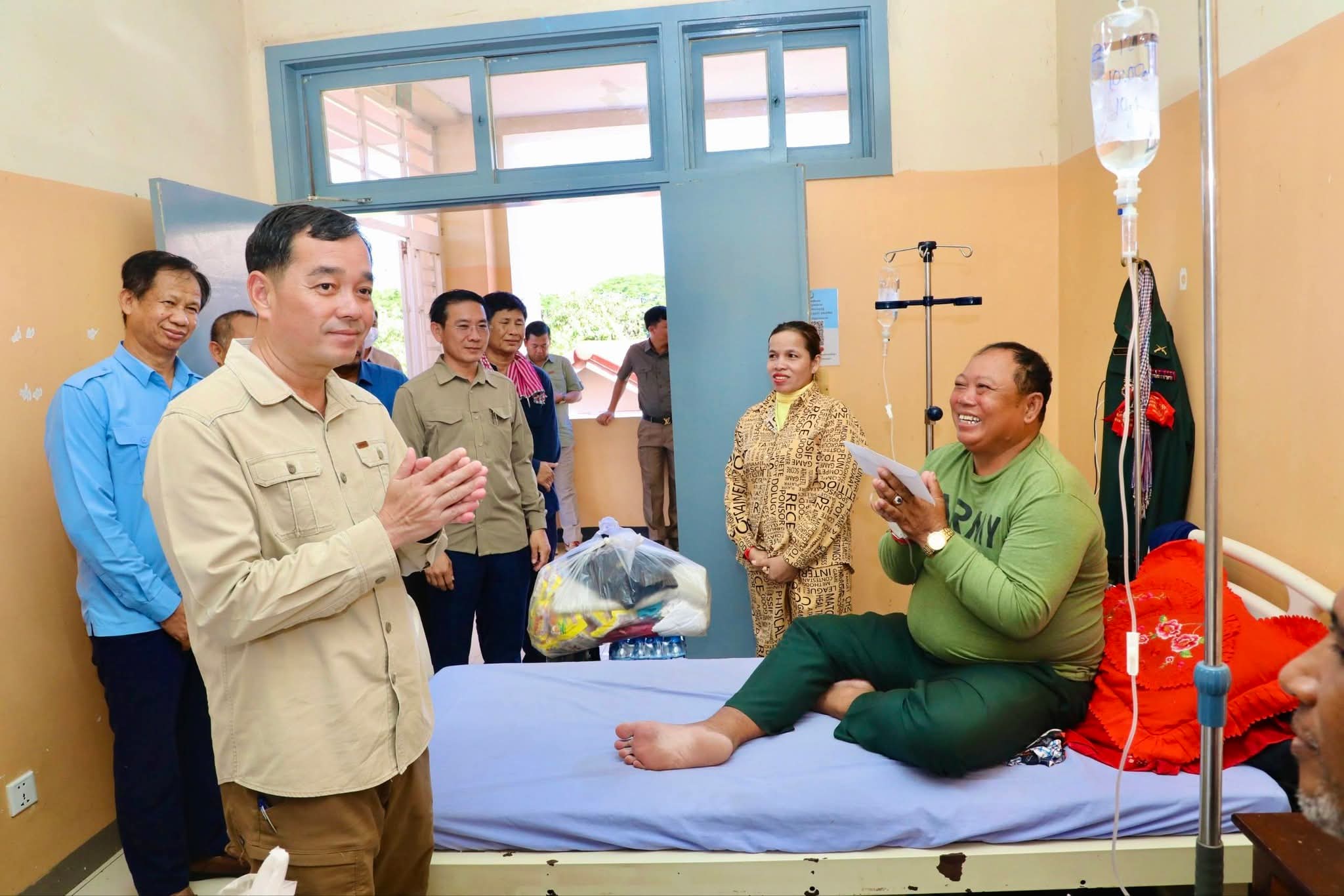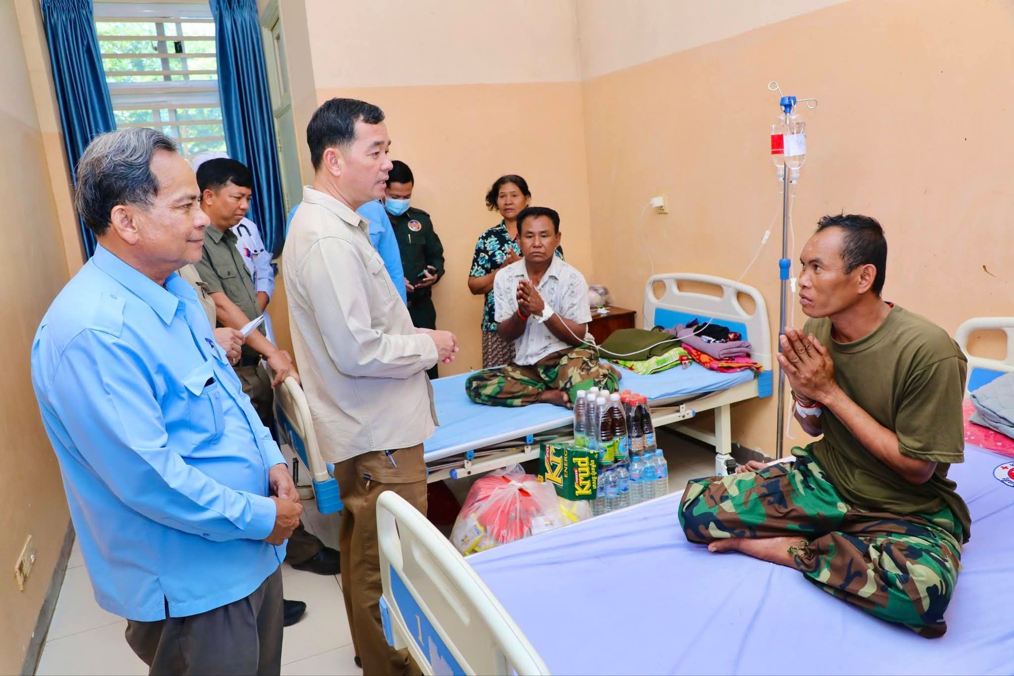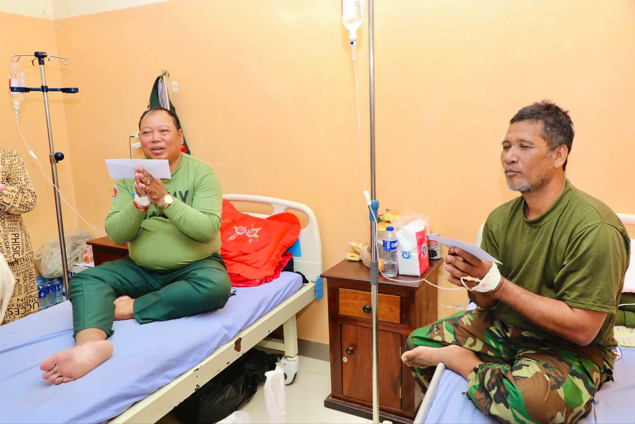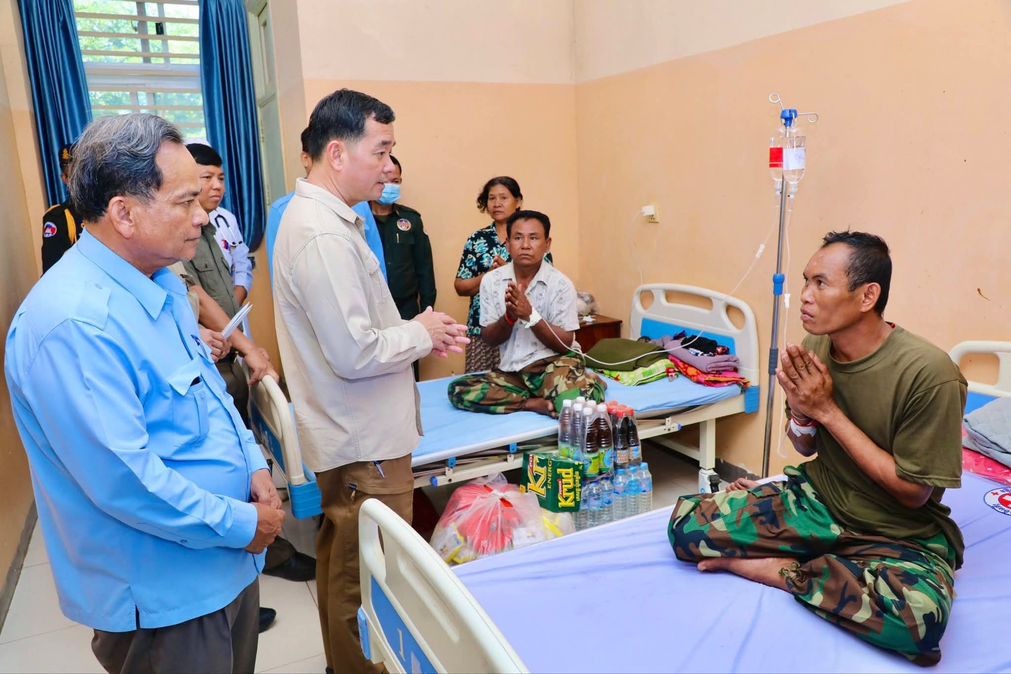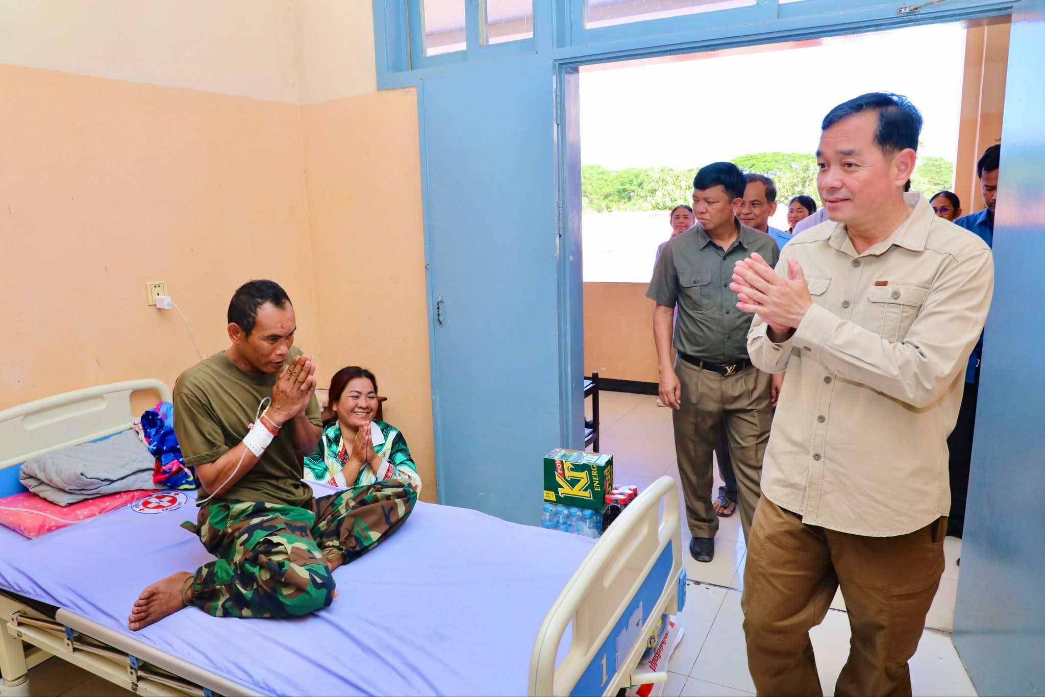 ឯកឧត្តម អភិបាលខេត្ត ថ្លែងការកោតសរសើរដល់វីរភាពដ៏អង់អាចក្លាហានរបស់វីរកងទ័ពរបស់យើង និងស្នើឲ្យបងៗ ខិតខំថែទាំសុខភាព ស្តាប់តាមការណែនាំរបស់វេជ្ជបញ្ជា ដើម្បីឆាប់បានជាសះស្បើយ នឹងអាលបានទៅបម្រើជាតិមាតុភូមិឡើងវិញ។ ទន្ទឹមនោះ ឯកឧត្តម អភិបាលខេត្ត ក៏បានផ្ដាំផ្ញើដល់ក្រុមគ្រូពេទ្យសូមយកចិត្តទុកដាក់ថែទាំ និងព្យាបាលដល់វីរកងទ័ពរបស់យើងឲ្យបានល្អប្រសើរ ដោយការចំណាយជាបន្ទុករបស់រដ្ឋបាលខេត្ត។