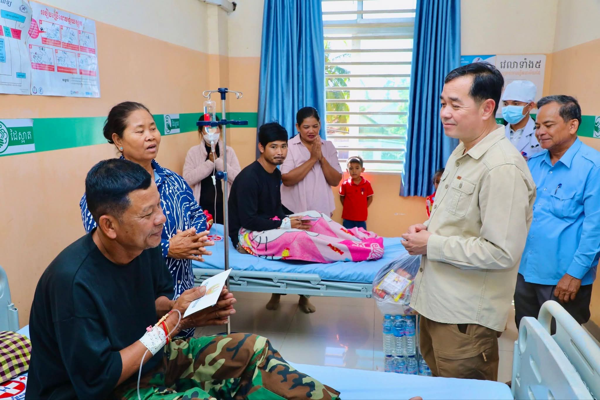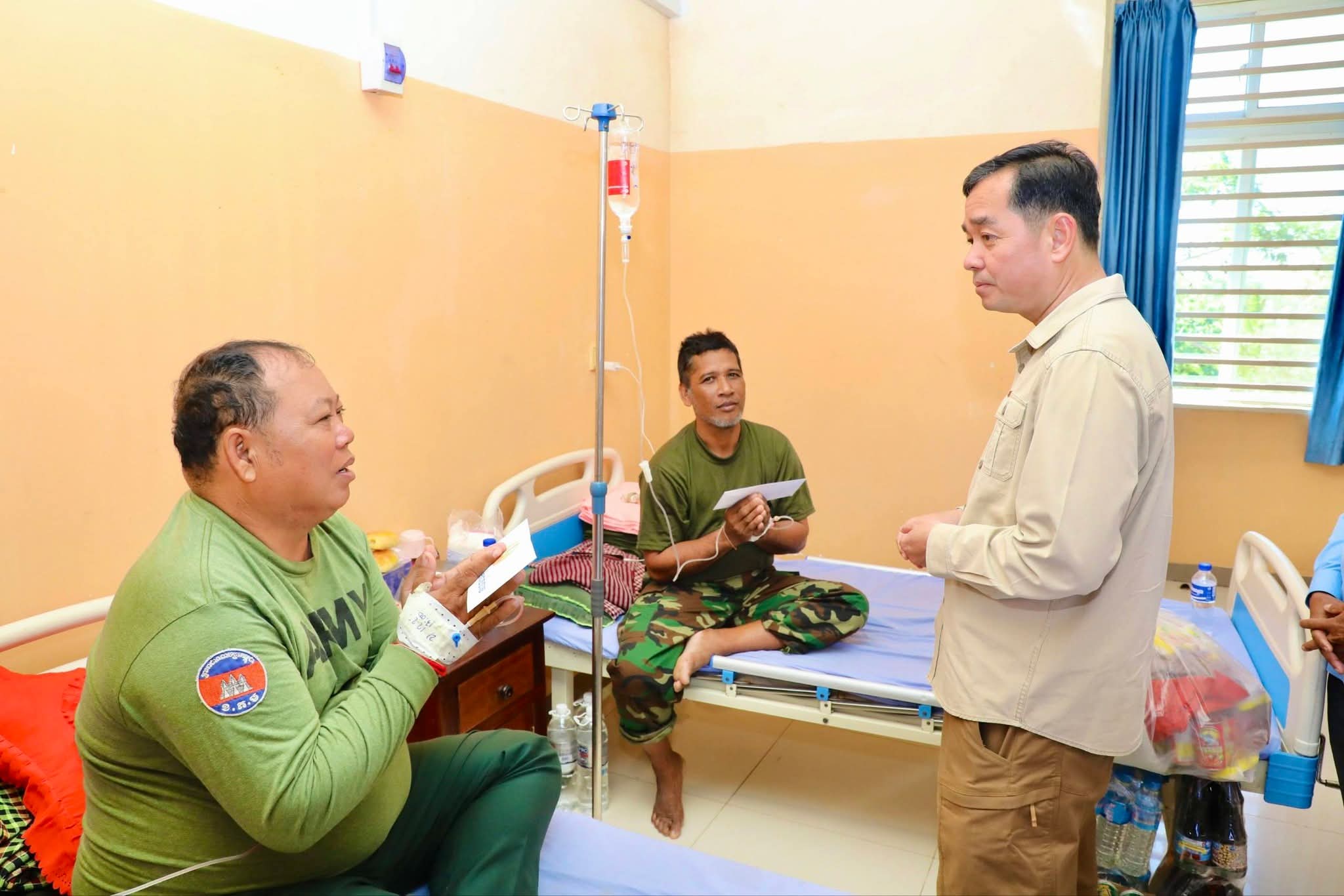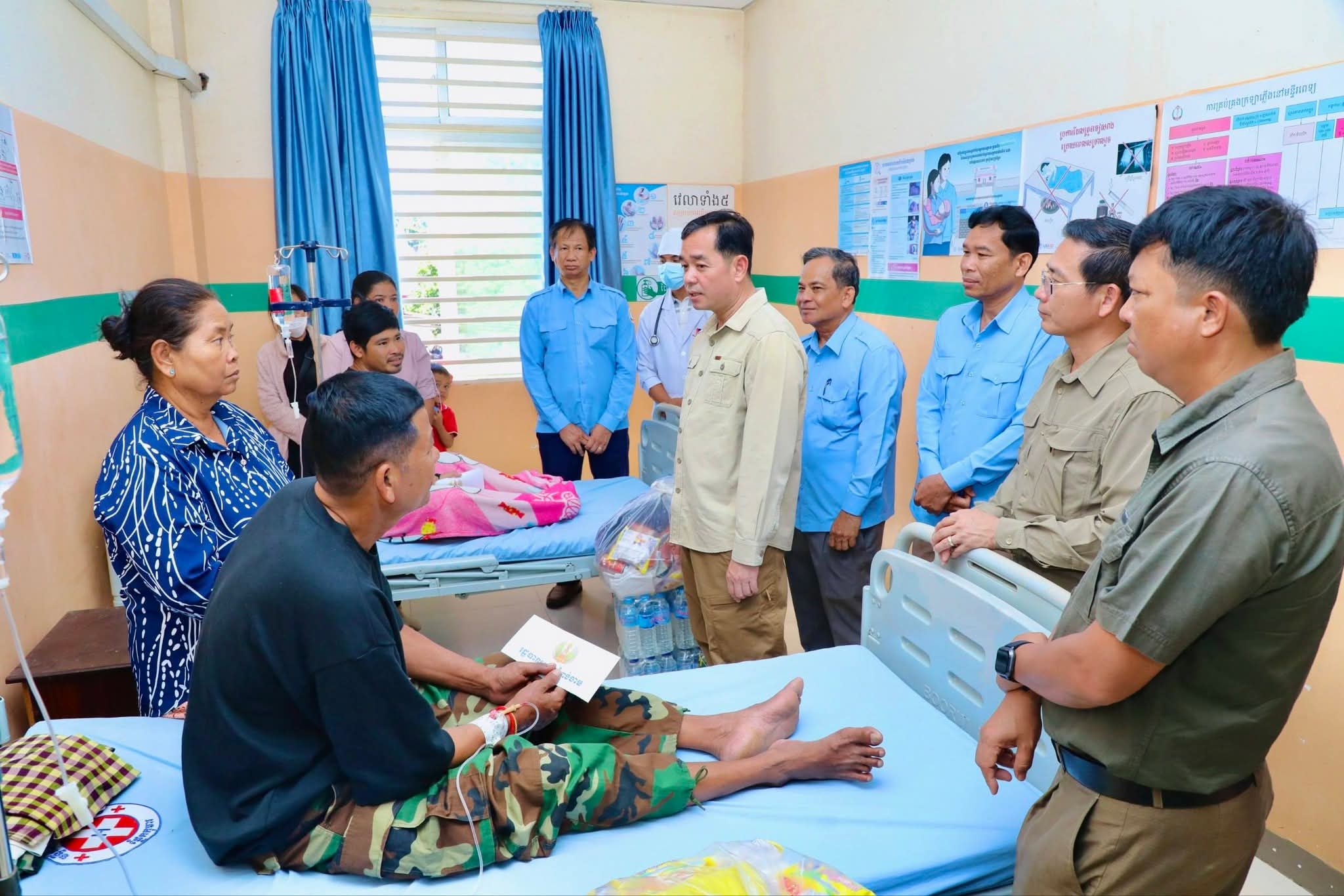 (កំពង់ចាម)៖ នៅព្រឹកថ្ងៃទី២១ ខែធ្នូ ឆ្នាំ ២០២៥ នេះឯកឧត្តម អ៊ុន ចាន់ដា អភិបាលនៃគណៈអភិបាលខេត្តកំពង់ចាម បានដឹកនាំក្រុមការងារខេត្ត អាជ្ញាធរមូលដ្ឋាន អញ្ជើញចុះសួរសុខទុក្ខ និងនាំអំណោយផ្ដល់ជូនវីរកងទ័ព ៦រូប ដែលកំពុងសម្រាកព្យាបាលជំងឺ នៅមន្ទីរពេទ្យបង្អែកស្រុកជើងព្រៃ។