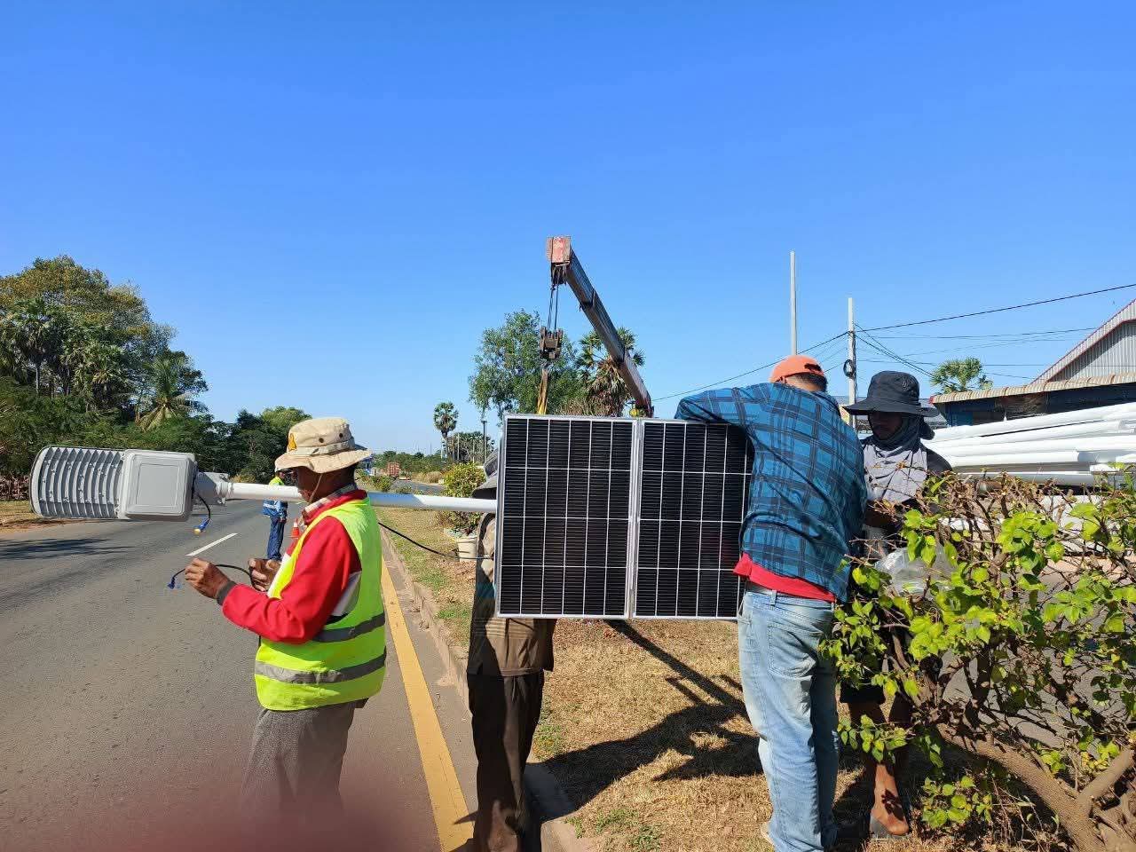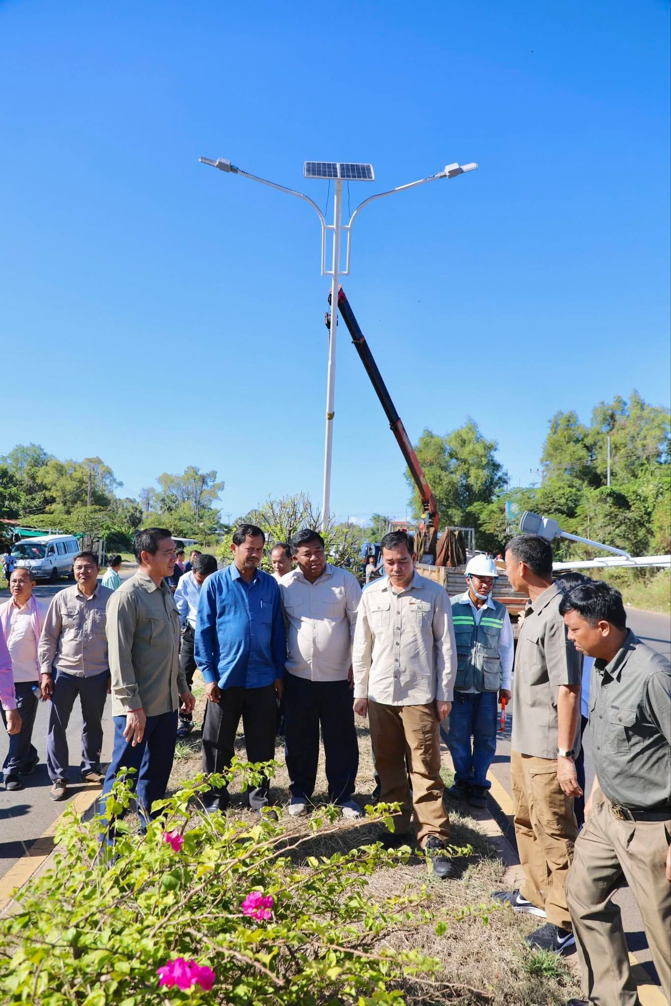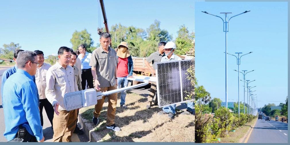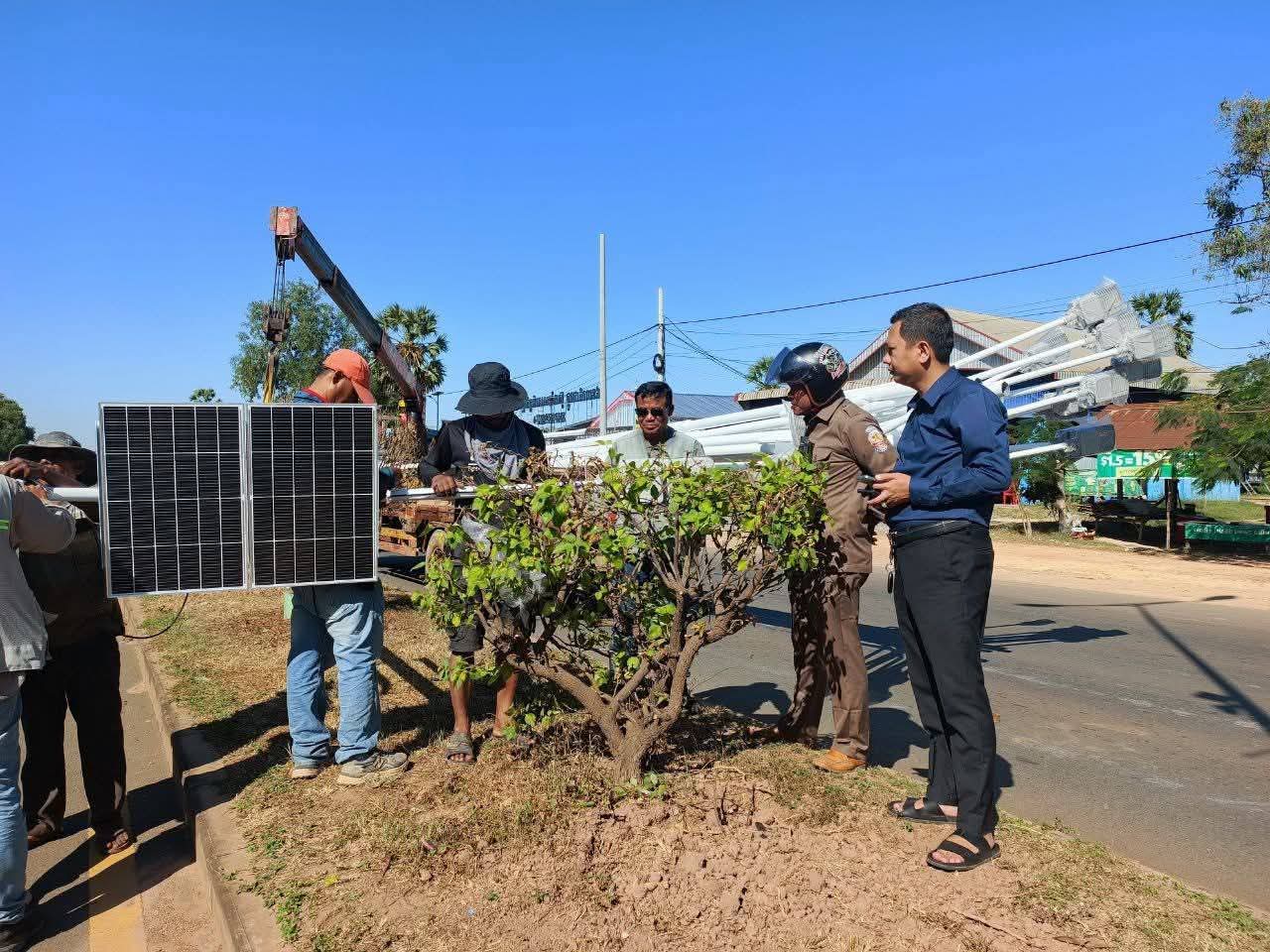 (កំពង់ចាម) :នៅព្រឹកថ្ងៃអាទិត្យ ទី២១ ខែធ្នូ នេះ ឯកឧត្តម អ៊ុន ចាន់ដា អភិបាលនៃគណៈអភិបាលខេត្តកំពង់ចាម បានដឹកនាំក្រុមការងារ អញ្ជើញចុះពិនិត្យវឌ្ឍនភាពការងារដាំបង្គោលភ្លើងសូឡា បំភ្លឺតាមដងផ្លូវជាតិលេខ៦ និង៦A ក្រោមគំនិតផ្តួចផ្តើមកសាងដោយ ឯកឧត្តម អ៊ុន ចាន់ដា អភិបាលខេត្តកំពង់ចាម និងលោកជំទាវ។