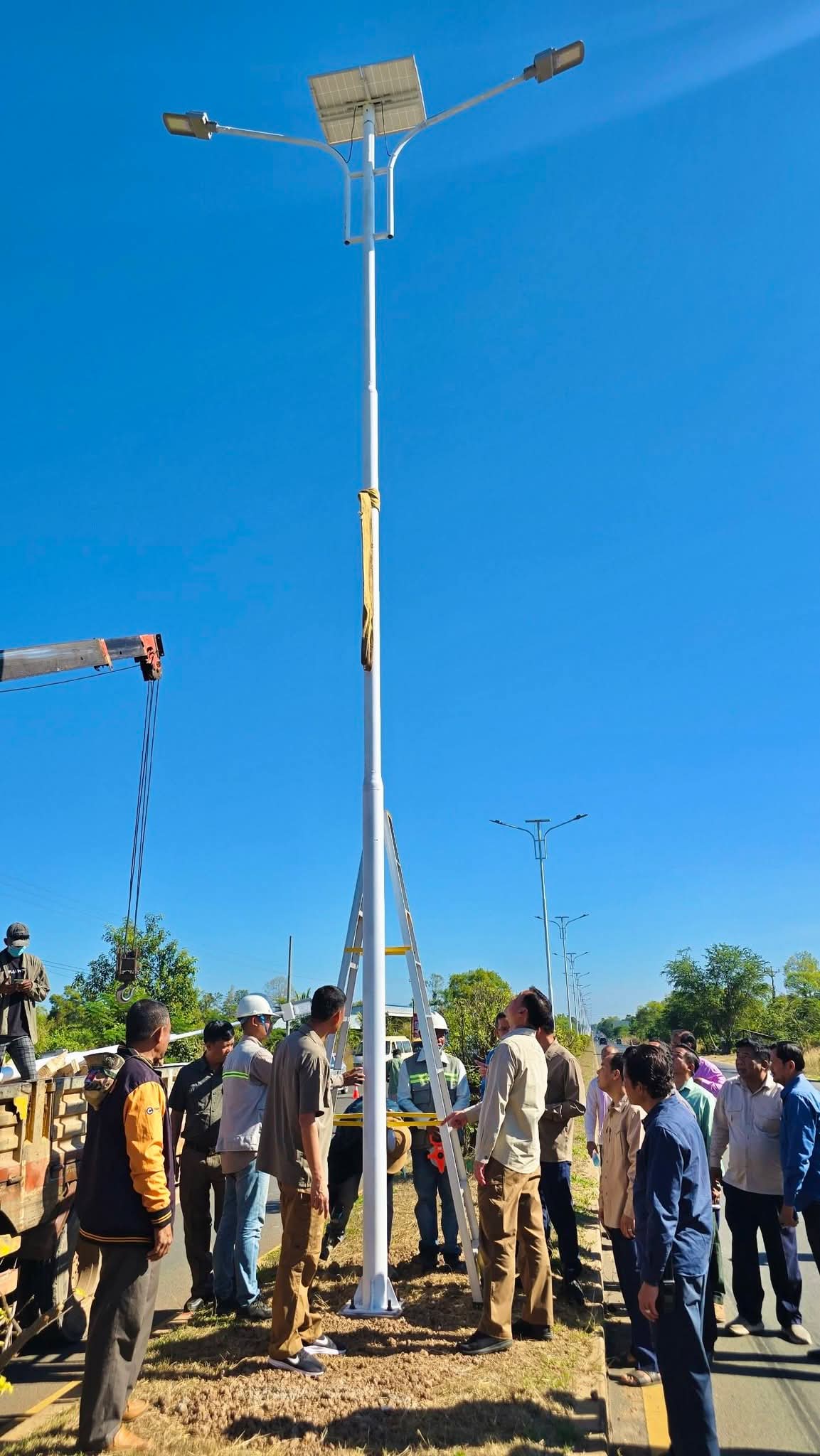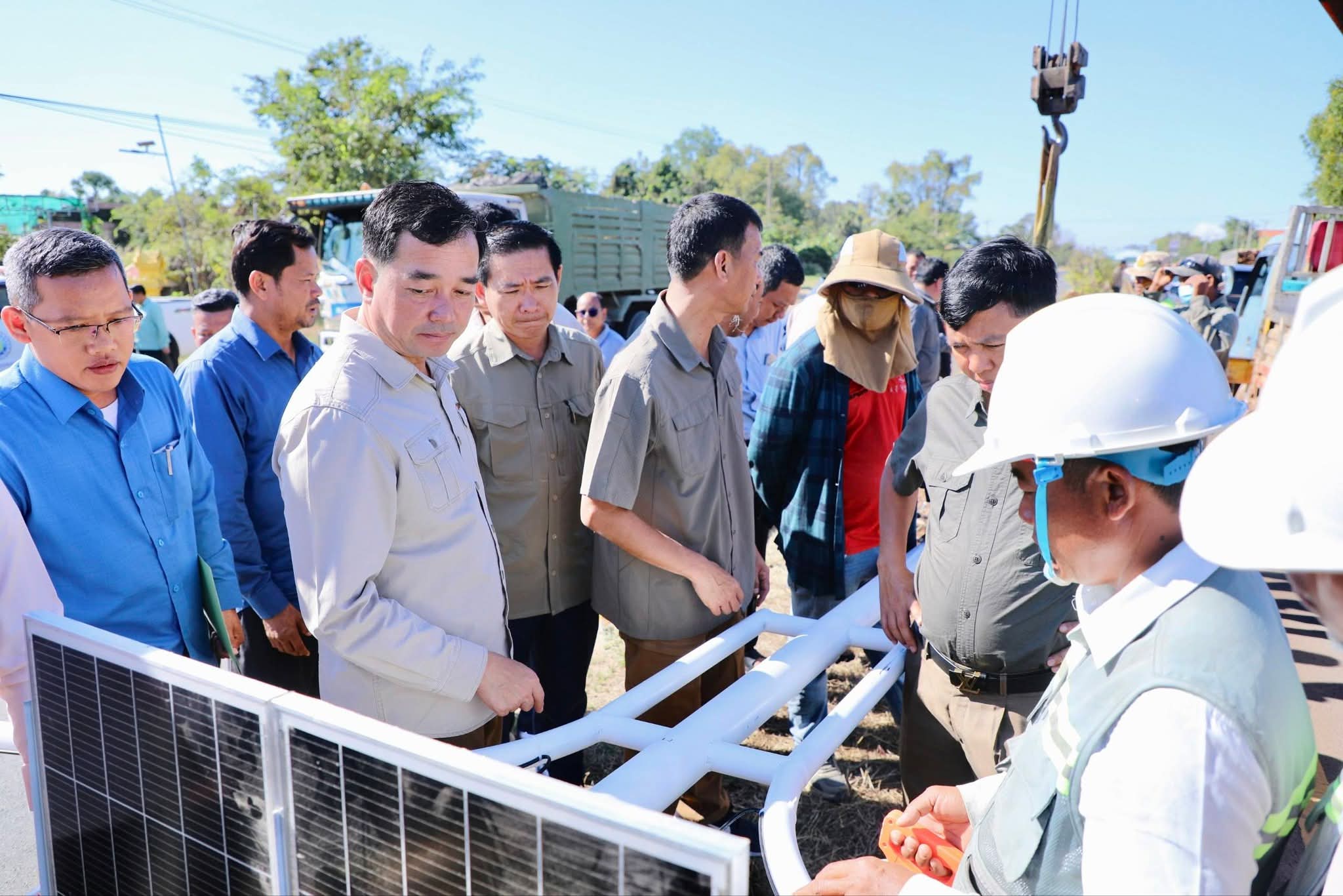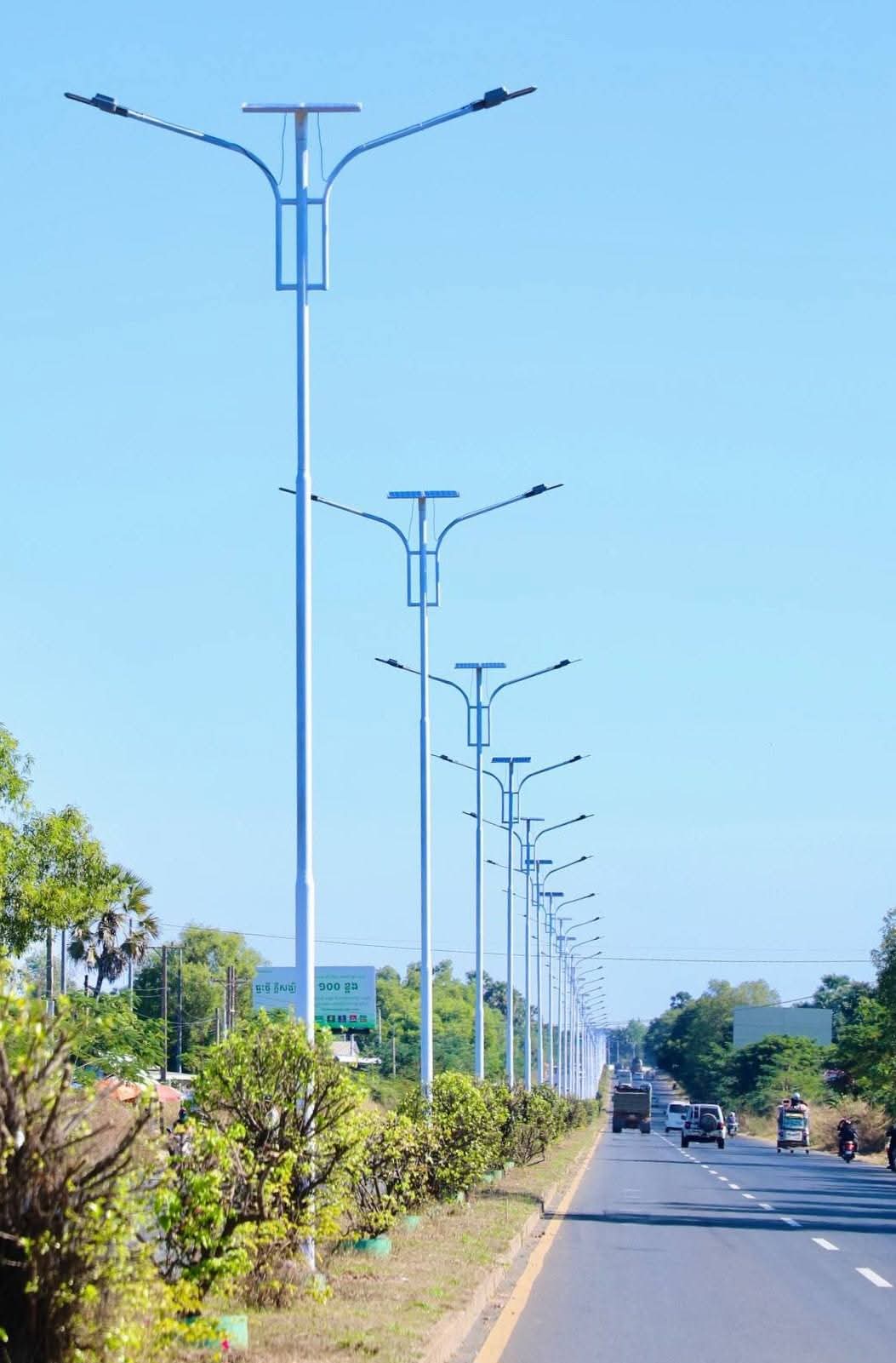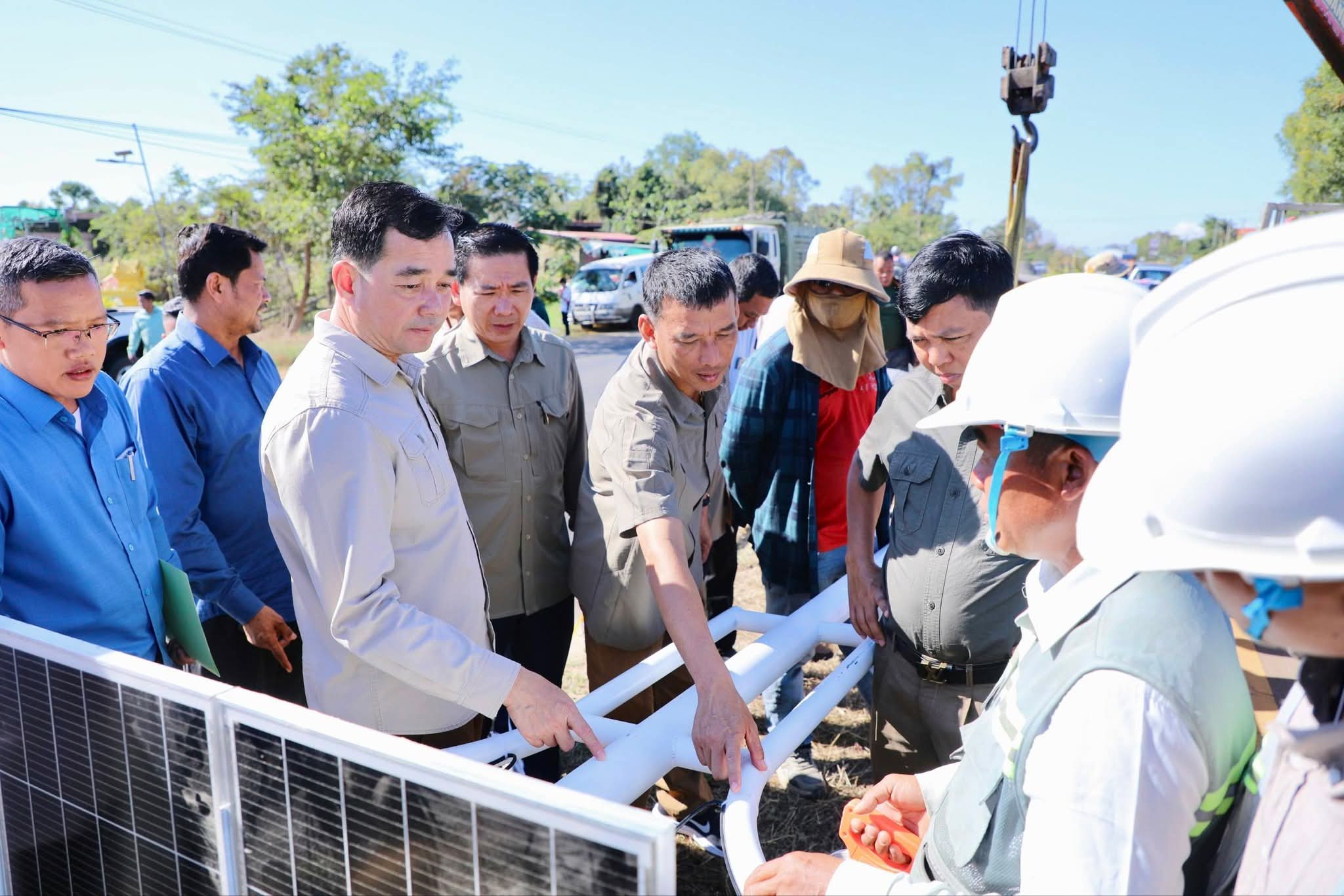 (កំពង់ចាម) :នៅព្រឹកថ្ងៃអាទិត្យ ទី២១ ខែធ្នូ នេះ ឯកឧត្តម អ៊ុន ចាន់ដា អភិបាលនៃគណៈអភិបាលខេត្តកំពង់ចាម បានដឹកនាំក្រុមការងារ អញ្ជើញចុះពិនិត្យវឌ្ឍនភាពការងារដាំបង្គោលភ្លើងសូឡា បំភ្លឺតាមដងផ្លូវជាតិលេខ៦ និង៦A ក្រោមគំនិតផ្តួចផ្តើមកសាងដោយ ឯកឧត្តម អ៊ុន ចាន់ដា អភិបាលខេត្តកំពង់ចាម និងលោកជំទាវ។