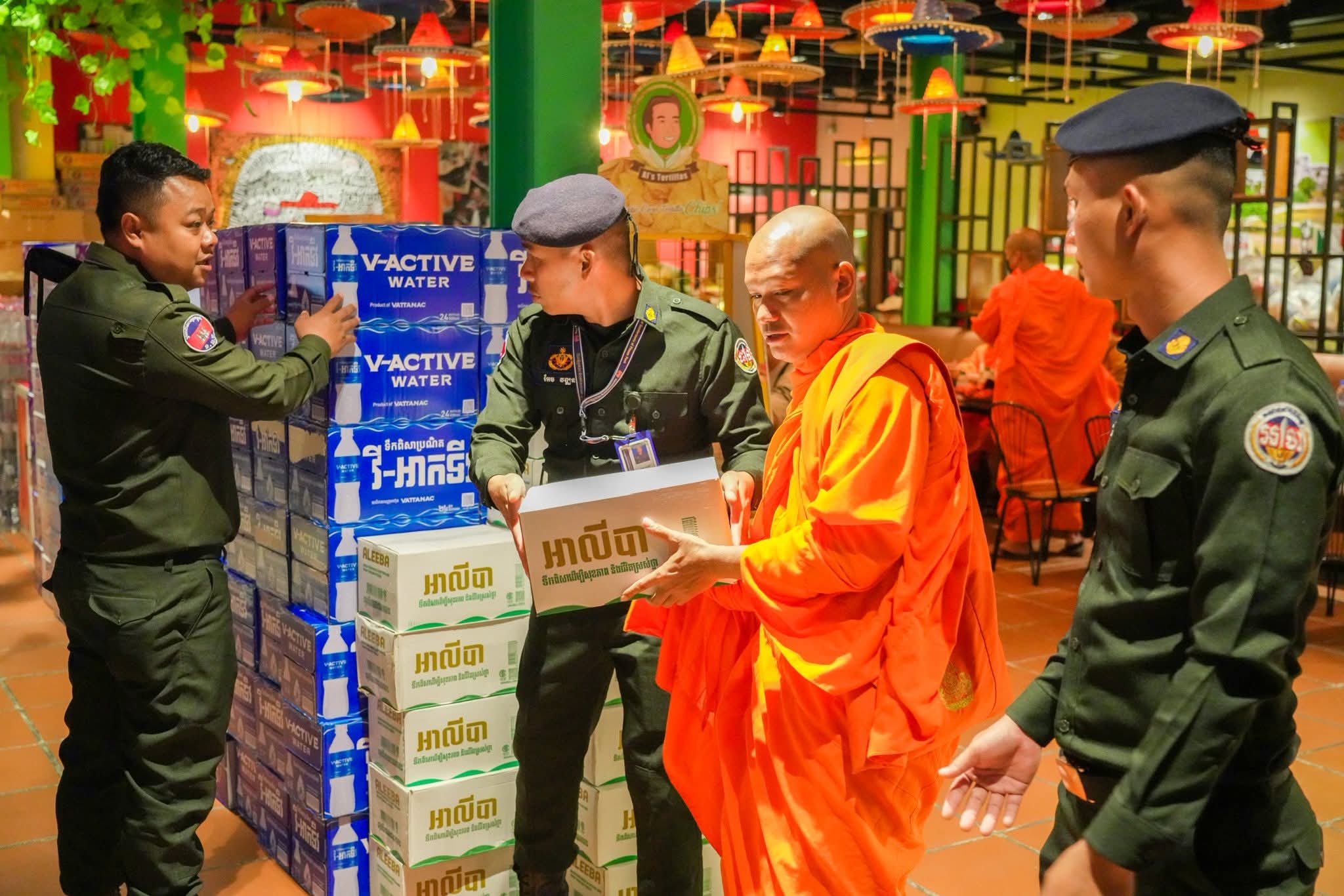 (ភ្នំពេញ) :នាយប់ថ្ងៃទី២២ ខែធ្នូ ឆ្នាំ២០២៥ កម្លាំងអាវុធហត្ថរាជធានីភ្នំពេញ បានចូលរួមជួយរៀបចំលើកដាក់ជញ្ជូនស្បៀង និងសម្ភារៈចាំបាច់ផ្សេងៗ នៅទីតាំងកន្លែងទទួលជំនួយសម្រាប់ជូនទៅបងប្អូនជនភៀសសឹក និងបងប្អូនកងទ័ពនៅជួរមុ របស់លោកស្រី ទឹម រដ្ឋា និងក្រុមការងារ ស្ថិតក្នុងមជ្ឈមណ្ឌលសន្និបាត និងពិព័រណ៍កោះពេជ្រ រាជធានីភ្នំពេញ និងទីតាំងកន្លែងទទួលជំនួយសម្រាប់ជូនទៅបងប្អូនជនភៀសសឹក និងបងប្អូនកងទ័ពនៅជួរមុខ ត្រង់ចំណុច ហាង Eatmore បឹងកក់ រាជធានីភ្នំពេញផងដែរ។