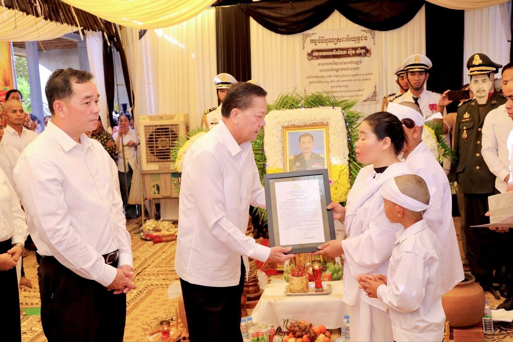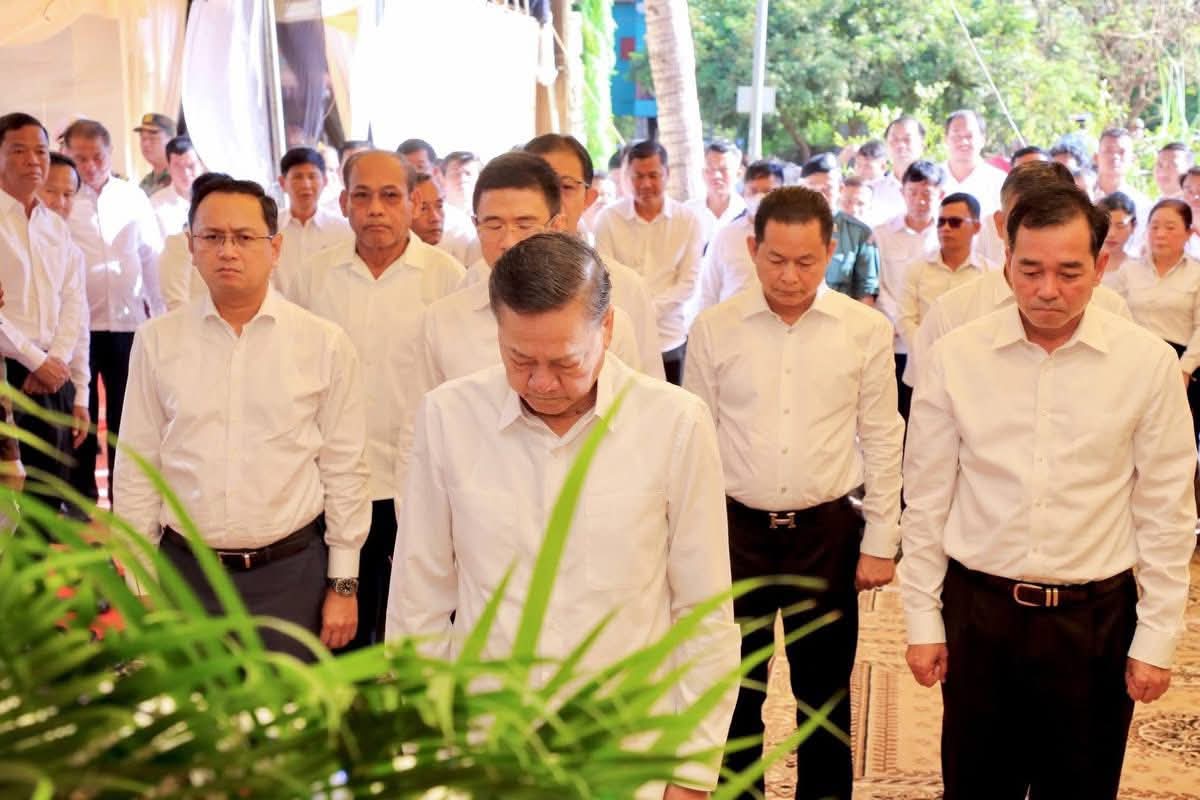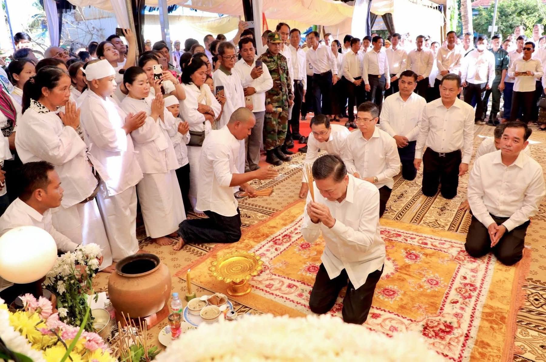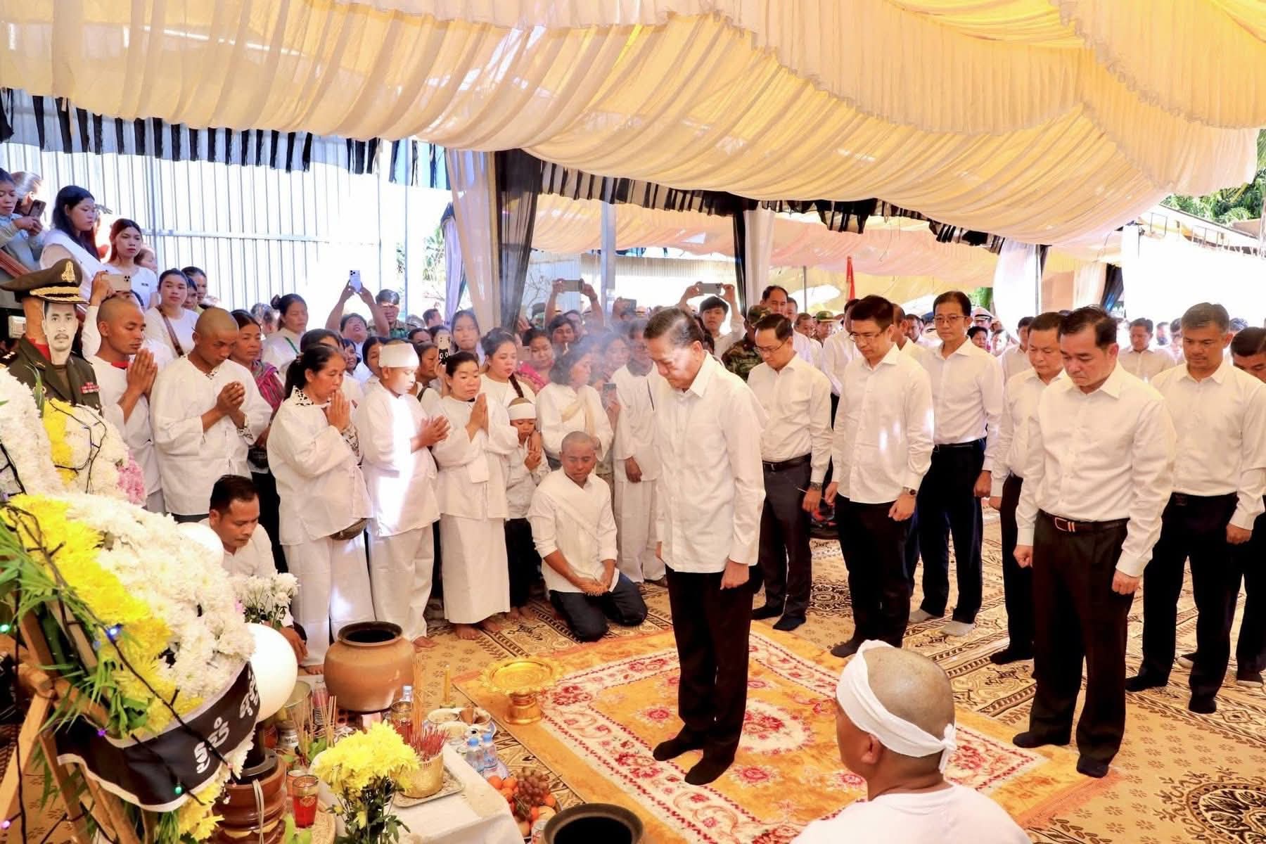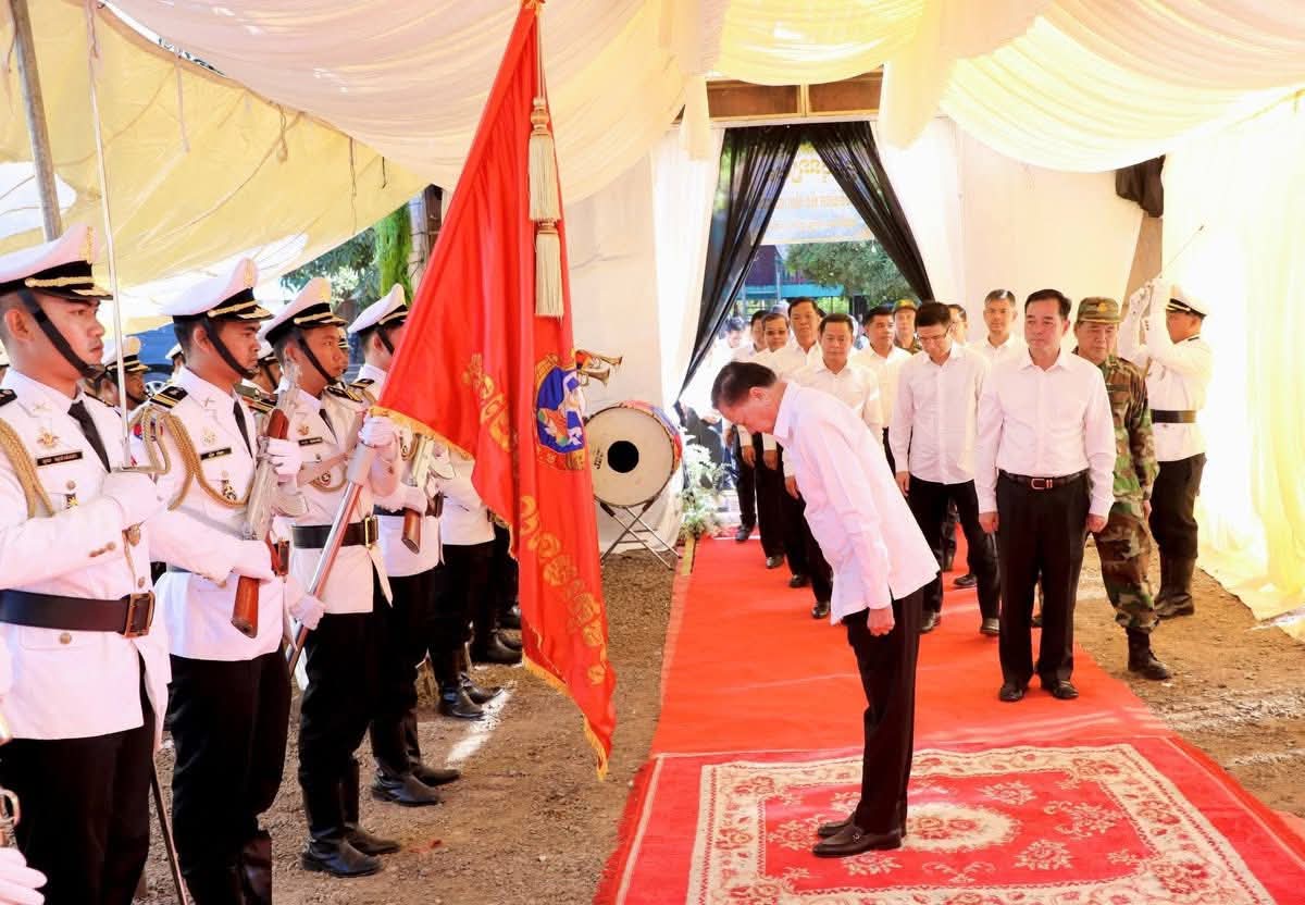 (កំពង់ចាម)៖ ឯកឧត្តម អ៊ុន ចាន់ដា អភិបាលនៃគណៈអភិបាលខេត្តកំពង់ចាម អញ្ជើញអមដំណើរ ឯកឧត្តមសន្តិបណ្ឌិត នេត សាវឿន តំណាងដ៏ខ្ពង់ខ្ពស់ សម្តេចមហាបវរធិបតី ហ៊ុន ម៉ាណែត នាយករដ្ឋមន្ត្រី នៃព្រះរាជាណាចក្រកម្ពុជា អមដំណើរដោយ ឯកឧត្តម អ៊ុន ចាន់ដា អភិបាល នៃគណៈអភិបាលខេត្តកំពង់ចាម បានអញ្ជើញគោរពវិញ្ញាណក្ខន្ធសព លោកវរសេនីយ៍ឯក ស៊ុន សំបូរ នាយរងការិយាល័យអភិវឌ្ឍន៍ កងពលធំអន្តរាគមន៍ លេខ៣ វីរកងទ័ព លោកបានពលីជីវិតកាលពីថ្ងៃទី២១ ខែធ្នូ ឆ្នាំ២០២៥ ក្នុងបុព្វហេតុការពារបូរណភាពទឹកដី ពីចោរឈ្លានពានសៀម ក្នុងភូមិសាស្ត្រនៅចំណុចប្រាសាទព្រះវិហារ។ ពិធី គោរពវិញ្ញាណក្ខន្ធសពនេះ រៀបចំធ្វើឡើងនាព្រឹកថ្ងៃទី២៣ ខែធ្នូ ឆ្នាំ២០២៥នេះ ស្ថិតនៅភូមិស្រែប្រាំង ឃុំតាប្រុក ស្រុកចំការលើ ខេត្តកំពង់ចាម។