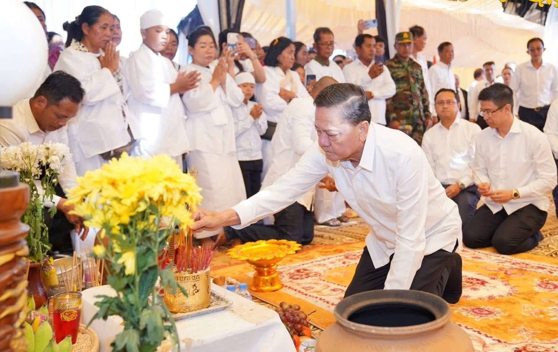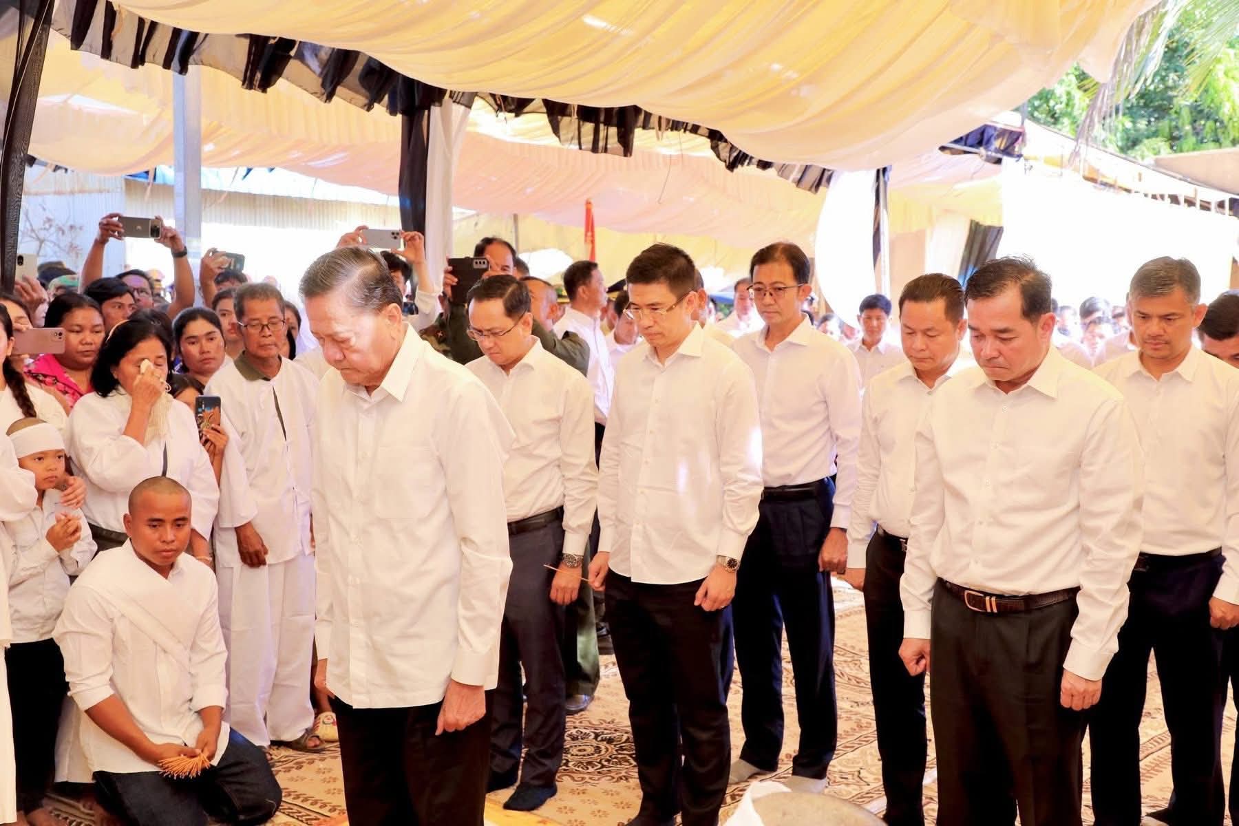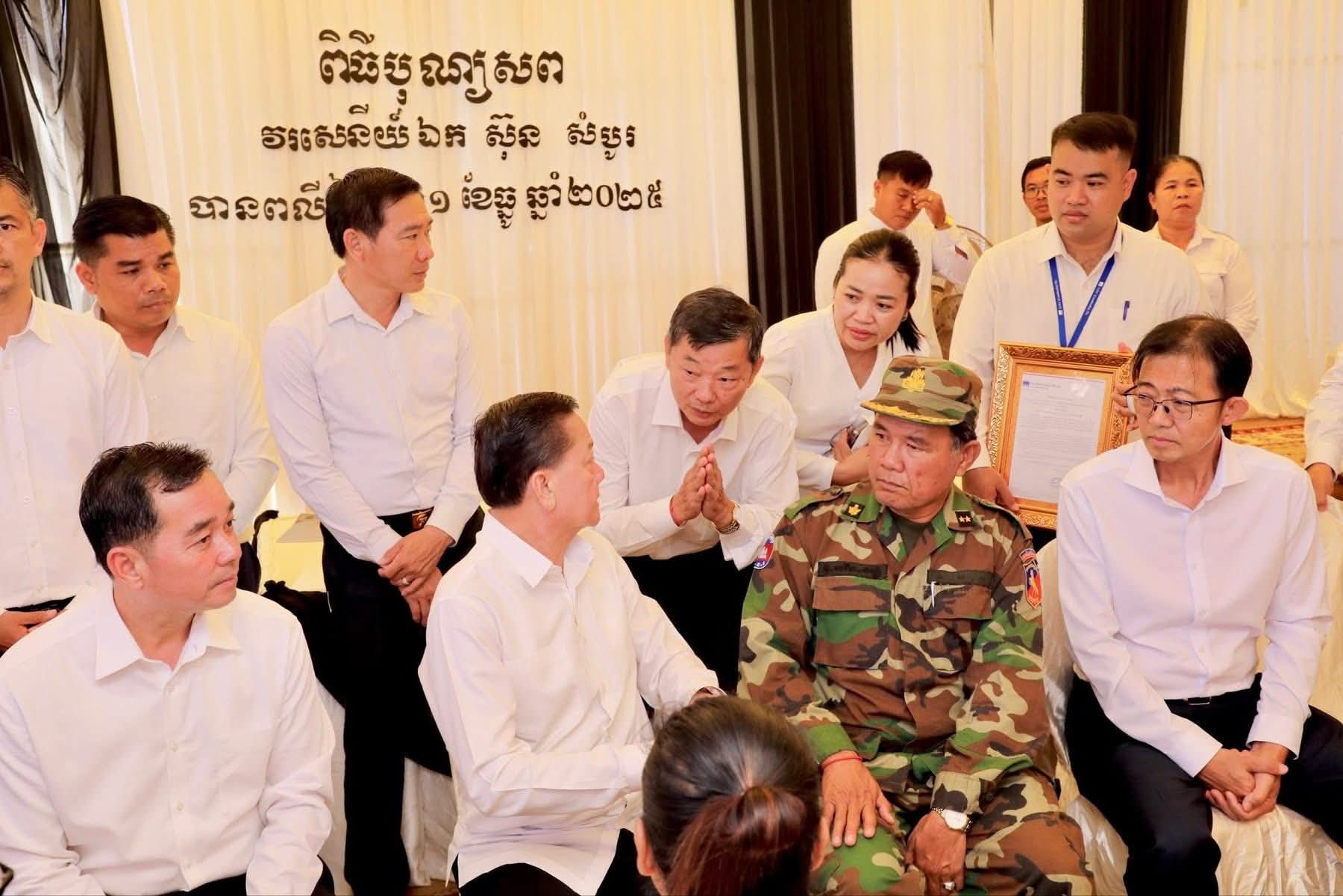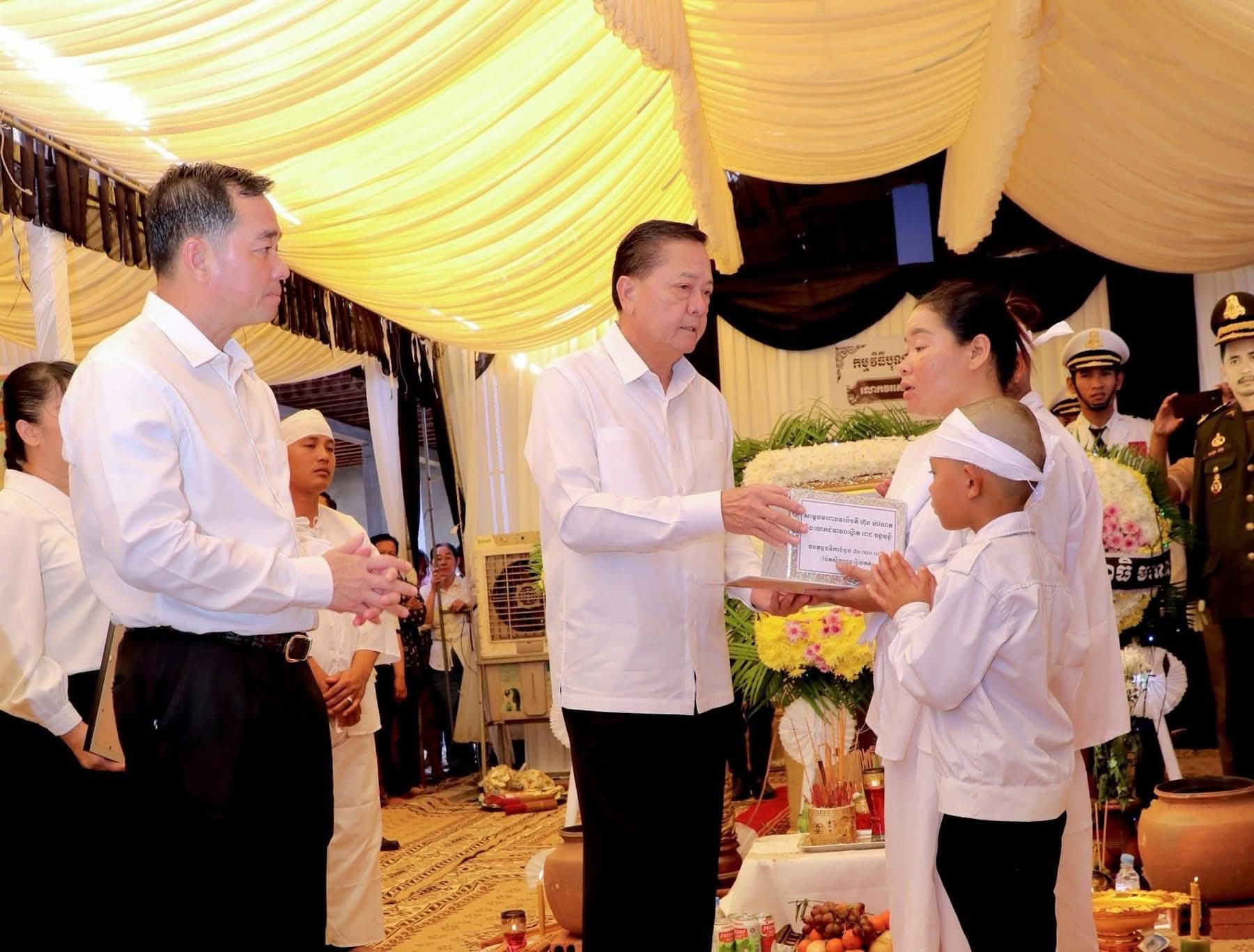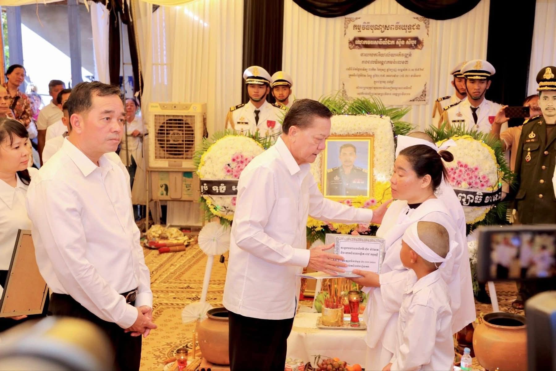 ក្នុងឱកាសដ៏សោកសង្រេង និងក្តុកក្តួលបំផុតនេះ ឯកឧត្តមសន្តិបណ្ឌិត នេត សាវឿន ក៏បានពាំនាំមកនូវការចូលរួមមរណៈទុក្ខពីសំណាក់ សម្តេចអគ្គមហាសេនាបតីតេជោ ហ៊ុន សែន ប្រធានក្រុមឧត្តមប្រឹក្សាផ្ទាល់ព្រះមហាក្សត្រ នៃព្រះរាជាណាចក្រកម្ពុជា និងសម្តេចមហាបវរធិបតី ហ៊ុន ម៉ាណែត នាយករដ្ឋមន្ត្រី នៃព្រះរាជាណាចក្រកម្ពុជា ចំពោះការលះបង់អាយុជីវិតរបស់សព លោកវរសេនីយ៍ឯក ស៊ុន សំបូរ ក្នុងការការពារបូរណភាពទឹកដី និងប្រជាជនកម្ពុជា។