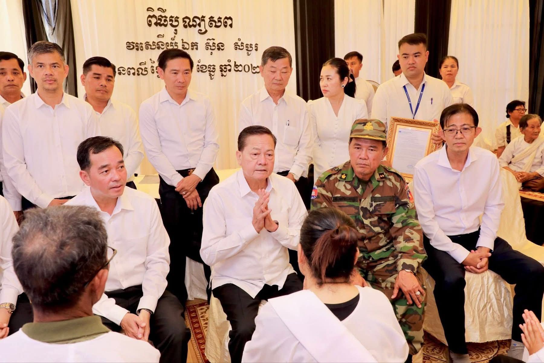 នាឱកាសនោះ ឯកឧត្តមសន្តិបណ្ឌិត បានបង្ហាញនូវសេចក្ដីក្ដុកក្ដួលរំជួលចិត្តឥតឧបមា ចូលរួមរំលែកមរណៈទុក្ខដ៏ក្រៀមក្រំបំផុតជាមួយលោកស្រី ឈិត សុខចាន់ ត្រូវជាភរិយារបស់ លោកវរសេនីយ៍ឯក ស៊ុន សំបូរ ព្រមទាំងក្រុមគ្រួសារ និងបានមានប្រសាសន៍សង្កត់ធ្ងន់ លោកវរសេនីយ៍ឯក ស៊ុន សំបូរ ជាវីរជនដ៏អង់អាចរបស់ជាតិ ក្នុងចំណោមវីរជនឆ្នើមដ៏អស្ចារ្យជាច្រើនរូបទៀត ដែលបានតស៊ូប្រយុទ្ធជាមួយសត្រូវដ៏សាមាន្យ ប្រកបដោយភាពអង់អាចក្លាហាន ហ៊ានបូជាសាច់ស្រស់ ឈាមស្រស់ ធ្វើពលិកម្មដើម្បីបុព្វហេតុជាតិនិងប្រជាជនកម្ពុជា។