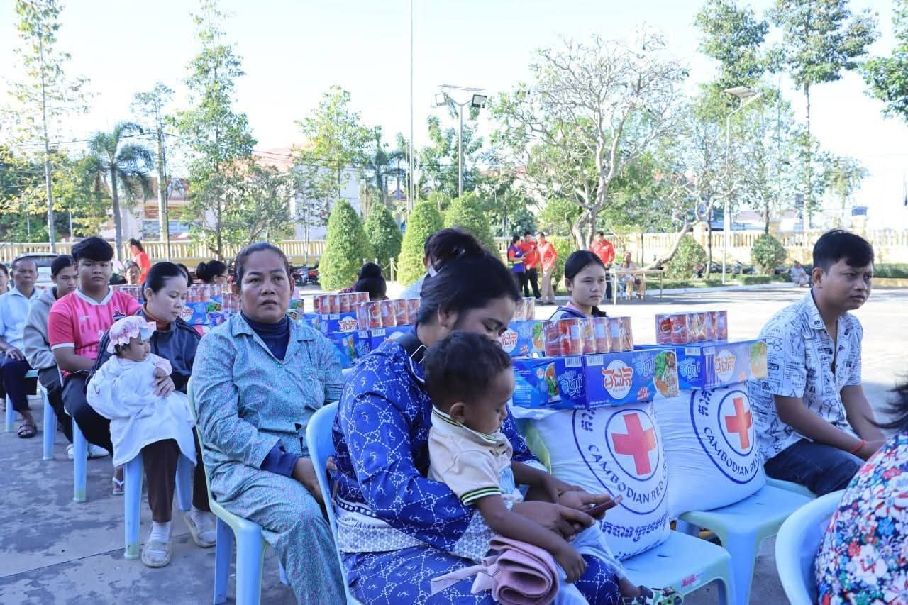 សម្ភារៈផ្តល់ជូន ១គ្រួសារ រួមមាន៖ អង្ករ ២៥គ.ក មី ១កេស ត្រី ខ ១យួរ និងថវិកាចំនួន ៥០,០០០រៀល។