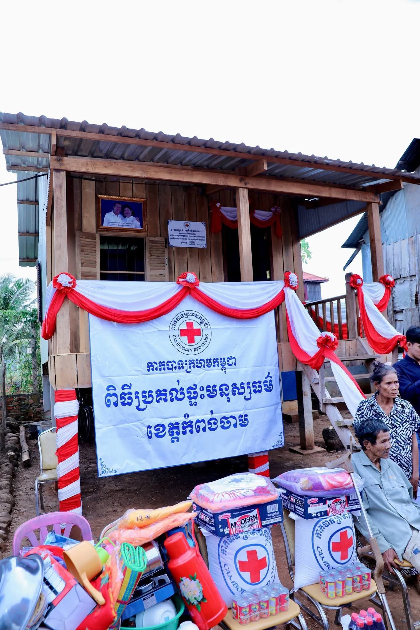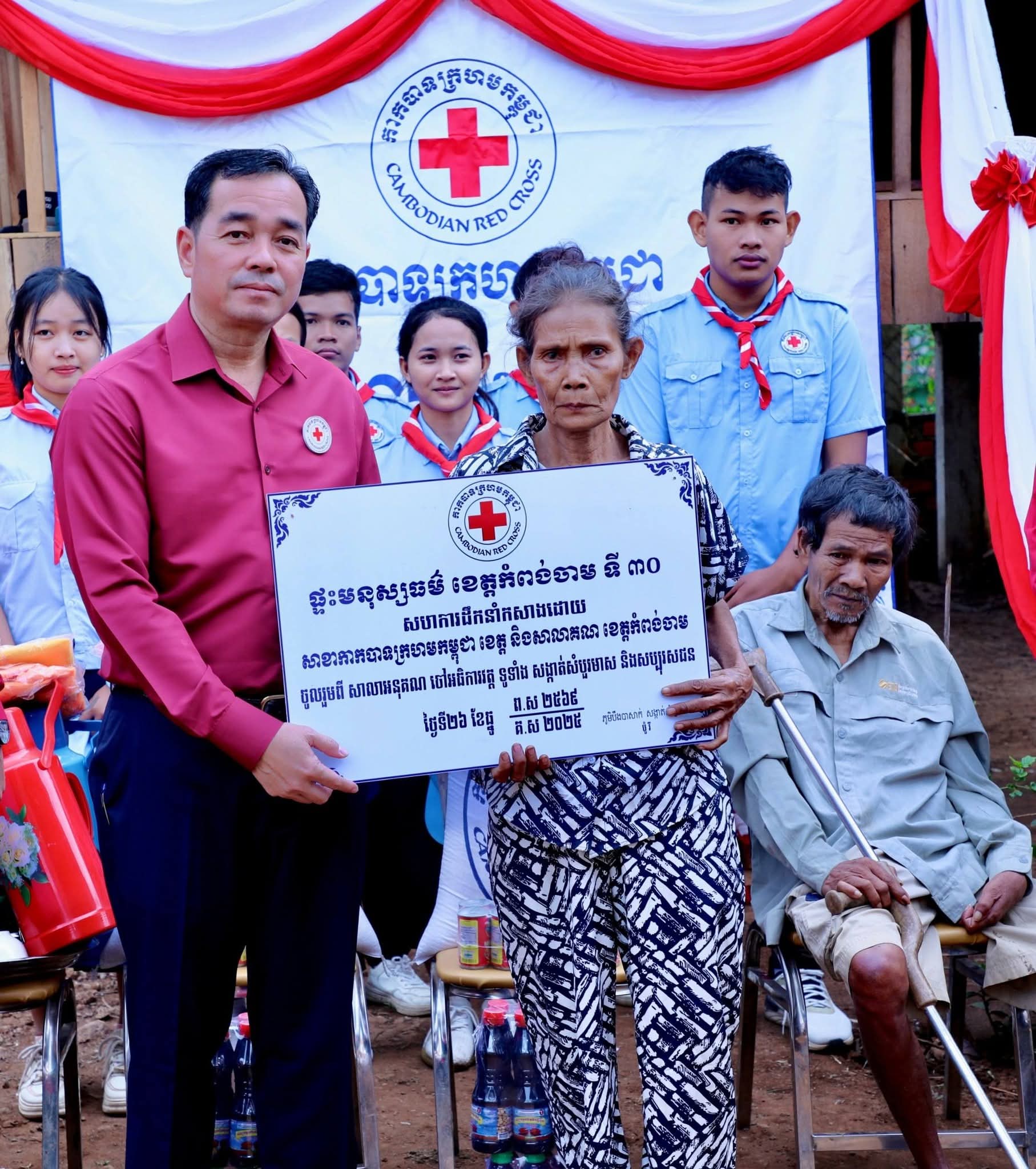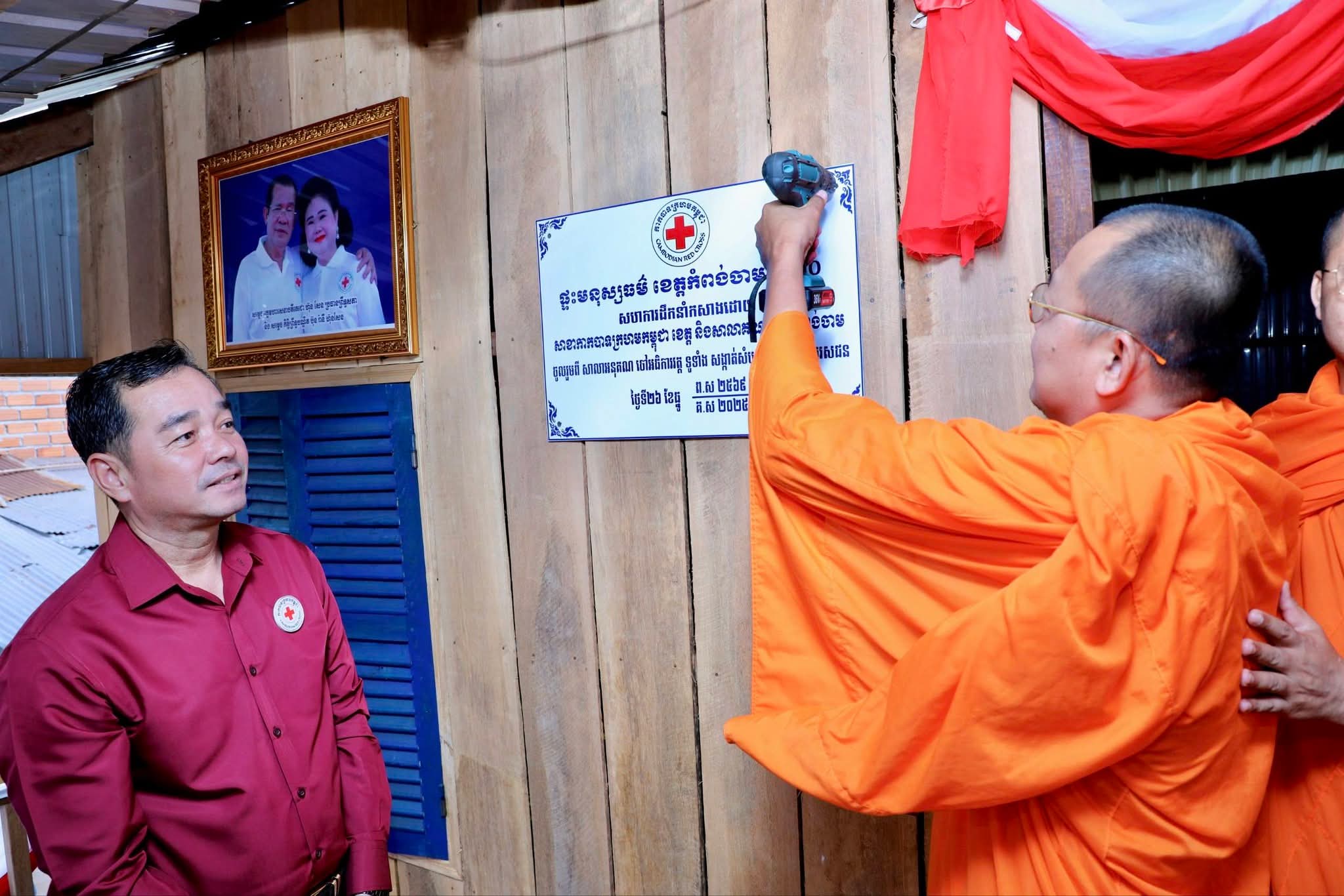 តាមការស្នើសុំពីក្រុមកាកបាទក្រហមសង្កាត់បឹងកុក- សង្កាត់សំបួរមាស អនុសាខាក្រុង រួមជាមួយសំណើសុំបិណ្ឌបាត្រពីព្រះអនុគណក្រុង និងដោយ មើលឃើញពីស្ថានភាពលំបាកនេះ ឯកឧត្តម អ៊ុន ចាន់ដា ប្រធានគណៈកម្មាធិការសាខា បានសម្រេចផ្តល់ជូនផ្ទះឈើខ្ពស់ផុតពីដី ប្រក់ស័ង្កសីភ្លីធំ (ទំហំ៤ម × ៦ម) ១ខ្នង រួមជាមួយបង្គន់អនាម័យ ១បន្ទប់ តម្លៃសរុបប្រមាណជិត១២.០០០.០០០ រៀល ជាថវិកាបដិភាគ របស់សាខា សាលាគណ អនុសាខាស្រុកសាលាអនុគណ ចៅអធិការវត្តទូទាំងក្រុងកំពង់ចាម និងសប្បុរសជន ជូន: