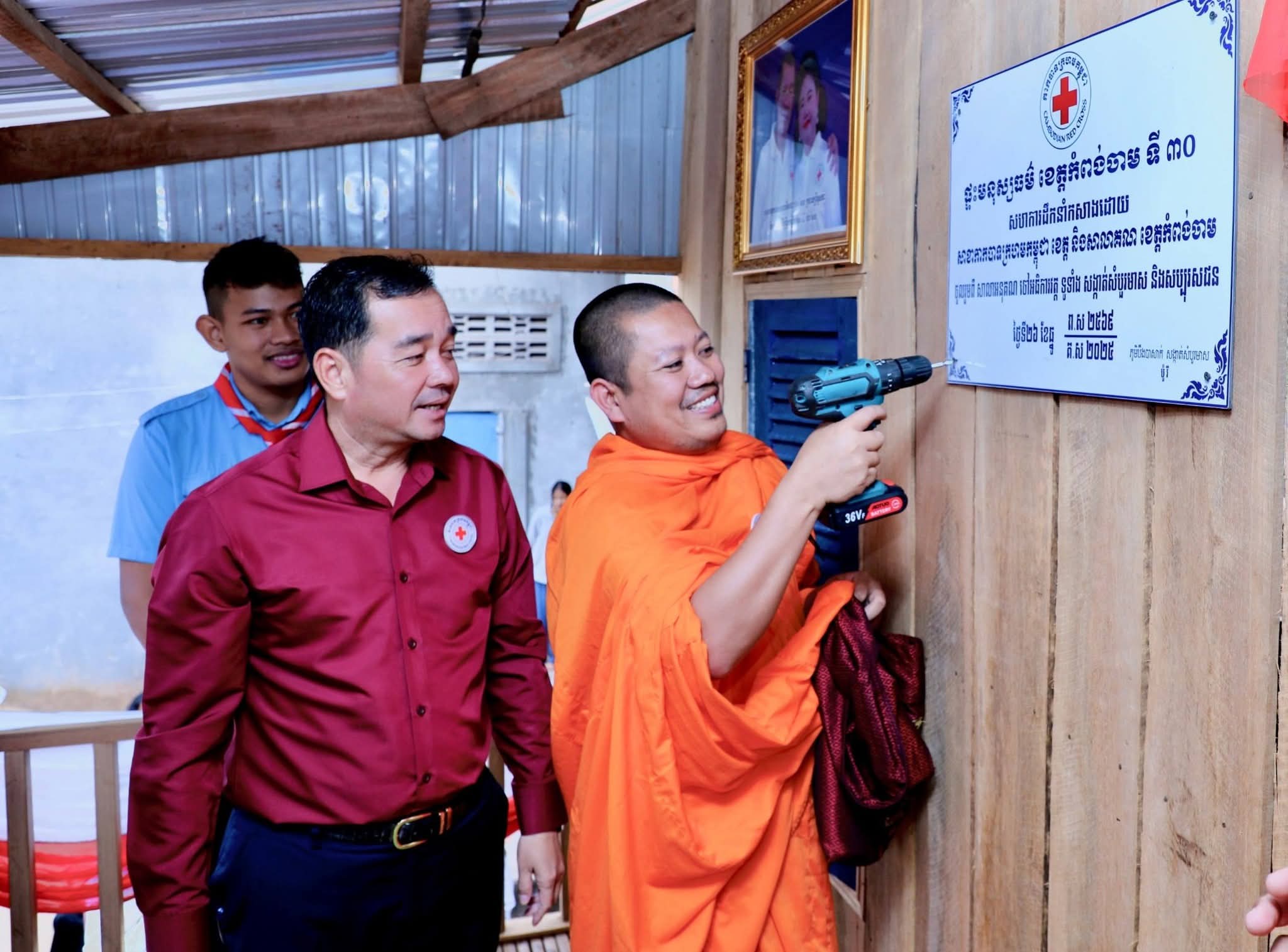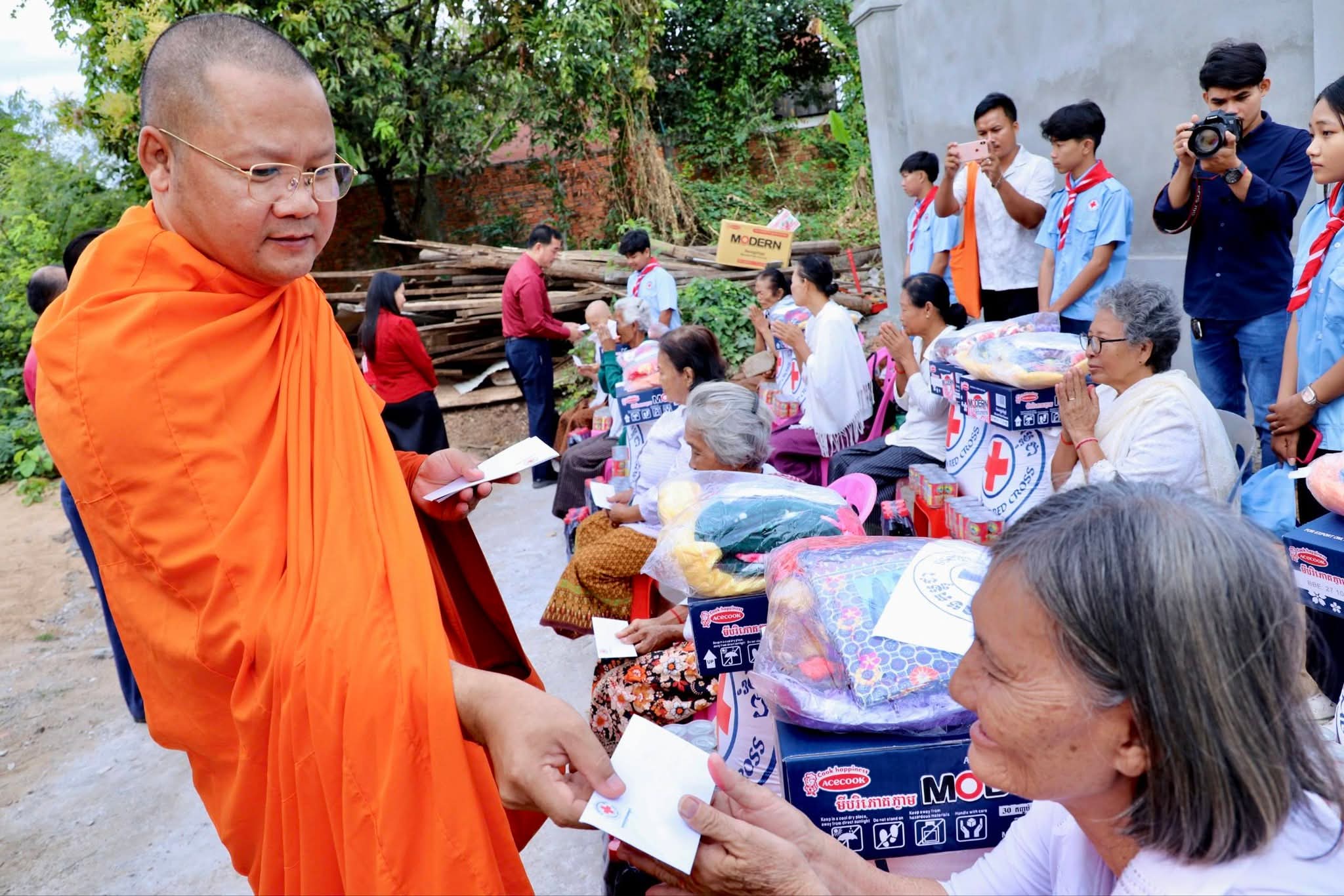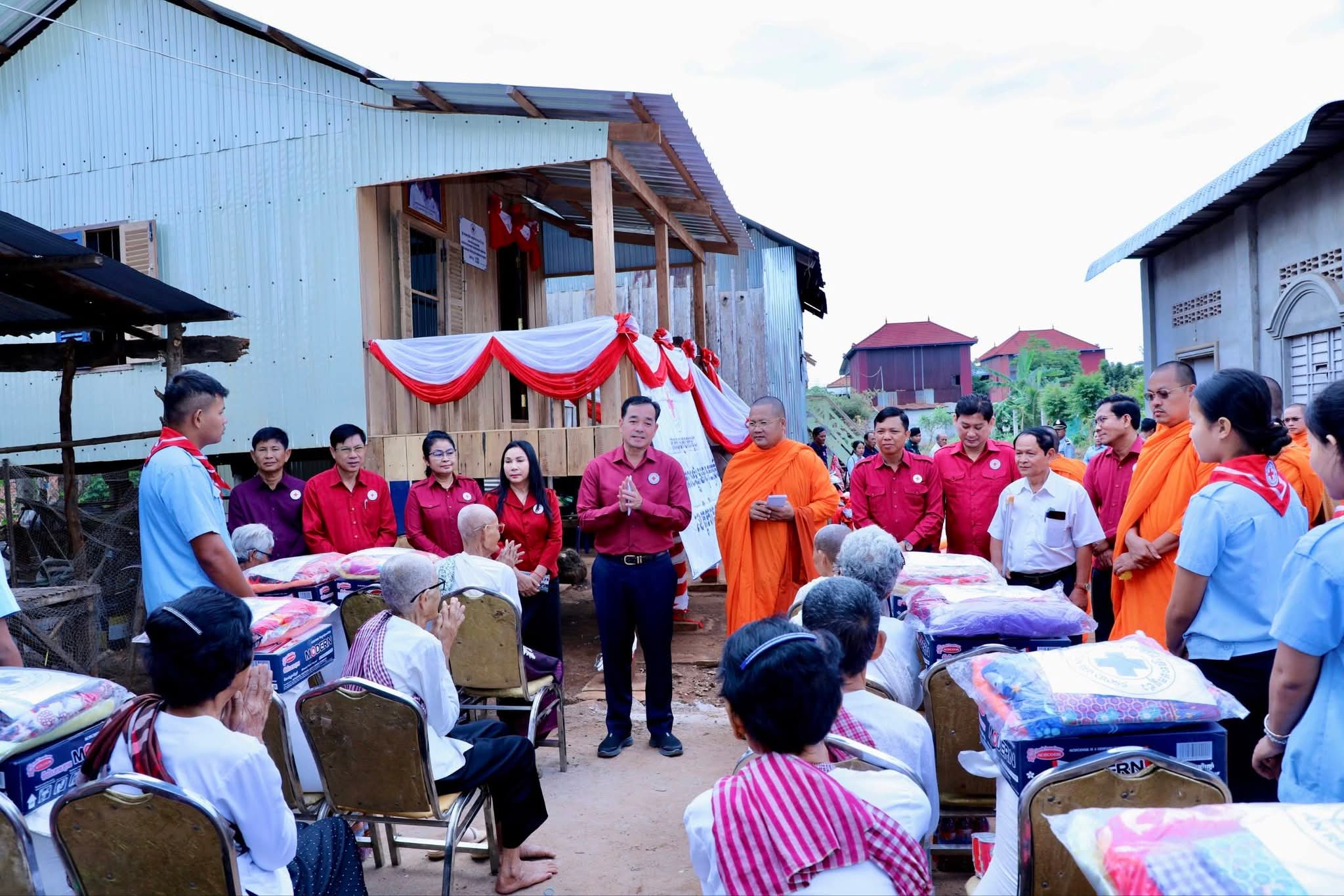 តាមការស្នើសុំពីក្រុមកាកបាទក្រហមសង្កាត់បឹងកុក- សង្កាត់សំបួរមាស អនុសាខាក្រុង រួមជាមួយសំណើសុំបិណ្ឌបាត្រពីព្រះអនុគណក្រុង និងដោយ មើលឃើញពីស្ថានភាពលំបាកនេះ ឯកឧត្តម អ៊ុន ចាន់ដា ប្រធានគណៈកម្មាធិការសាខា បានសម្រេចផ្តល់ជូនផ្ទះឈើខ្ពស់ផុតពីដី ប្រក់ស័ង្កសីភ្លីធំ (ទំហំ៤ម × ៦ម) ១ខ្នង រួមជាមួយបង្គន់អនាម័យ ១បន្ទប់ តម្លៃសរុបប្រមាណជិត១២.០០០.០០០ រៀល ជាថវិកាបដិភាគ របស់សាខា សាលាគណ អនុសាខាស្រុកសាលាអនុគណ ចៅអធិការវត្តទូទាំងក្រុងកំពង់ចាម និងសប្បុរសជន ជូន: