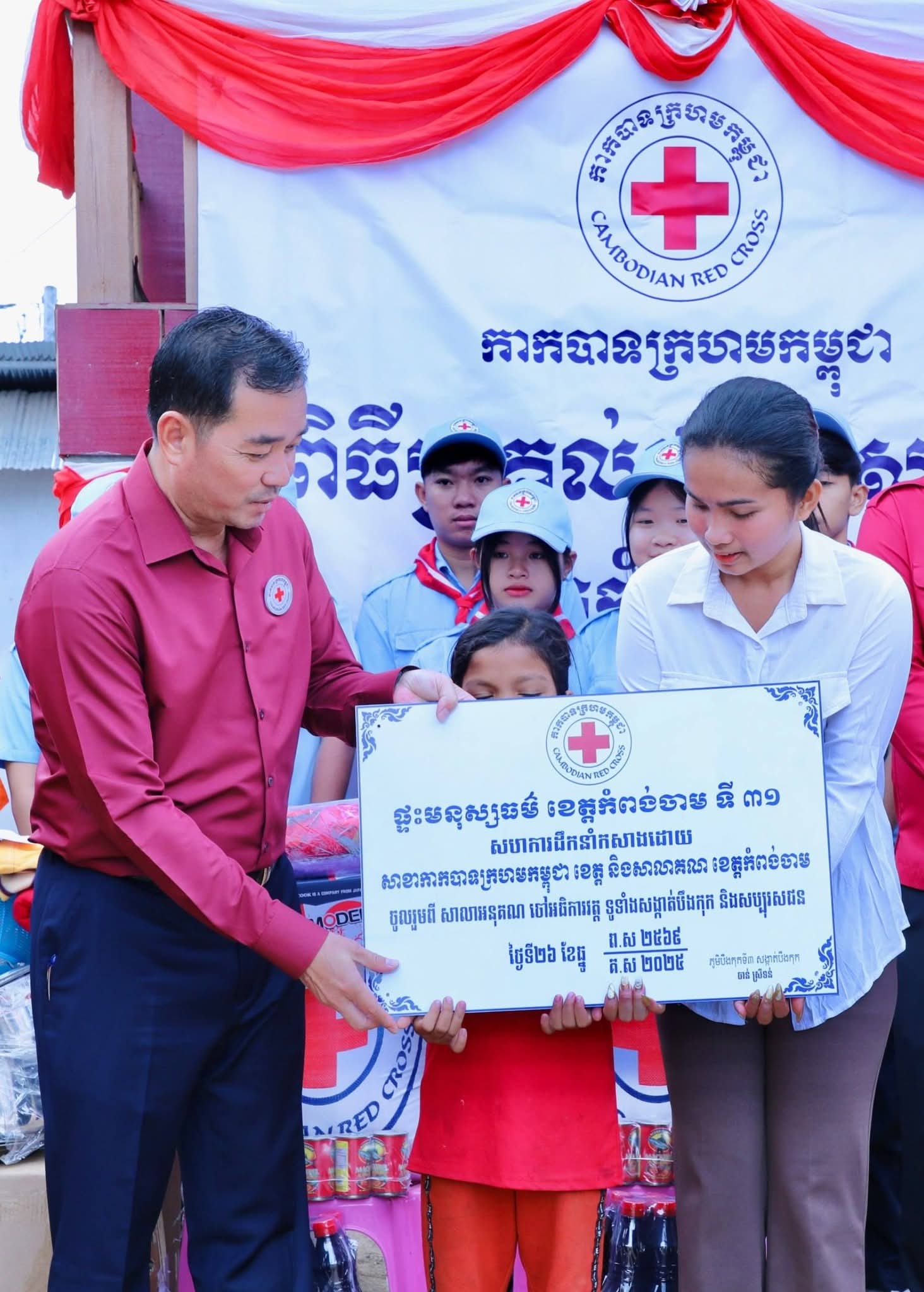 (កំពង់ចាម): នៅព្រឹកថ្ងៃសុក្រ ទី២៦ ខែធ្នូ ឆ្នាំ២០២៥ នេះ ឯកឧត្តម អ៊ុន ចាន់ដា អភិបាលខេត្តនិងជាប្រធាន គណៈកម្មាធិការសាខាកាកបាទក្រហមកម្ពុជាខេត្តកំពង់ចាម និមន្តចូលរួមពីព្រះអនុគណក្រុងកំពង់ចាម តំណាងព្រះមេគណខេត្ត និងវត្តមានចូលរួមពី ឯកឧត្តម លោកជំទាវ លោក លោកស្រី សមាជិក សមាជិកាគណៈកម្មាធិការសាខា អនុសាខាស្រុក និងមន្ត្រីពាក់ព័ន្ធ បាននិមន្ត និងអញ្ជើញ ចុះប្រគល់ផ្ទះបន្ទាប់ទី៣០ និង ៣១ ជាកម្មវិធីផ្ទះមនុស្សធម៌ខេត្ត ក្រោមកិច្ចសហការ រវាងសាខាកាកបាទក្រហមកម្ពុជា ខេត្ត សាលាគណខេត្ត និង ការផ្តល់ថវិកាបដិភាគពី ជូនជនមានពិការភាព គ្មានទីពឹង ឈ្មោះ ប៉ូ រី អាយុ ៥១ឆ្នាំ រស់នៅ ភូមិបឹងស្នាយ សង្កាត់សំបួរមាស និងយុវតីទូរគតឈ្មោះ ចាន់ ស្រីទន់ អាយុ ២៤ឆ្នាំ នៅភូមិបឹងកុក សង្កាត់បឹងកុក ក្រុងកំពង់ចាម។