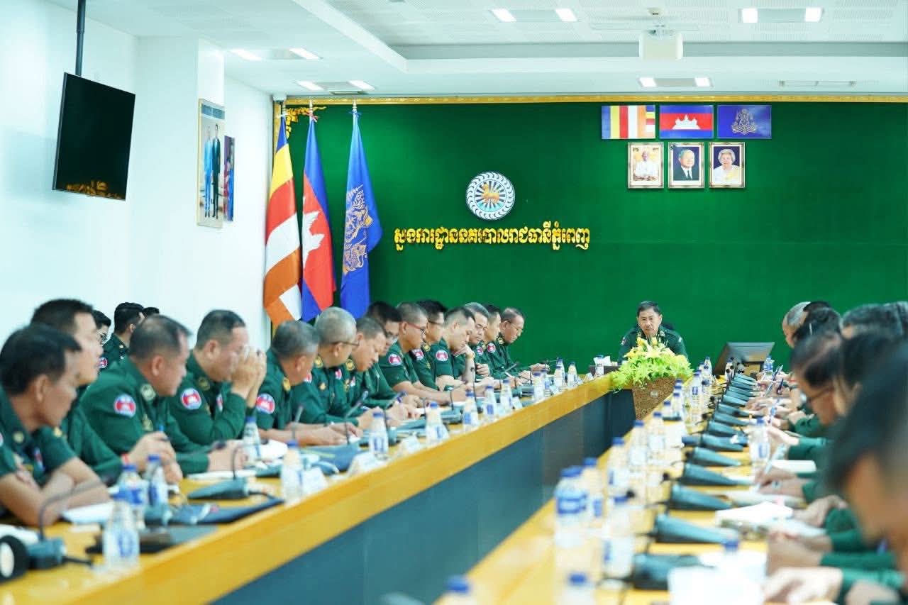 (ភ្នំពេញ) ៖ នៅថ្ងៃទី២៧ខែធ្នូឆ្នាំ២០២៥ ឯកឧត្តម ឧត្តមសេនីយ៍ឯក ជួន ណារិន្ទ អគ្គស្នងការរង និងជាស្នងការនគរបាលរាជធានីភ្នំពេញ បានអញ្ជើញដឹកនាំកិច្ចប្រជុំស្តីពីការពង្រឹងត្រួតពិនិត្យតួនាទីភារកិច្ចលើការងារដឹកនាំបញ្ជាកម្លាំងរបស់មន្រ្តីក្រោមឱវាទ ឲ្យមានការទទួលខុសត្រូវខ្ពស់លើការងារអនុវត្តភារកិច្ច ការពារសន្តិសុខ សណ្តាប់ធ្នាប់ សុវត្ថិភាព ឲ្យមានប្រសិទ្ធភាព ដោយធានាឲ្យបានស្ថិរភាព សុវត្ថិភាព និងផ្តល់ភាពកក់ក្តៅ ជូនដល់ ប្រជាពលរដ្ឋ និងភ្ញៀវទេសចរជាតិ-អន្តរជាតិ នៅគ្រប់ពេលវេលាតាមរយៈការដាក់ចេញនូវវិធានការណ៍បង្ការទប់ស្កាត់ និងបង្រ្កាបបទល្មើសគ្រប់ប្រភេទ ជាមួយការប្រើប្រាស់ពង្រឹងអនុវត្តវិធានការណ៍ច្បាប់និងជំនាញដោយម៉ឹងម៉ាត់។