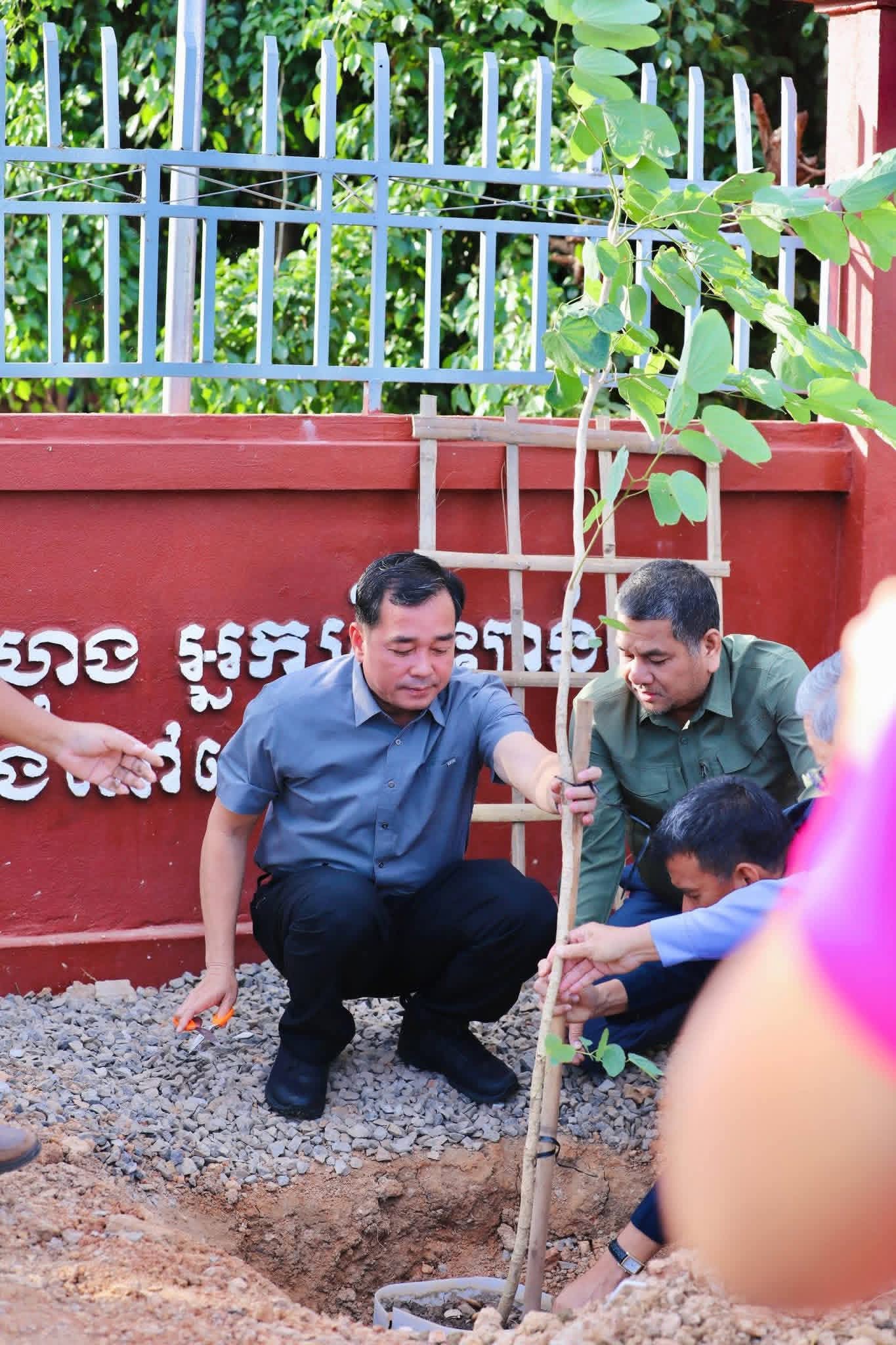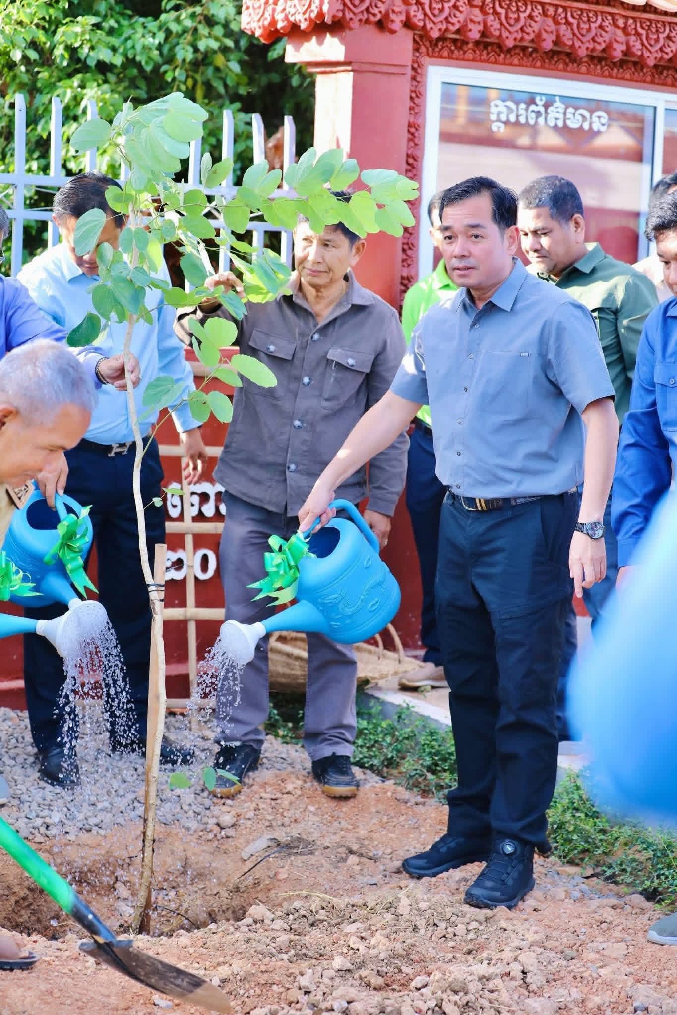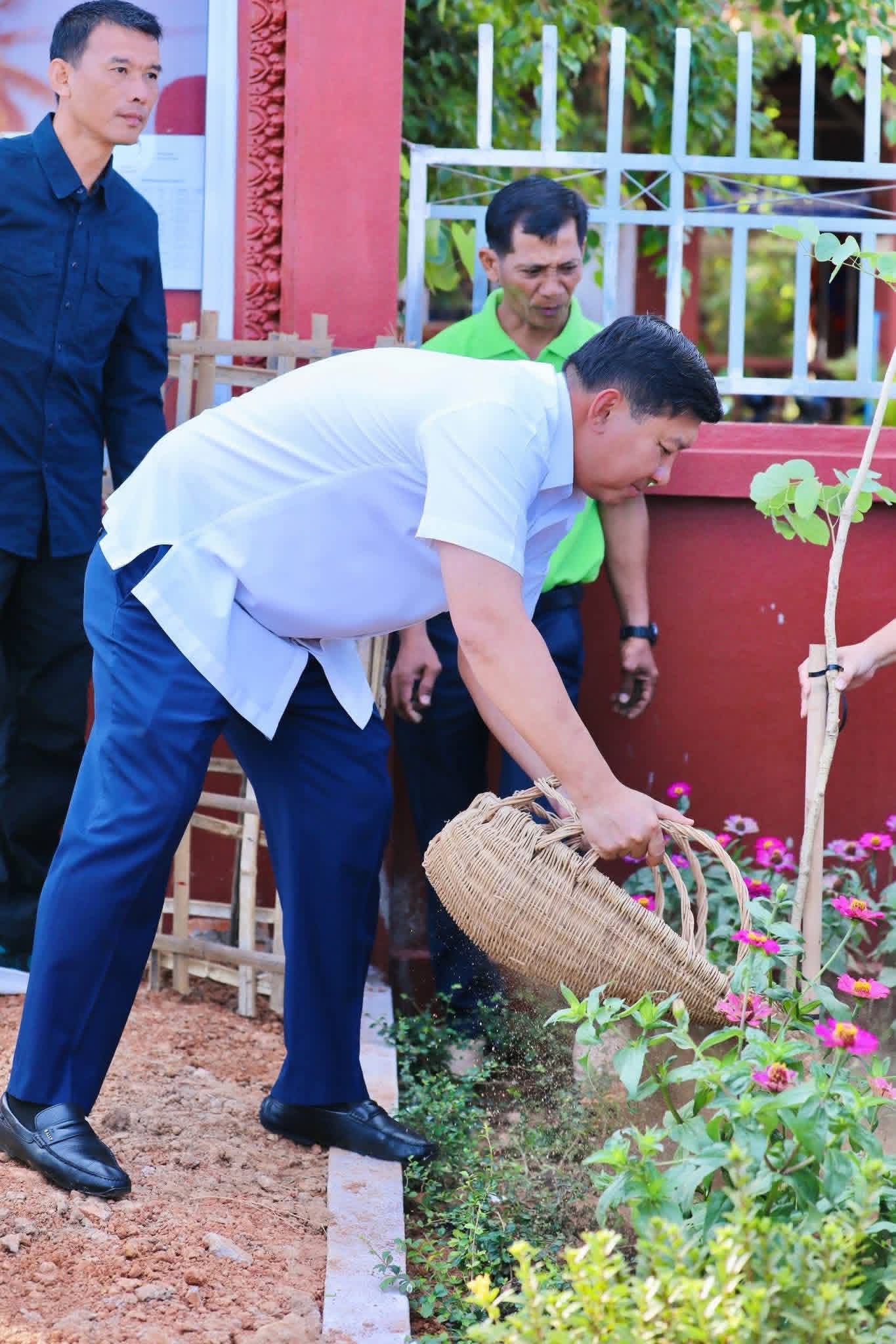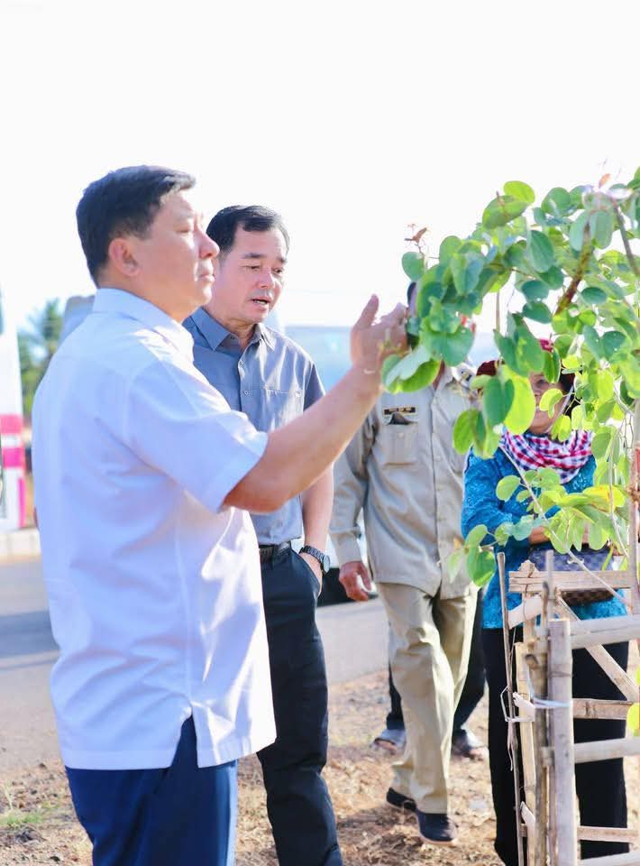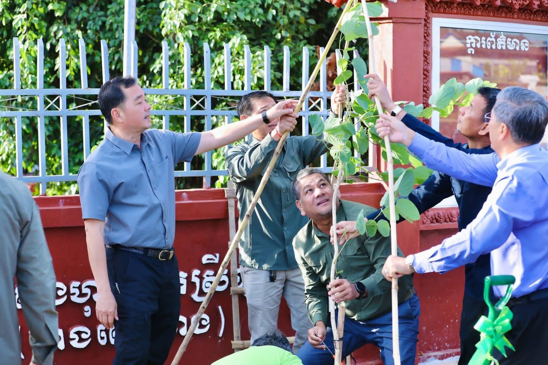 (កំពង់ចាម): ឯកឧត្តម សាយ សំអាល់ ឧបនាយករដ្ឋមន្ត្រី រដ្ឋមន្ត្រីក្រសួងរៀបចំដែនដី នគររូបនីយកម្ម និងសំណង់ និងឯកឧត្តម អ៊ុន ចាន់ដា អភិបាលនៃគណៈអភិបាលខេត្តកំពង់ចាម នាព្រឹកថ្ងៃទី២៨ ខែធ្នូ ឆ្នាំ២០២៥នេះ បានអញ្ជើញដាំដើមផ្កាជើងគោ លម្អអមសងខាងផ្លូវជាតិលេខ៧ ស្កន់-ក្រុងកំពង់ចាម ក្រោមការ ចូលរួម «ផ្ទះមួយខ្នង ដើមឈើមួយដើម» ។