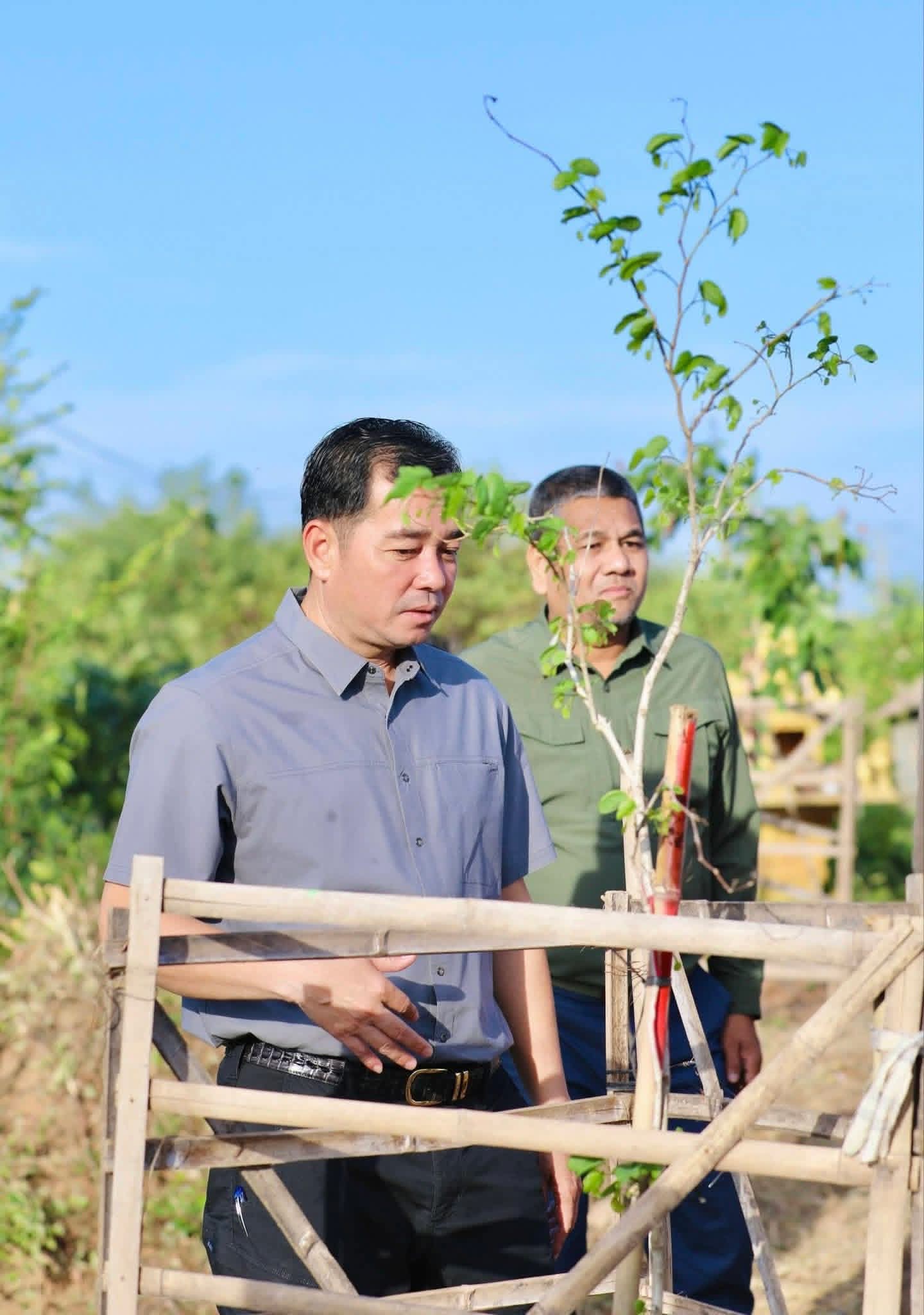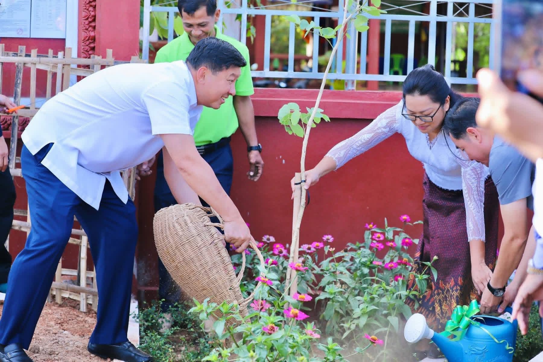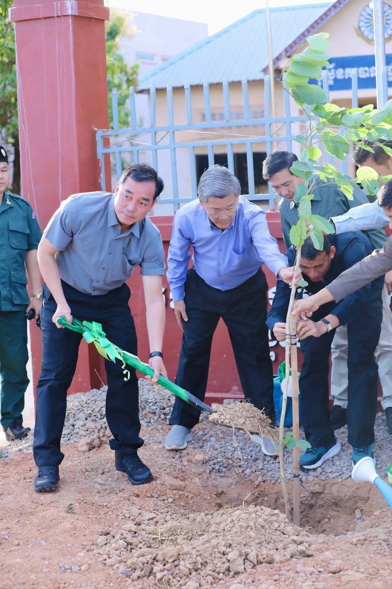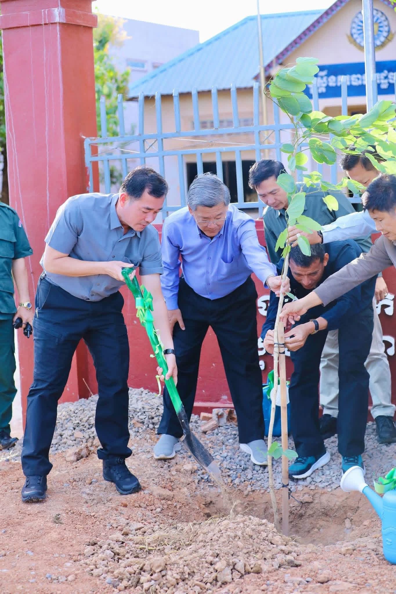 (កំពង់ចាម): ឯកឧត្តម សាយ សំអាល់ ឧបនាយករដ្ឋមន្ត្រី រដ្ឋមន្ត្រីក្រសួងរៀបចំដែនដី នគររូបនីយកម្ម និងសំណង់ និងឯកឧត្តម អ៊ុន ចាន់ដា អភិបាលនៃគណៈអភិបាលខេត្តកំពង់ចាម នាព្រឹកថ្ងៃទី២៨ ខែធ្នូ ឆ្នាំ២០២៥នេះ បានអញ្ជើញដាំដើមផ្កាជើងគោ លម្អអមសងខាងផ្លូវជាតិលេខ៧ ស្កន់-ក្រុងកំពង់ចាម ក្រោមការ ចូលរួម «ផ្ទះមួយខ្នង ដើមឈើមួយដើម» ។