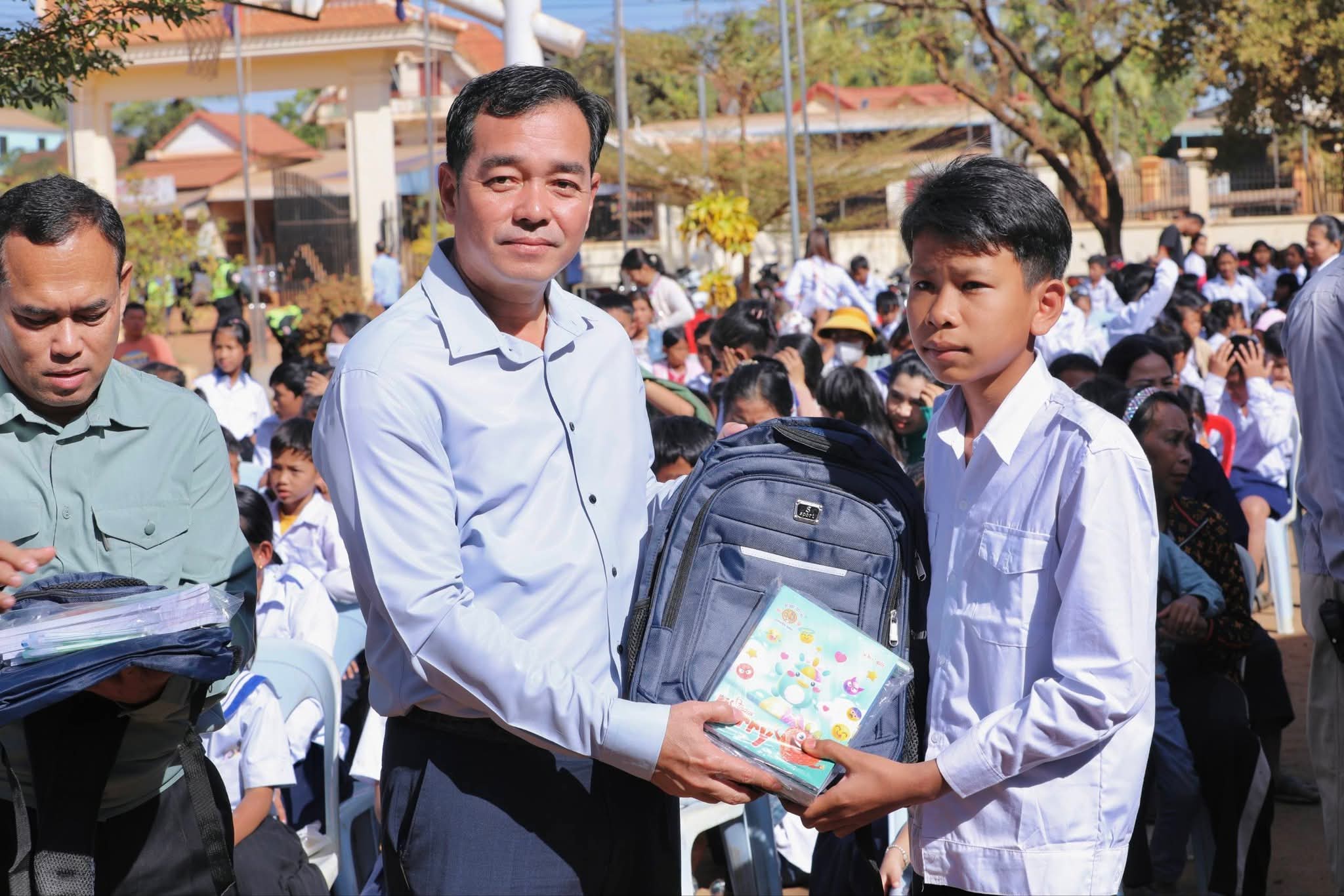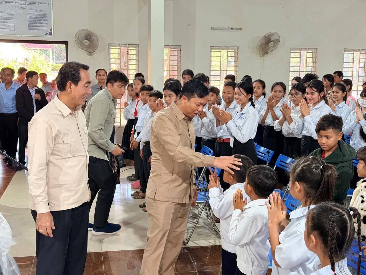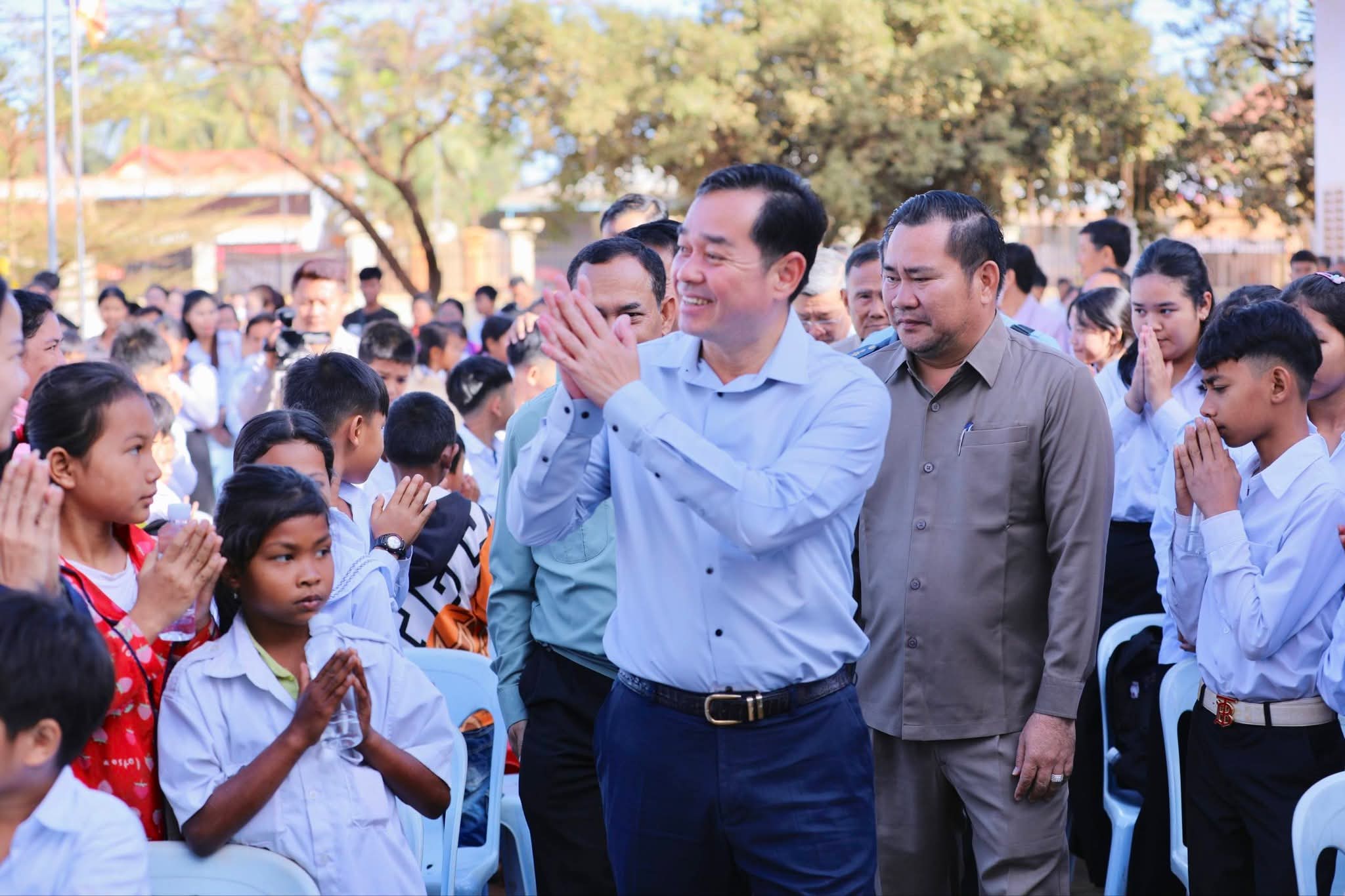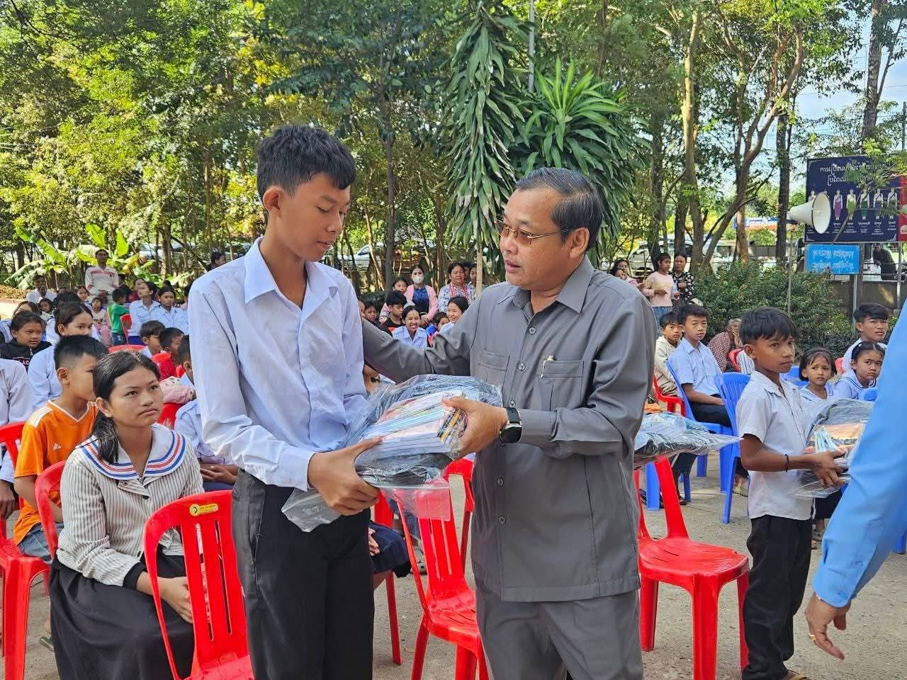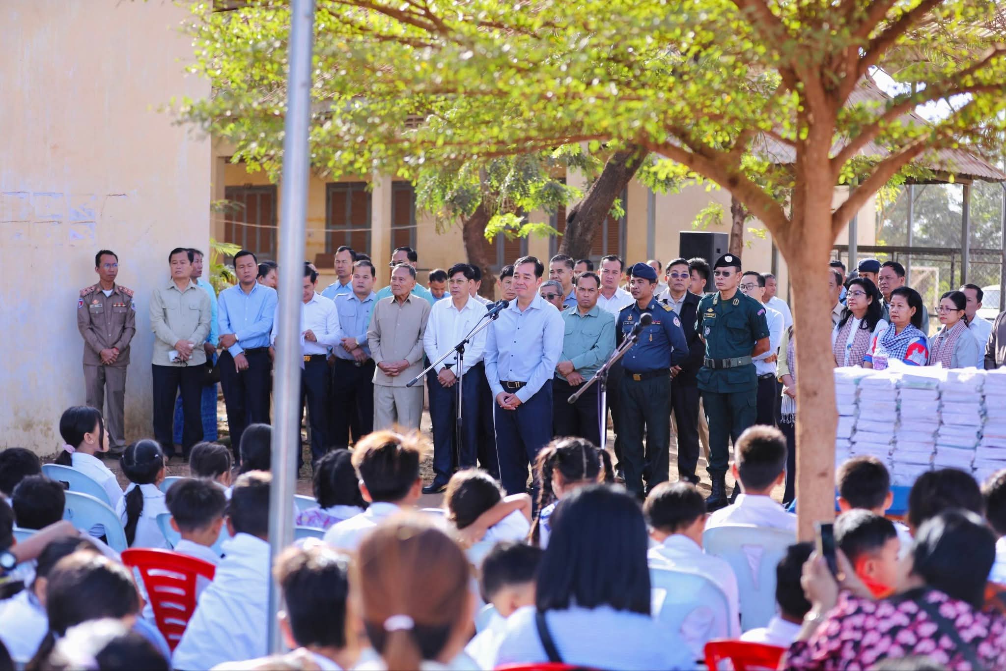 (កំពង់ចាម)៖ អភិបាល នៃគណៈអភិបាលខេត្តកំពង់ចាម ឯកឧត្តម អ៊ុន ចាន់ដា បានលើកឡើងថា អាជ្ញាធរខេត្តបាន ចែកសម្ភារៈសិក្សា និងរៀបចំឲ្យសិស្សានុសិស្ស ភៀសសឹកជាង ២.០០០នាក់ បានចូលរៀនវិញ ខណៈពេលដែល នៅបណ្ដាខេត្តជាប់ព្រំដែន កម្ពុជា-ថៃ មានបញ្ហា។ ការលើកឡើងដូច្នេះនៅថ្ងៃទី ២៩ ខែធ្នូ ឆ្នាំ ២០២៥ ក្នុងឱកាសជួបសំណេះសំណាល និងផ្ដល់សម្ភារៈសិក្សា ដល់សិស្សានុសិស្សភៀសសឹក ប្រមាណជាង ៣០០ នាក់ នៅវិទ្យាល័យ ហ៊ុន សែន ព្រៃទទឹង ស្រុកព្រៃឈរ។