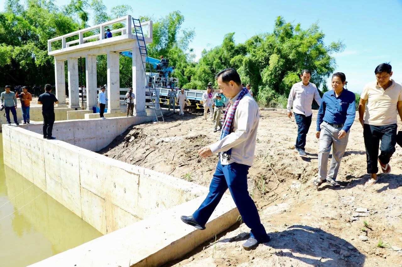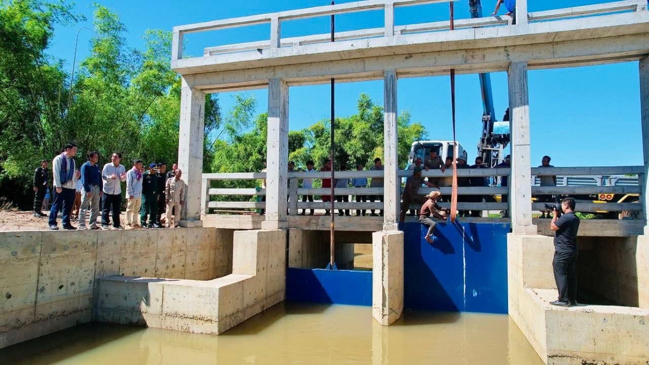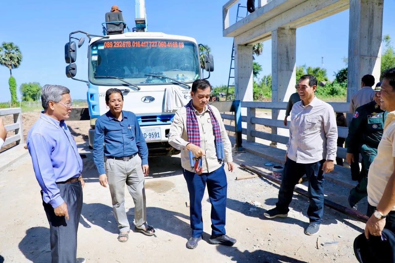 (កំពង់ចាម) ៖ អភិបាល នៃគណៈអភិបាលខេត្តកំពង់ចាម ឯកឧត្តម អ៊ុន ចាន់ដា នៅថ្ងៃទី ១២ ខែសីហា ឆ្នាំ២០២៥ នេះ បានដឹកនាំក្រុមការងារខេត្ត មន្ទីរជំនាញ និងមន្ត្រីពាក់ព័ន្ធ អញ្ជើញចុះពិនិត្យសមិទ្ធផលថ្មីស្រឡាងមួយទៀតរបស់ សម្តេចបវរធិបតី ហ៊ុន ម៉ាណែត នាយករដ្ឋមន្ត្រីនៃកម្ពុជា គឺសំណង់ស្ទាក់ទឹកព្រែកតាយី ស្ថិតក្នុងឃុំពាមកោះស្នា ស្រុកស្ទឹងត្រង់ ដែលបានស្ថាបនារួចរាល់ជាស្ថាពរ។