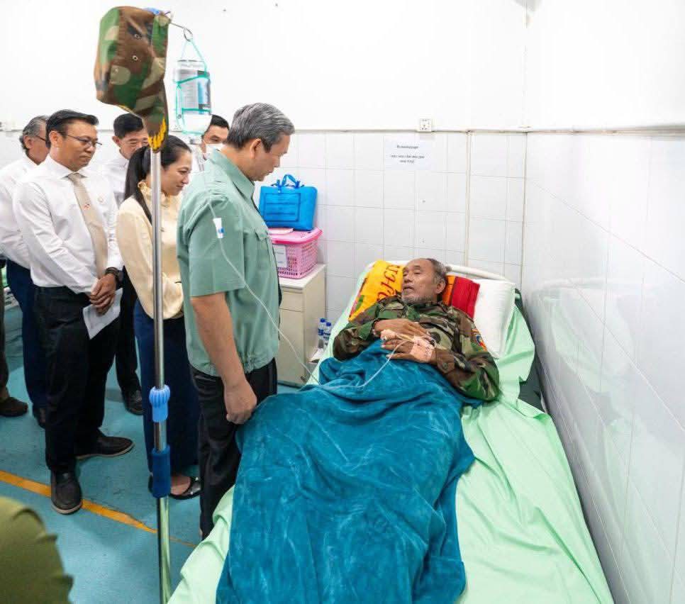 (ភ្នំពេញ) ៖ សម្តេចធិបតី ហ៊ុន ម៉ាណែត នាយករដ្ឋមន្ត្រីនៃកម្ពុជា និងលោកជំទាវបណ្ឌិត ពេជ ចន្ទមុន្នី ហ៊ុនម៉ាណែត នៅថ្ងៃអង្គារ ទី៣០ ធ្នូ ២០២៥ បានជួបសួរសុខទុក្ខបងប្អូន វីរកងទ័ព និងវីរនគរបាល ដែលរងរបួសក្នុងសមរភូមិ និងបានបញ្ជូនមកសម្រាកព្យាបាលបន្តនៅតាមមន្ទីរពេទ្យក្នុងរាជធានីភ្នំពេញ។