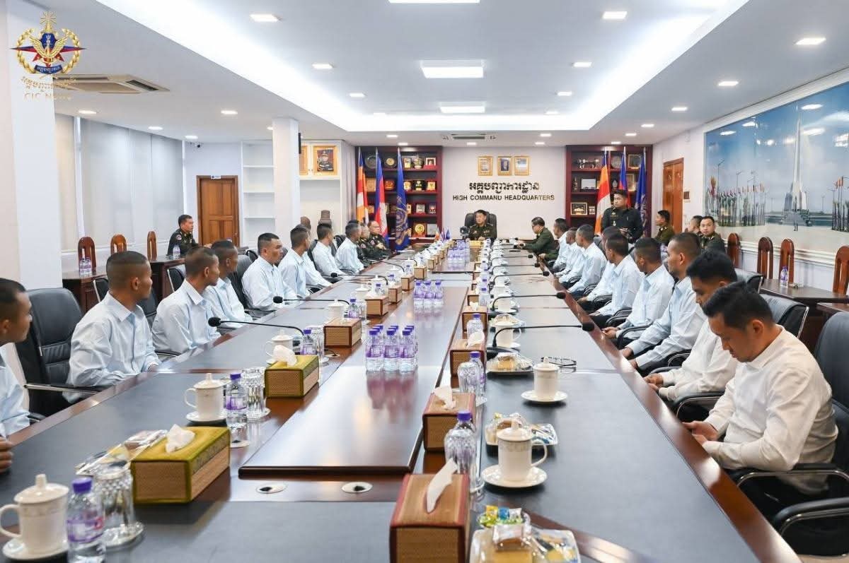 (ភ្នំពេញ) :នារសៀលថ្ងៃទី២ ខែមករា ឆ្នាំ២០២៦ នៅអគ្គបញ្ជាការដ្ឋាន ឯកឧត្តមនាយឧត្តមសេនីយ៍ វង្ស ពិសេន អគ្គមេបញ្ជាការ នៃកងយោធពលខេមរភូមិន្ទ បានទទួលជួបសំណេះ សំណាលនិងសួរសុខទុក្ខវីរៈកងទ័ពកម្ពុជាទាំង១៨រូប ដែលបាននិវត្តន៍មកដល់មាតុប្រទេសវិញបន្ទាប់ពីជាប់នៅប្រទេសថៃអស់រយៈពេល១៥៥ថ្ងៃ។