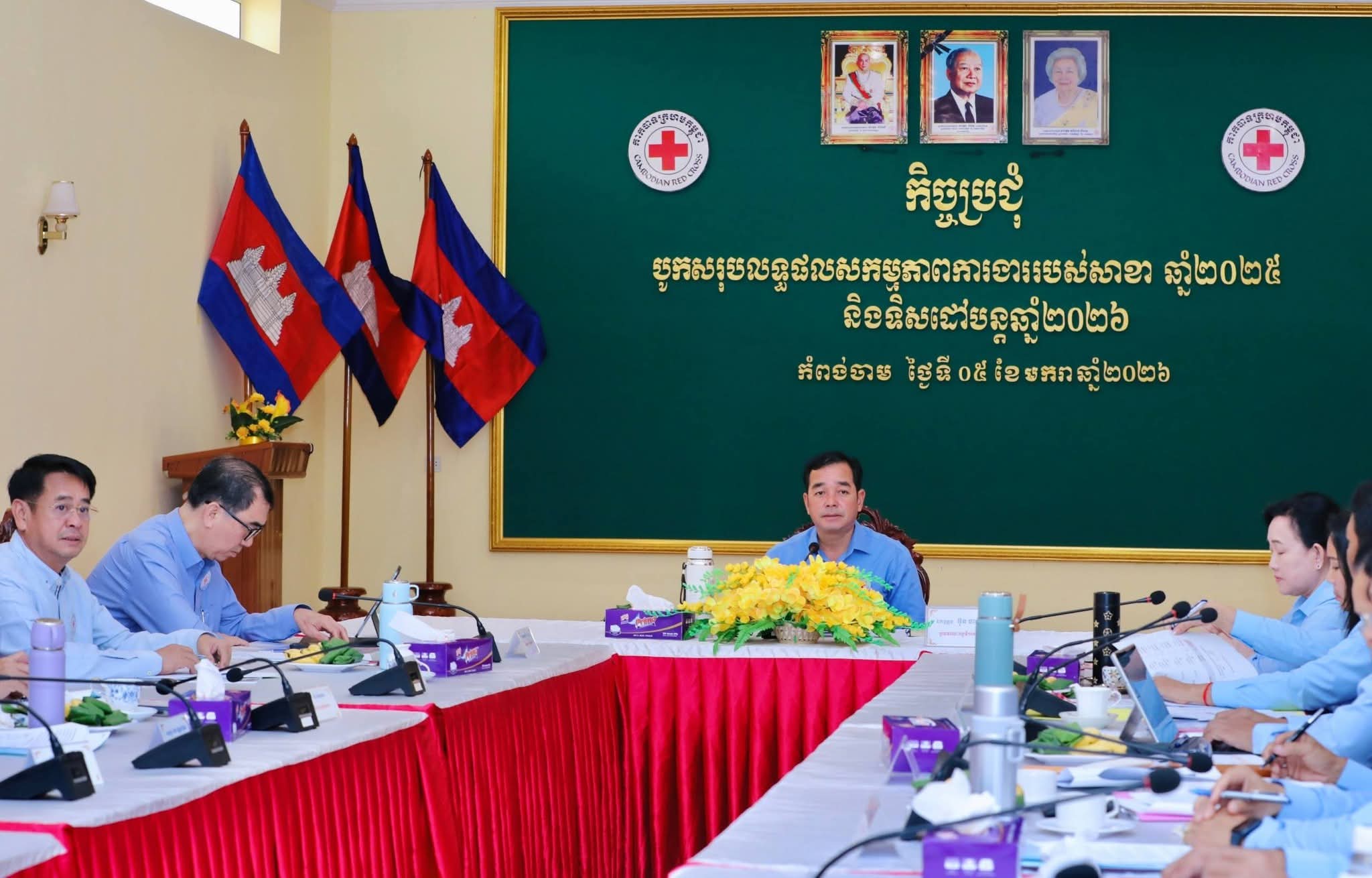 (កំពង់ចាម): ព្រឹកថ្ងៃចន្ទ ២រោច ខែបុស្ស ឆ្នាំម្សាញ់ សប្តស័ក ព,ស ២៥៦៩ ត្រូវនឹងថ្ងៃទី ៥ ខែមករា ឆ្នាំ២០២៦ ឯកឧត្តម អ៊ុន ចាន់ដា អភិបាលខេត្ត និងជាប្រធានគណៈកម្មាធិការសាខាកាកបាទក្រហមកម្ពុជាខេត្តកំពង់ចាម បានអញ្ជើញដឹកនាំកិច្ចប្រជុំត្រួតពិនិត្យវឌ្ឍនភាពការងារ ឆ្នាំ២០២៥ និងលើកទិសដៅការងារបន្ត របស់គណៈ:កម្មាធិការសាខា កាកបាទក្រហមកម្ពូជា ខេត្តកំពង់ចាម អាណត្តិទី ៦ ស្ថិតនៅទីស្នាក់ការសាខាកាកបាទក្រហមកម្ពុជាខេត្ត។
