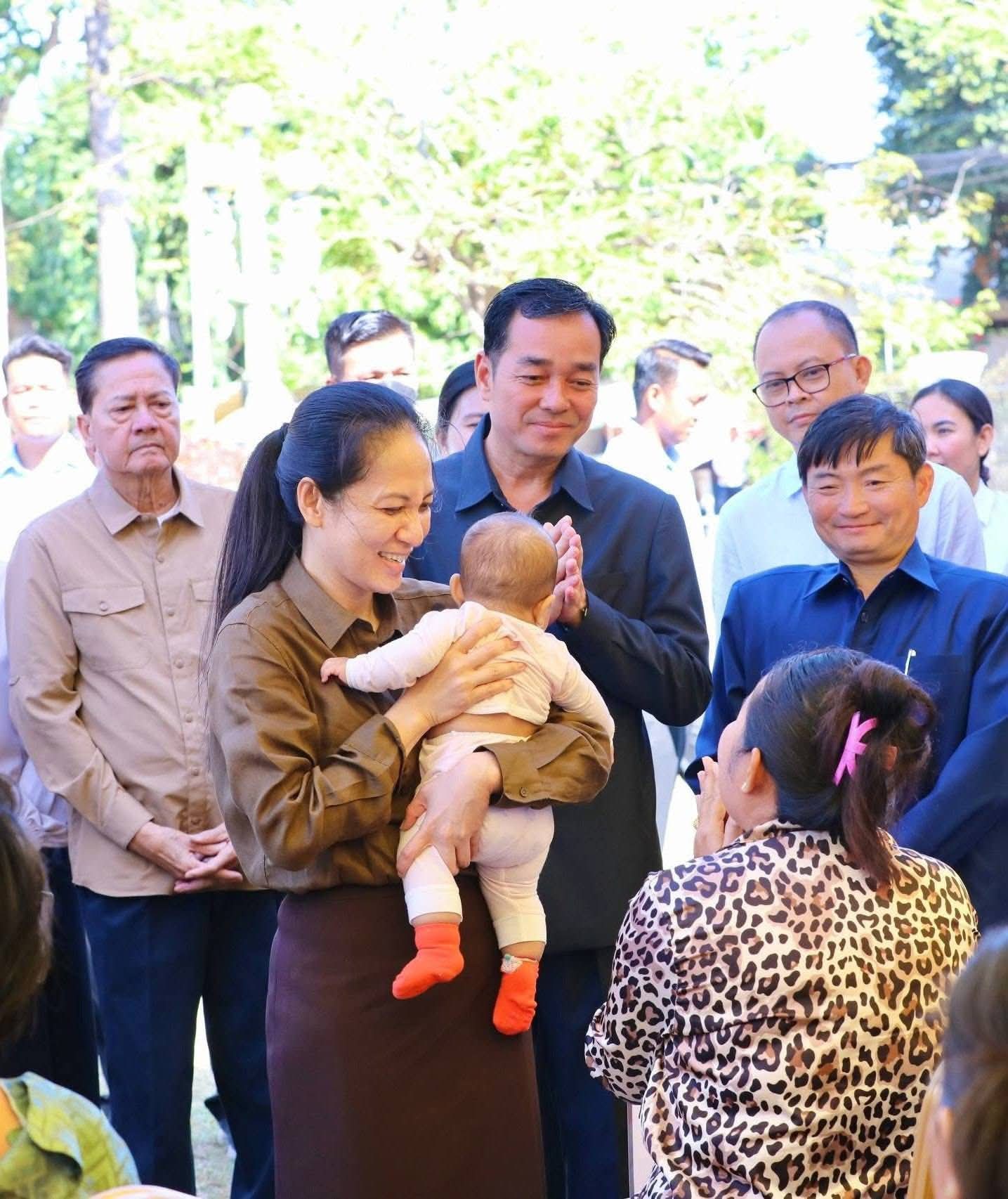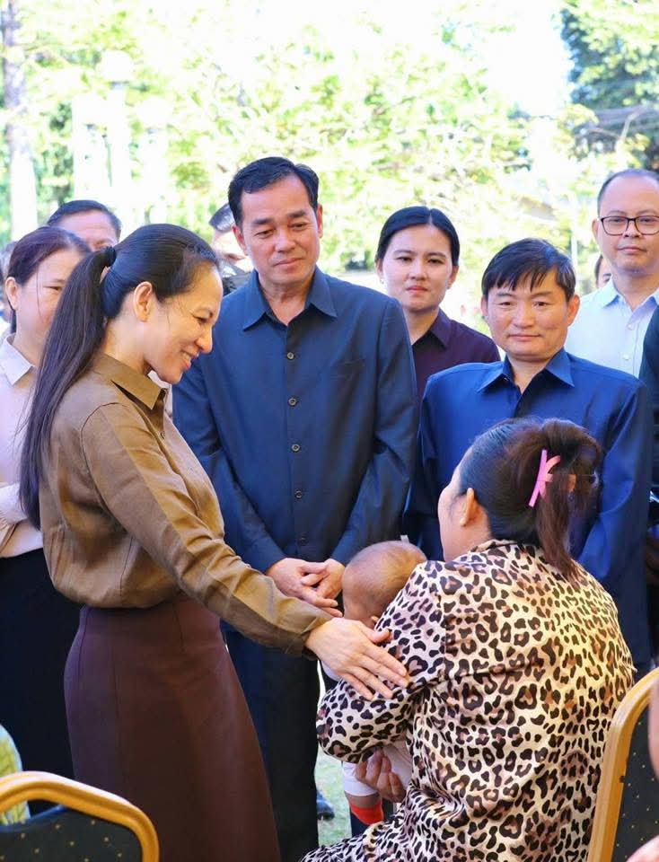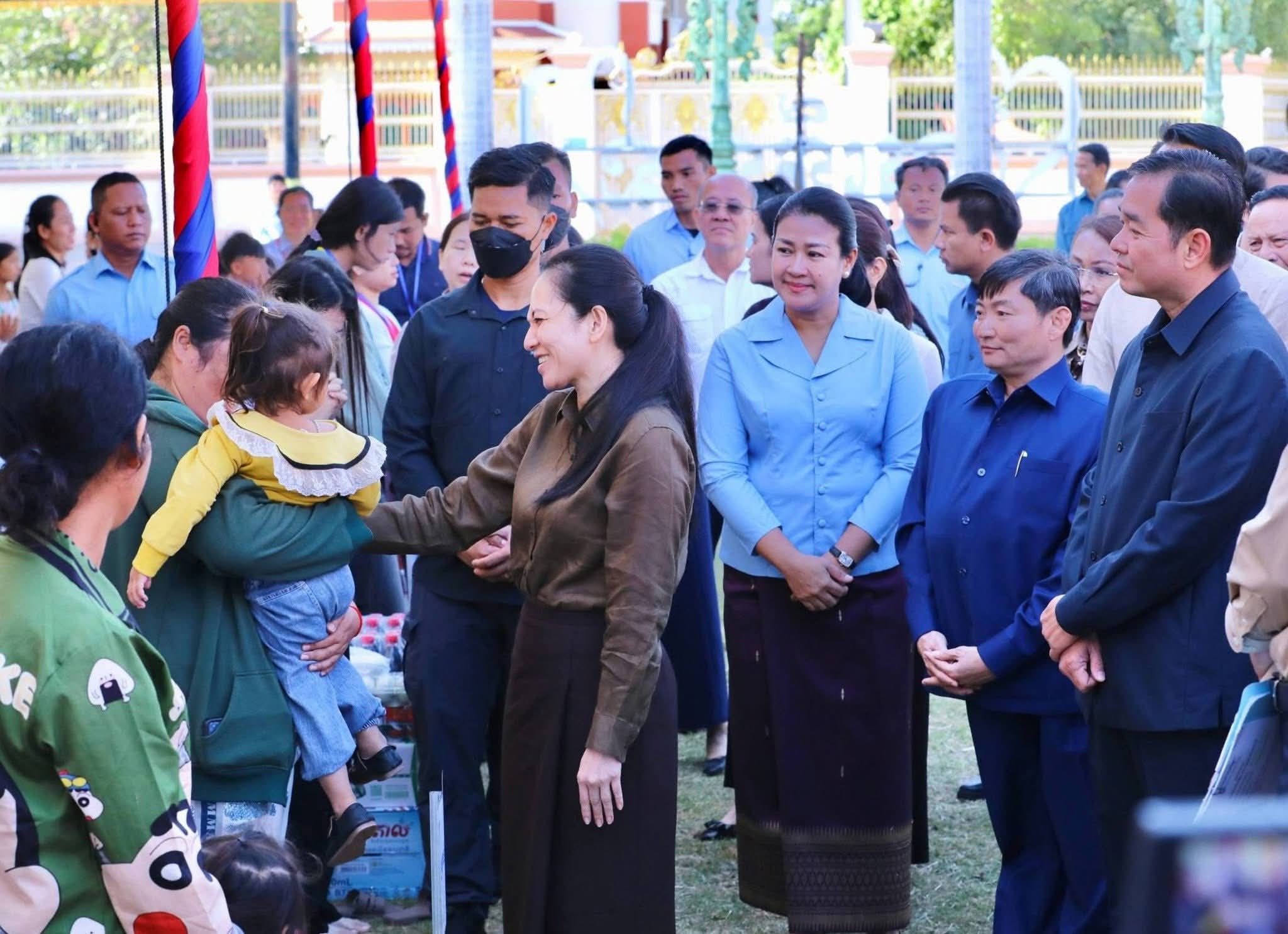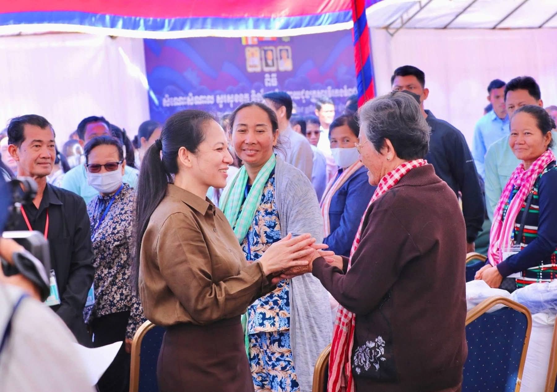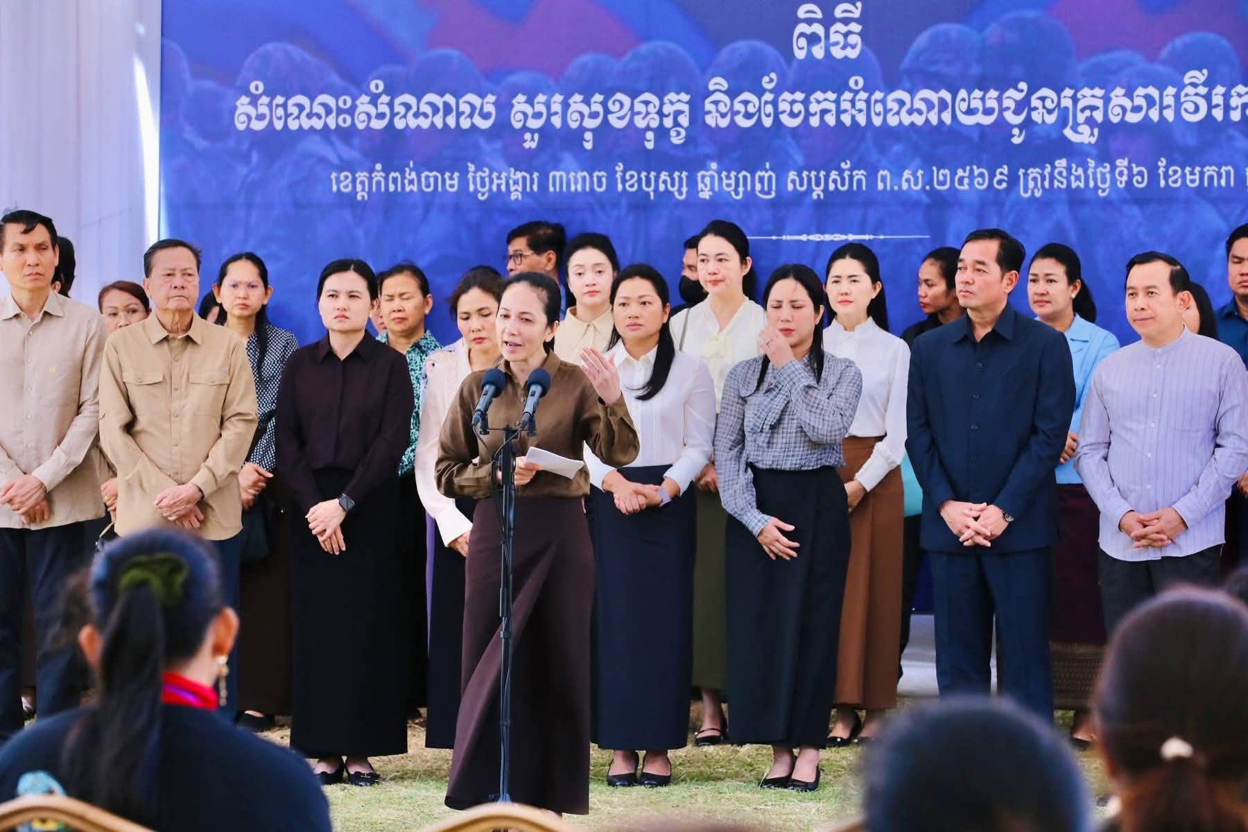 ស្ថិតក្នុងឱកាសនេះ លោកជំទាវបណ្ឌិត បានពាំនាំប្រសាសន៍ផ្តាំផ្ញេីសួរសុខទុក្ខប្រកបដោយការគិតគូរដ៏ខ្ពង់ខ្ពស់បំផុតរបស់សម្តេចអគ្គមហាសេនាបតីតេជោ ហ៊ុន សែន និងសម្តេចកិតិ្តព្រឹទ្ធបណ្ឌិត ប៊ុន រ៉ានី ហ៊ុនសែន ព្រមទាំងសម្តេចធិបតី ហ៊ុន ម៉ាណែត ជូនក្រុមគ្រួសាររបស់វីរកងទ័ពគ្រប់រូប ។ បន្ថែមពីនេះ លោកជំទាវបណ្ឌិត បាននាំយកអំណោយដ៏ថ្លៃថ្លាបំផុតរបស់ សម្តេចបវរធិបតី និងលោកជំទាវបណ្ឌិតផ្ទាល់ ប្រគល់ជូនសមាជិកក្រុមគ្រួសារវីរកងទ័ពគ្រប់ៗរូប ដើម្បីប្រើប្រាស់ និងសម្រួលដល់ជីវភាពរស់នៅប្រចាំថ្ងៃ ។