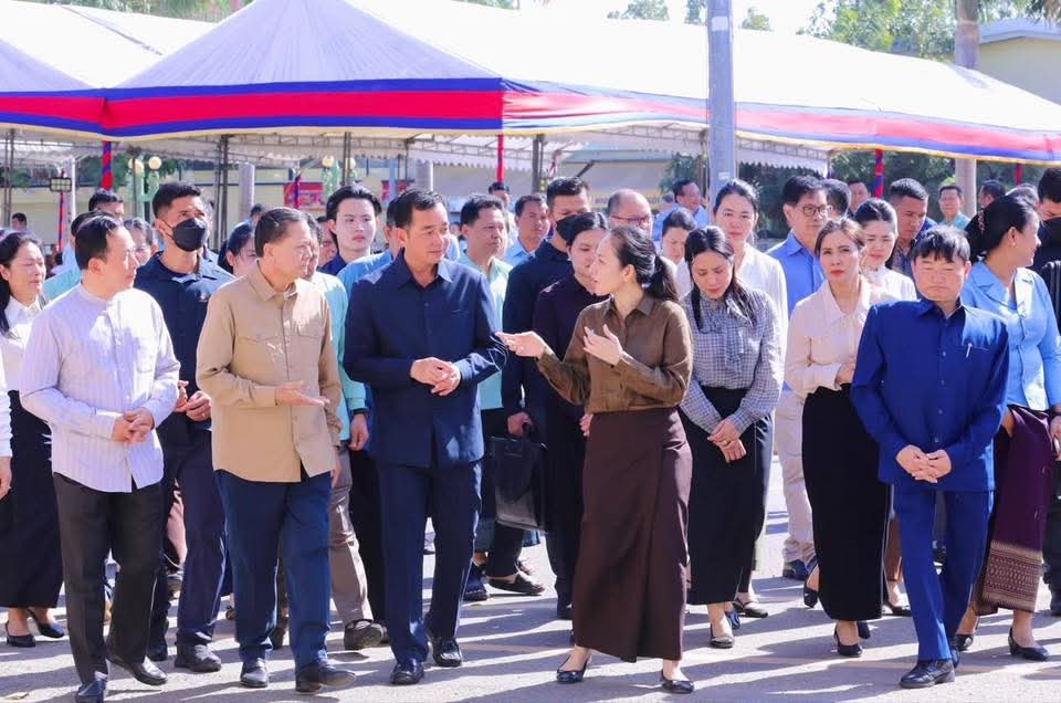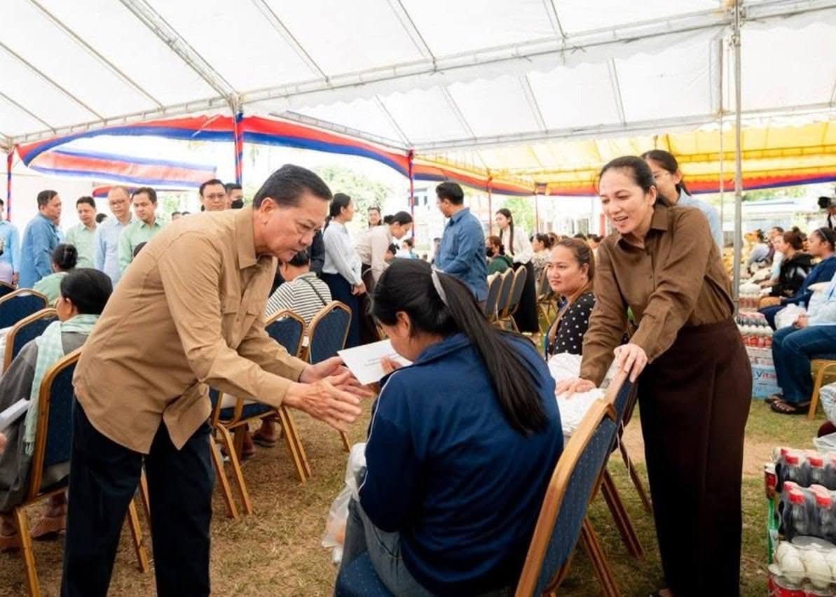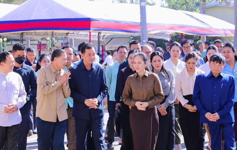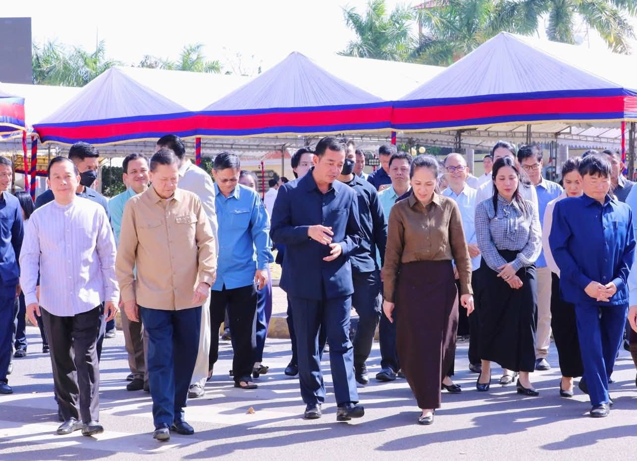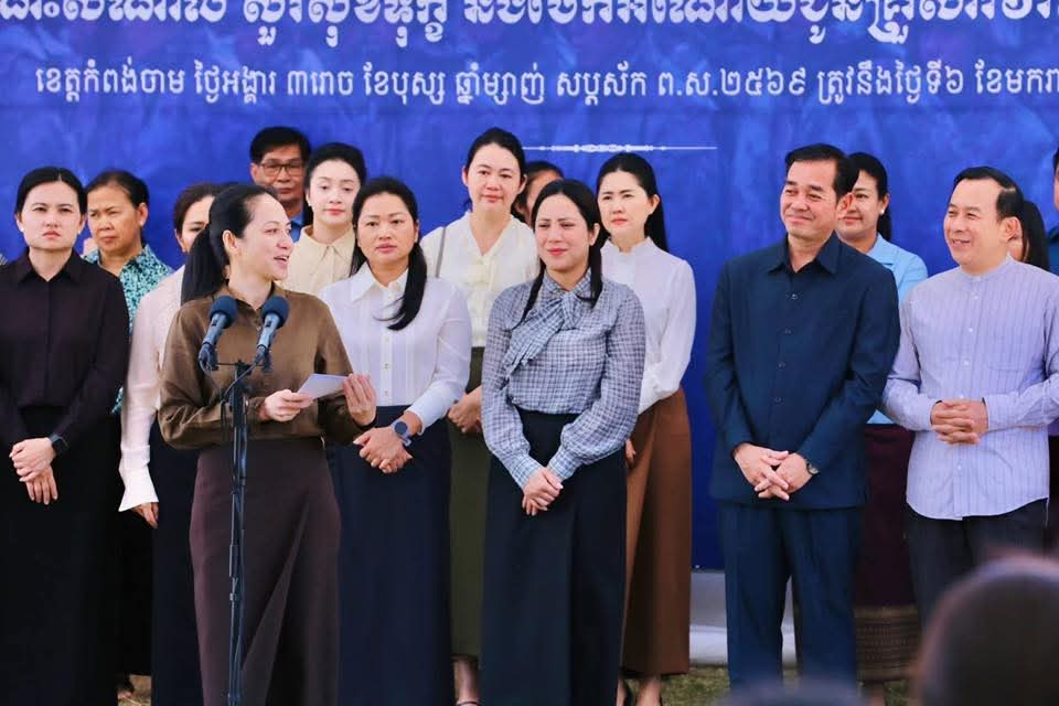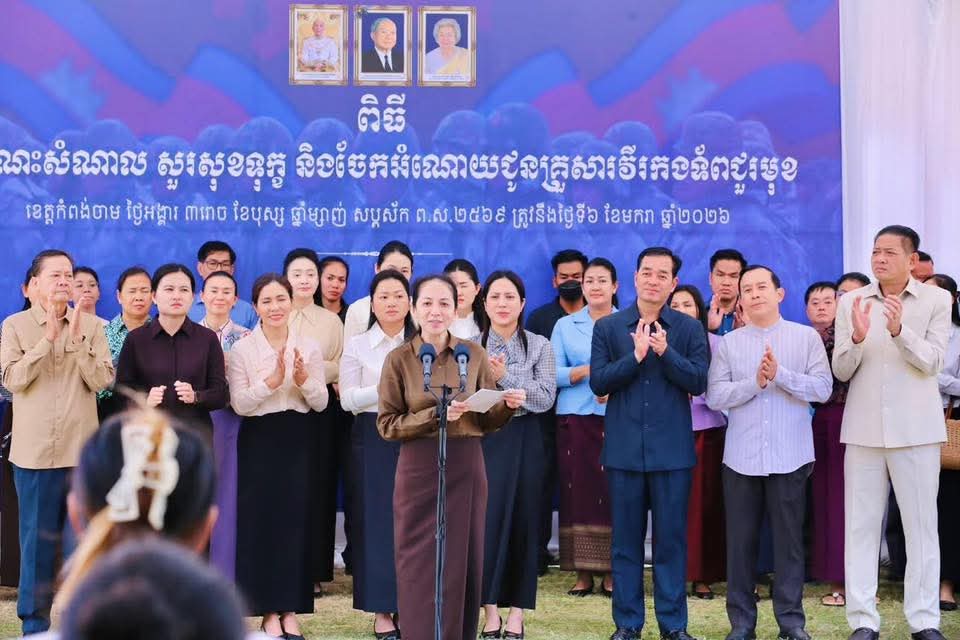 (កំពង់ចាម): អភិបាល នៃគណៈអភិបាលខេត្តកំពង់ចាម ឯកឧត្តម អ៊ុន ចាន់ដា និងលោកជំទាវ ញូង ចរិយា អ៊ុនចាន់ដា និង ឯកឧត្តម ខ្លូត ផន ប្រធានក្រុមប្រឹក្សាខេត្ត អញ្ជើញទទួលបដិសណ្ឋារកិច្ចវត្តមានដ៏កក់ក្តៅ របស់លោកជំទាវបណ្ឌិត ពេជ ចន្ទមុន្នី ហ៊ុនម៉ាណែត នអញ្ជើញជួបសំណេះសំណាល សួរសុខទុក្ខ និងចែកអំណោយជូនគ្រួសារវីរកងទ័ពជួរមុខ ដែលពិធីនេះ ធ្វើឡើងនៅលើសួនស្មៅ ខាងមុខសាលាខេត្តកំពង់ចាម នាព្រឹកថ្ងៃទី៦ ខែមករា ឆ្នាំ២០២៦។
