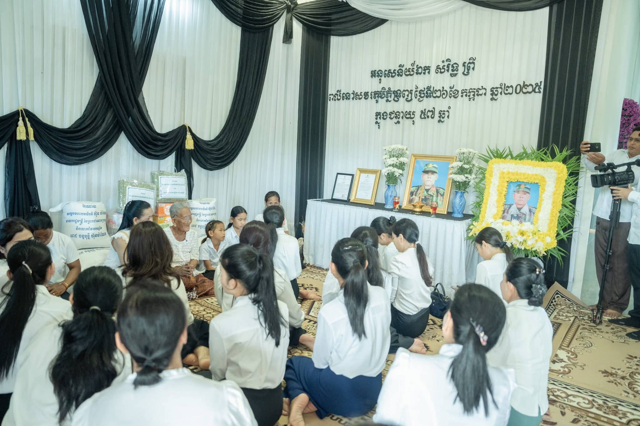 ស្ថិតក្នុងសមានទុក្ខដ៏ក្រៀមក្រំរកអ្វីប្រៀបផ្ទឹមពុំបាននេះ លោកជំទាវបណ្ឌិត ពេជ ចន្ទមុន្នី ហ៊ុន ម៉ាណែត បានបង្ហាញនូវសេចក្តីស្រណោះអាឡោះអាល័យរកទីបំផុតគ្មានជាមួយក្រុមគ្រួសារនៃសព ដែលបានបាត់បង់នូវស្វាមី កូន បងប្អូន សាច់ញាតិជាទីស្រលាញ់ដ៏មានគុណធម៌ សុជីវធម៌ កតញ្ញូវេទិតាធម៌ចំពោះជីដូន ជីតា ឳពុកម្តាយ និងបងប្អូន ជាពិសេស បាត់បង់ដ៏ធំធេងនូវពលទាហានដ៏អង់អាចក្លាហាន ដែលតែងតែលះបង់អស់កម្លាំងកាយ កម្លាំងចិត្ត ប្រាជ្ញាស្មារតី និងធ្វើពលីកម្មគ្រប់បែបយ៉ាងរហូតដល់អាយុជីវិត ដើម្បីបុព្វហេតុជាតិ មាតុភូមិ និងសេចក្តីសុខក្សេមក្សាន្តរបស់ប្រជាជនកម្ពុជាទាំងមូល និងបានឧទ្ទិសបួងសួងដល់ដួងវិញ្ញាណក្ខន្ធរបស់វីរកងទ័ពទាំងពីរ បានចាប់បដិសន្ធិក្នុងឋានសុគតិភព កុំបីឃ្លៀងឃ្លាតឡើយ៕