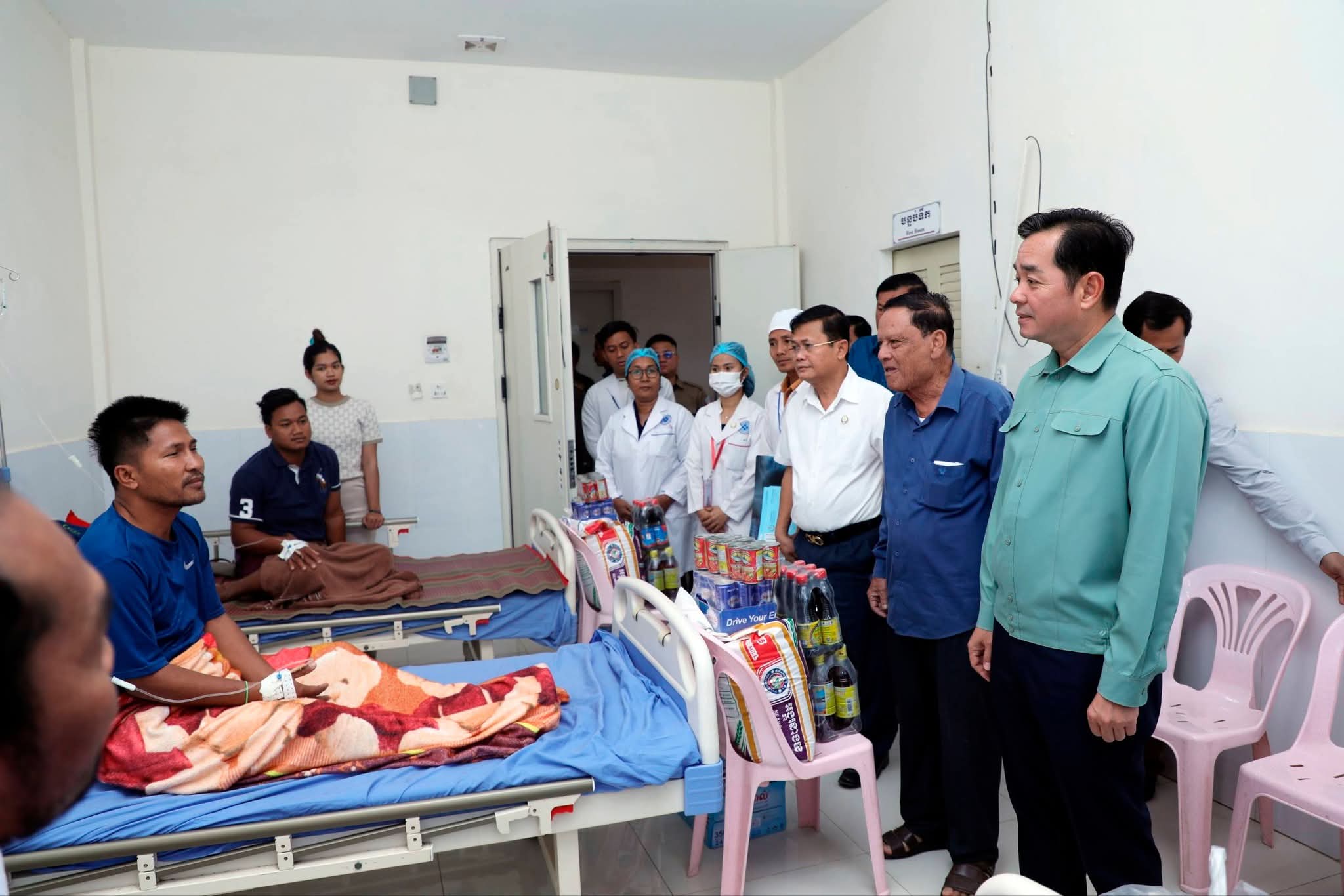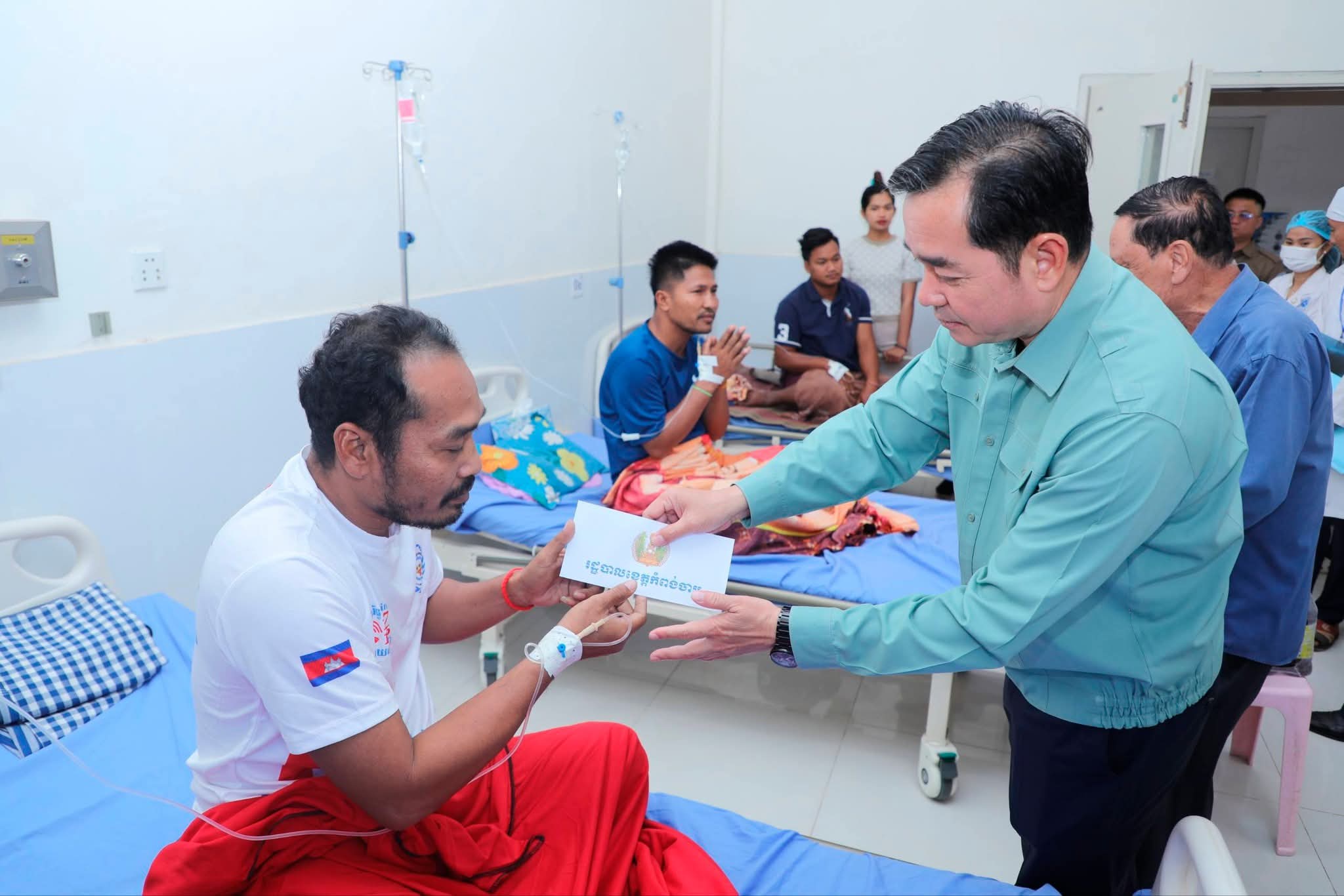 ជាមួយនោះដែរ ឯកឧត្តម អភិបាលខេត្ត ក៏បានផ្ដាំផ្ញើដល់ក្រុមគ្រូពេទ្យ សូមយកចិត្តទុកដាក់ថែទាំ និងព្យាបាលដល់វីរកងទ័ពយើង ឱ្យបានល្អប្រសើរ ដែលភារកិច្ចនេះ រដ្ឋបាលខេត្ត ជាអ្នករាប់រងបន្ទុកចំណាយទាំងស្រុង ។ សូមជម្រាបថា វីរកងទ័ពទាំង ០៤រូប រួមមាន ៖ ១.លោក រឿង ចាន់ធាវី អាយុ៤៥ឆ្នាំ វិរកងទ័ពជួរមុខ ទិសខេត្តព្រះវិហារ។ ២.លោក ចក់ ស៊ីជៀន អាយុ៣៤ឆ្នាំ វិរកងទ័ពជួរមុខ កងពល២១ តាក្របី ឧត្តរមានជ័យ ទិសខេត្តព្រះវិហារ ។ ៣. លោក ហិប សារិទ្ធ អាយុ២៦ កងពលតូច៨ កងពលធំ៣ ទិសខេត្តព្រះវិហារ។ និង ៤. អាយុ ២៥ឆ្នាំ ជានគរបាល ទិសខេត្តបន្ទាយមានជ័យ៕