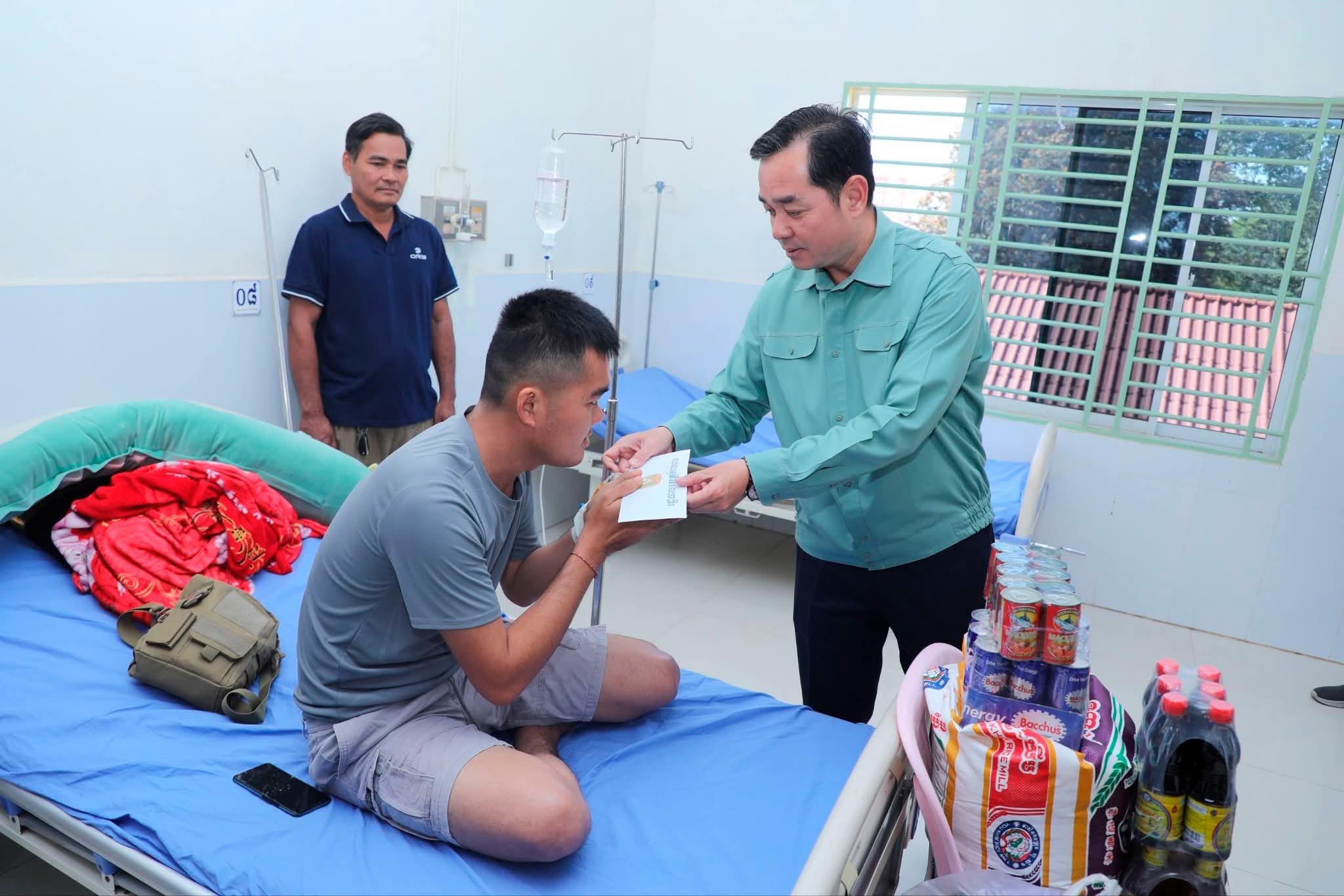 (កំពង់ចាម) :នៅថ្ងៃទី០៨ ខែមករា ឆ្នាំ២០២៦ ឯកឧត្តម អ៊ុន ចាន់ដា អភិបាល នៃគណៈអភិបាលខេត្តកំពង់ចាម និងឯកឧត្តម ខ្លូត ផន ប្រធានក្រុមប្រឹក្សាខេត្ត ដឹកនាំក្រុមការងារ អញ្ជើញចុះសួរសុខទុក្ខ និងផ្ដល់អំណោយជូនវីរកងទ័ព ៣រូប និងនគរបាល ១រូប កំពុងសម្រាកព្យាបាលជំងឺ នៅមន្ទីរពេទ្យបង្អែកខេត្តកំពង់ចាម ។
