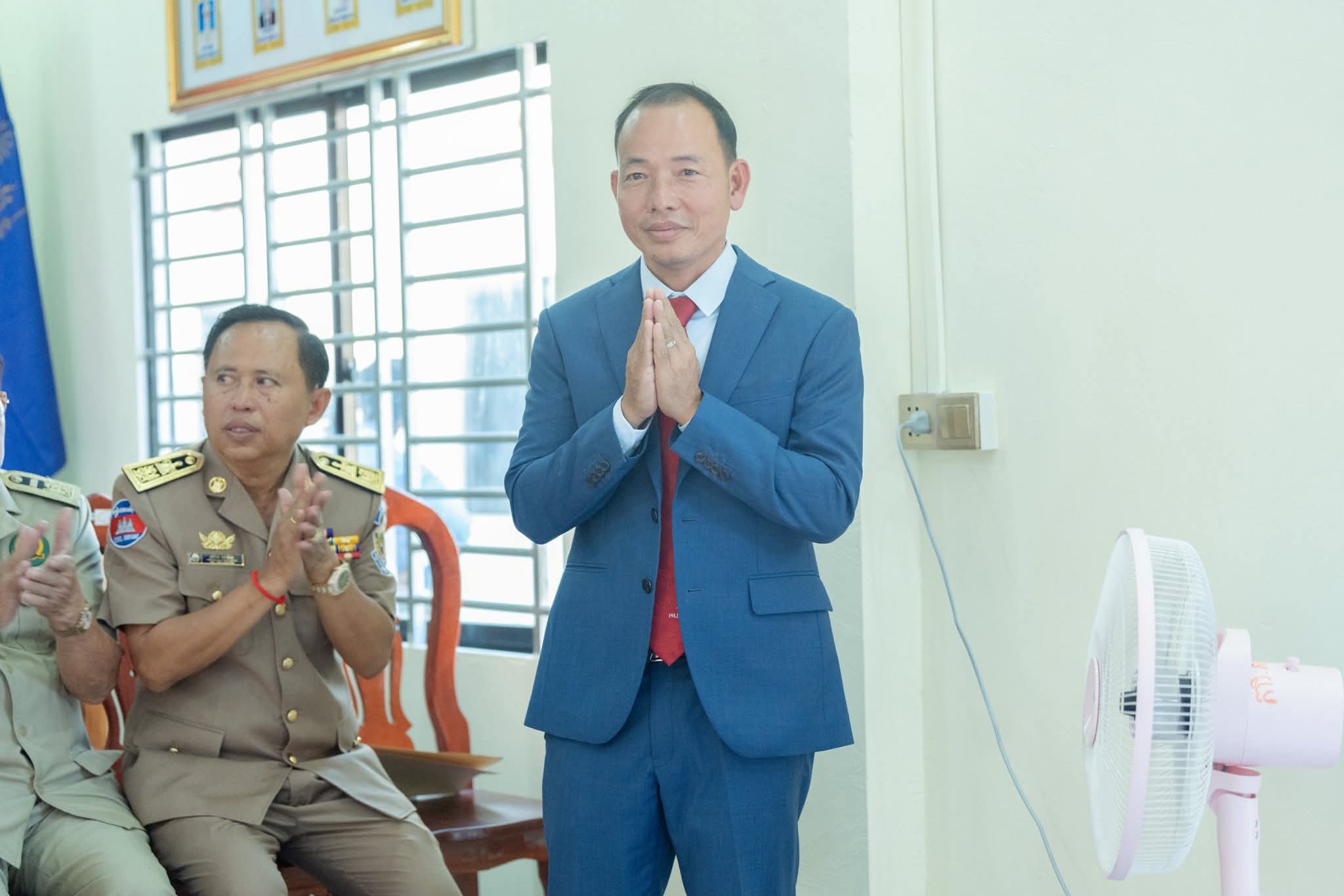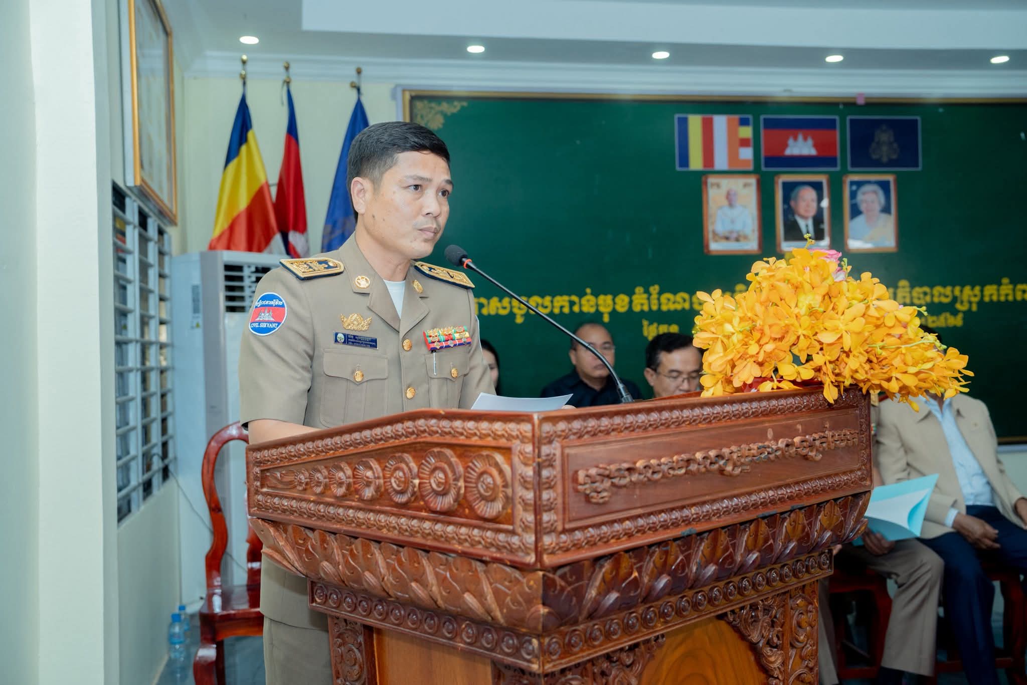 (ព្រៃវែង) : នារសៀលថ្ងៃចន្ទ ទី១២ ខែមករា ឆ្នាំ២០២៦ ឯកឧត្តម សួន សុម៉ាលីន អភិបាល នៃគណ: អភិបាលខេត្តព្រៃវែង និងឯកឧត្ដម ស្បោង សារ៉ាត ប្រធានក្រុមប្រឹក្សាខេត្ត បានអញ្ជើញជាអធិបតីក្នុងពិធីប្រកាសចូលកាន់មុខតំណែង លោក ភុន សម្ផស្ស ឋានន្តរស័ក្តិឧត្តមមន្ត្រី ថ្នាក់លេខ៣ ជាអភិបាលស្រុកកំពង់ត្របែក ជំនួសលោក យ៉ាវ សានិន ដែលត្រូវបានផ្លាស់ប្ដូរឱ្យទៅបម្រើការងារជាអភិបាលស្រុកព្រះស្ដេច ដែលពិធីនេះប្រព្រឹត្តទៅនៅសាលាស្រុកកំពង់ត្របែក ខេត្តព្រៃវែង។