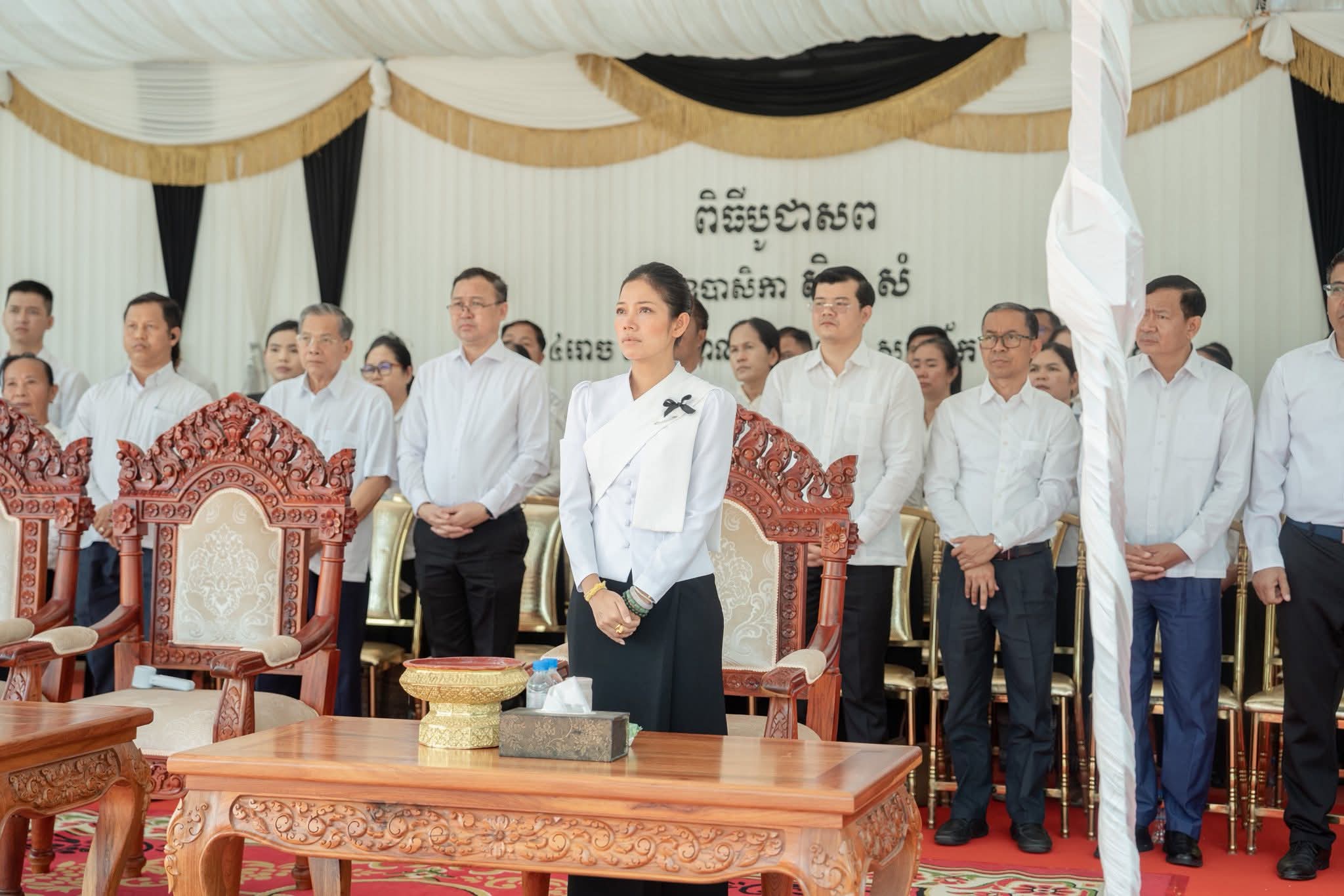 ក្នុងបរិយាកាសដ៏សែនរន្ធត់ក្រៀមក្រំសោកសៅនេះ យេីងខ្ញុំទាំងអស់គ្នា សូមឧទ្ទិសបួងសួងដល់គុណបុណ្យព្រះរតនត្រ័យ វត្ថុស័ក្តិសិទ្ធិទាំងឡាយក្នុងលោក ជួយដឹកនាំដួងវិញ្ញាណក្ខន្ធ ឧបាសិកា សុិន សំ ទៅសោយសុខក្នុងឋានសុគតិភព កុំបីឃ្លៀងឃ្លាតឡើយ។