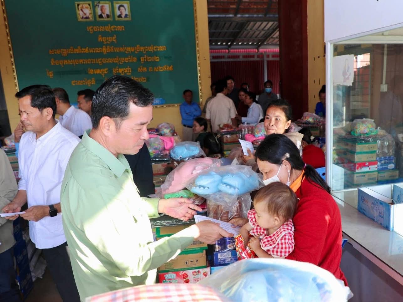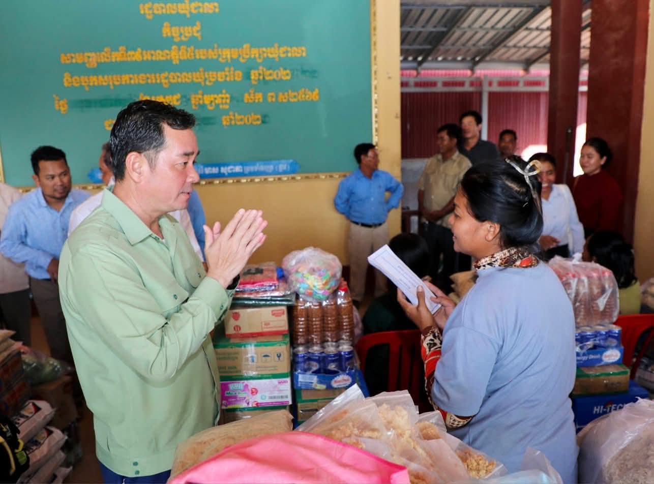 អំណោយដែលបានផ្ដល់ជូននាពេលនោះ ក្នុងមួយគ្រួសារ ទទួលបាន: -អង្ករ ១០០គីឡូ មីខ្លាឃ្មុំក្រហម ២កេស, ទឹកសុទ្ធ ៥កេស, ទឹកស៊ីអ៉ីវ ២យួរ, ទឹកត្រី ២យួរ, បាកាស ១កេស, ប៉ូការីស្វេត ១កេស, អំបុក ៥ថង់, ខោអាវចម្រុះ ៥ថង់, បាយក្តាំង ៥កញ្ចប់, ប្រេងឆា ៥លីត, ខ្ទឹមស៥គីឡូ, អំបិល១គីឡូ, ប៊ីចេង១គីឡូ, សៀង១យួរ, ម្សៅស៊ុប, ០,៥គីឡូ, អង្រឹង ០២រាយ, ស្បែកជើង ០៣គូរ, សារ៉ុង ០២រាយ, ក្រម៉ា០២រាយ, ធូបមូស ៥ប្រអប់, សាប៊ូបោកខោអាវ ៥កញ្ចប់, សាប៊ូលាងចាន ១ដប, ស្ករគ្រាប់ ១គីឡូ, ទឹកដោះគោក្រដាស ៥កេស និងថវិកា ចំនួន ១.០០០.០០០រៀលផងដែរ៕