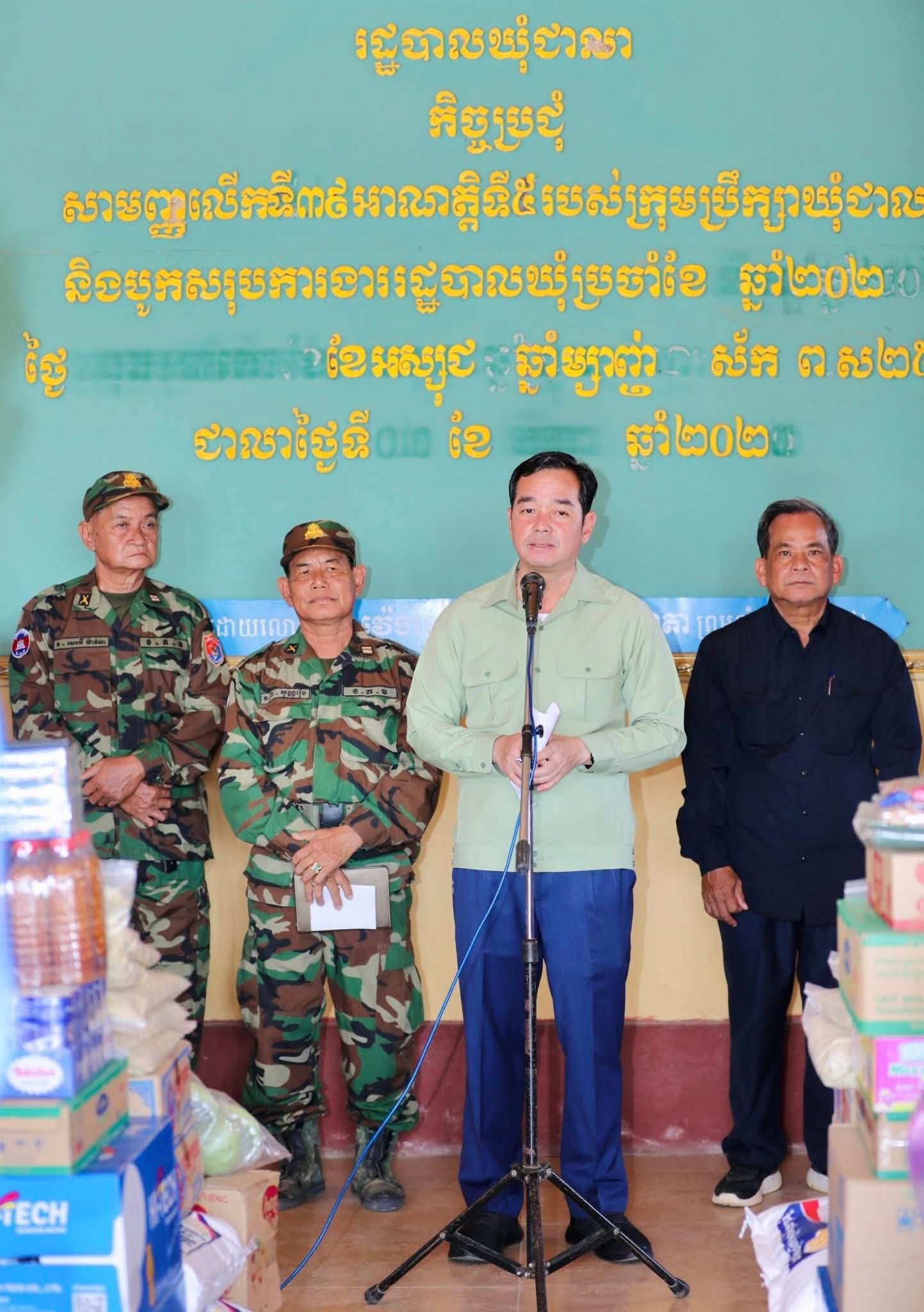 ក្នុងឱកាសនោះ ឯកឧត្តម អ៊ុន ចាន់ដា អភិបាលខេត្ត បានពាំនាំនូវប្រសាសន៍ផ្ដាំផ្ញើសួរសុខទុក្ខ ពីសម្តេច មហាបវរធិបតី ហ៊ុន ម៉ាណែត នាយករដ្ឋមន្ត្រីនៃព្រះរាជាណាចក្រកម្ពុជា និងលោកជំទាវបណ្ឌិត ពេជ ចន្ទមុន្នី ហ៊ុនម៉ាណែត ជូនចំពោះបងៗ វរកងទ័ព និងក្រុមគ្រួសារ ប្រកបដោយក្តីមនោសញ្ចេតនាដ៏ជ្រាលជ្រៅ និងការដឹងគុណនូវវីរភាពដ៏អង់អាចក្លាហានរបស់វីកងទ័ពយើង ហើយជានិច្ចកាលប្រមុខថ្នាក់ដឹកនាំ លោកតែងយកចិត្តទុកដាក់គិតគូរអំពីសុខទុក្ខ និងជីវភាពរស់នៅ និងបានជួយអន្តរាគមន៍ជួយដោះស្រាយសម្រាលនូវទុក្ខលំបាក របស់វីរកងទ័ព និងក្រុមគ្រួសារ បានទាន់ពេលវេលា ដោយមិនរើសអើង ឬនិន្នាការនយោបាយអ្វីឡើយ។