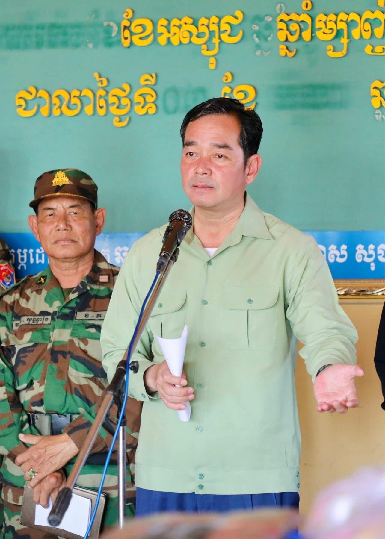 ឯកឧត្តម អភិបាលខេត្ត ក៏បានបញ្ជាក់ពីជំហរយ៉ាងមុតមាំ និងស្វាហាប់ ប្រកបដោយគតិបណ្ឌិតដ៏ខ្ពង់ខ្ពស់របស់ប្រមុខរាជរដ្ឋាភិបាលកម្ពុជា ក្នុងការរក្សាបាននូវសុខសន្តិភាព ស្ថិរភាពនយោបាយ និងការការពារ អធិបតេយ្យភាព បូរណភាពទឹកដីពីការឈ្លានពានដ៏គគ្លើនរបស់ប្រទេសថៃ។