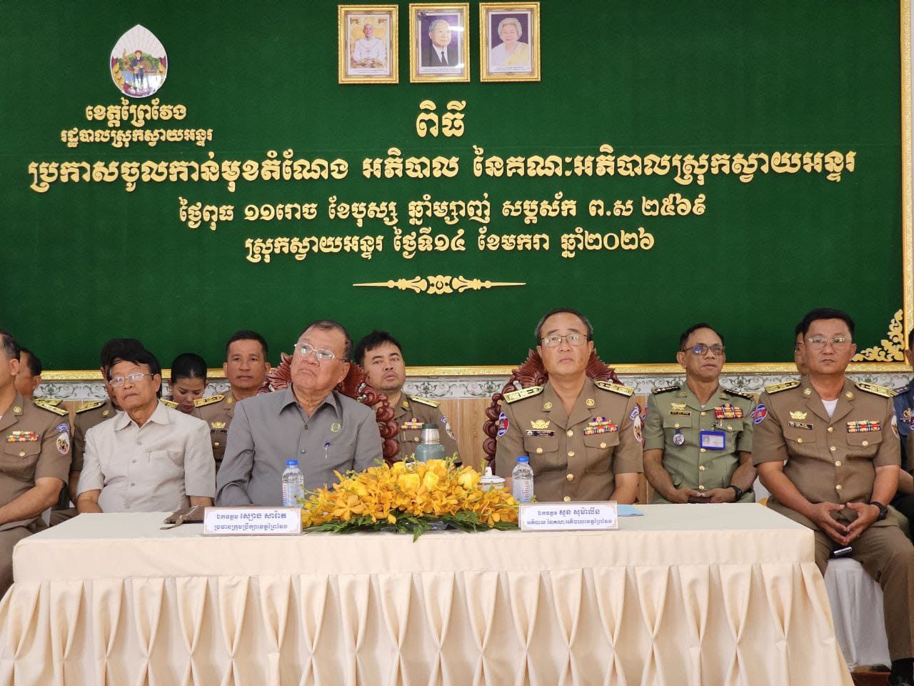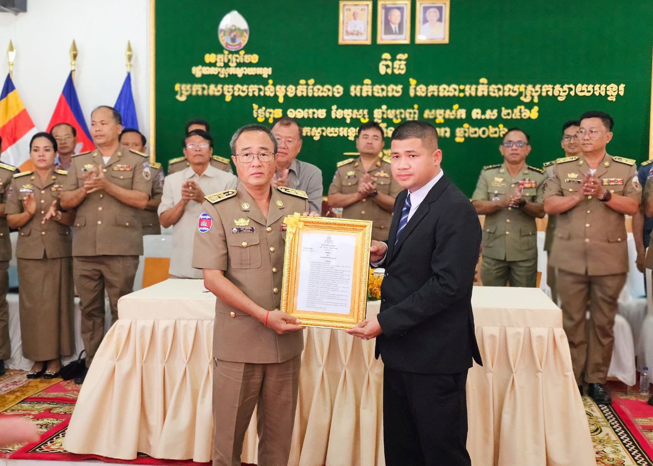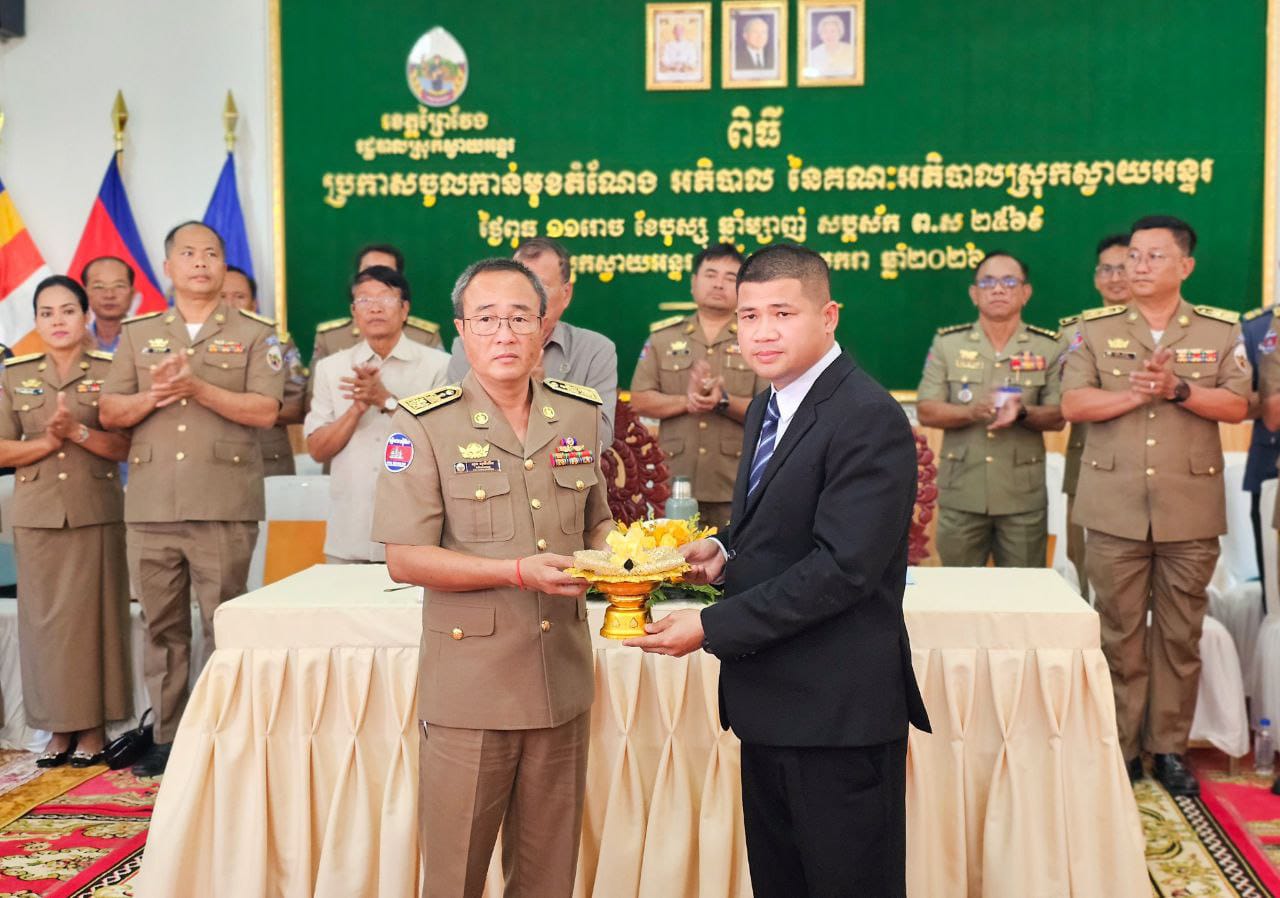 (ព្រៃវែង) ៖ នៅថ្ងៃទី ១៤ ខែមករា ឆ្នាំ២០២៦ ឯកឧត្ដម ស្បោង សារ៉ាត ប្រធានក្រុមប្រឹក្សាខេត្ត និងឯកឧត្តម សួន សុម៉ាលីន អភិបាលខេត្តព្រៃវែង បានអញ្ជើញប្រកាស លោក ហៃ សំណាង ចូលកាន់មុខតំណែង អភិបាលនៃគណៈអភិបាលស្រុកស្វាយអន្ទរ ជំនួស លោក ប៉ិច សុង ដែលត្រូវបានចូលនិវត្ត ដែលពិធីនេះធ្វើនៅសាលាស្រុកស្វាយអន្ទរ ខេត្តព្រៃវែង ។