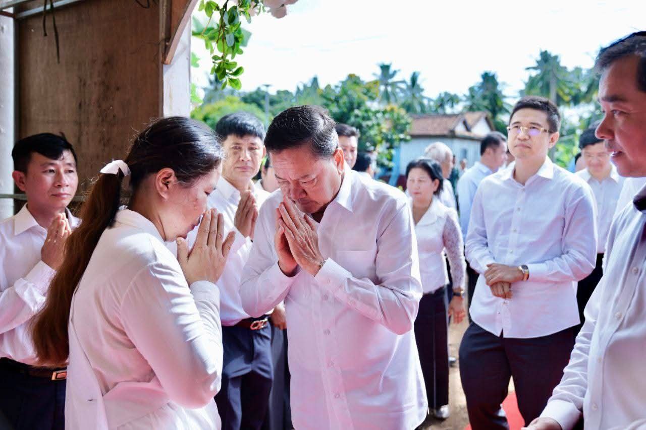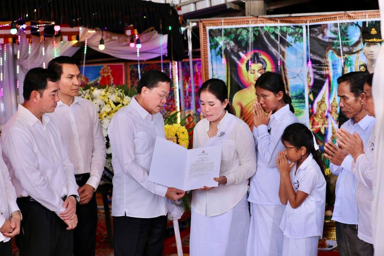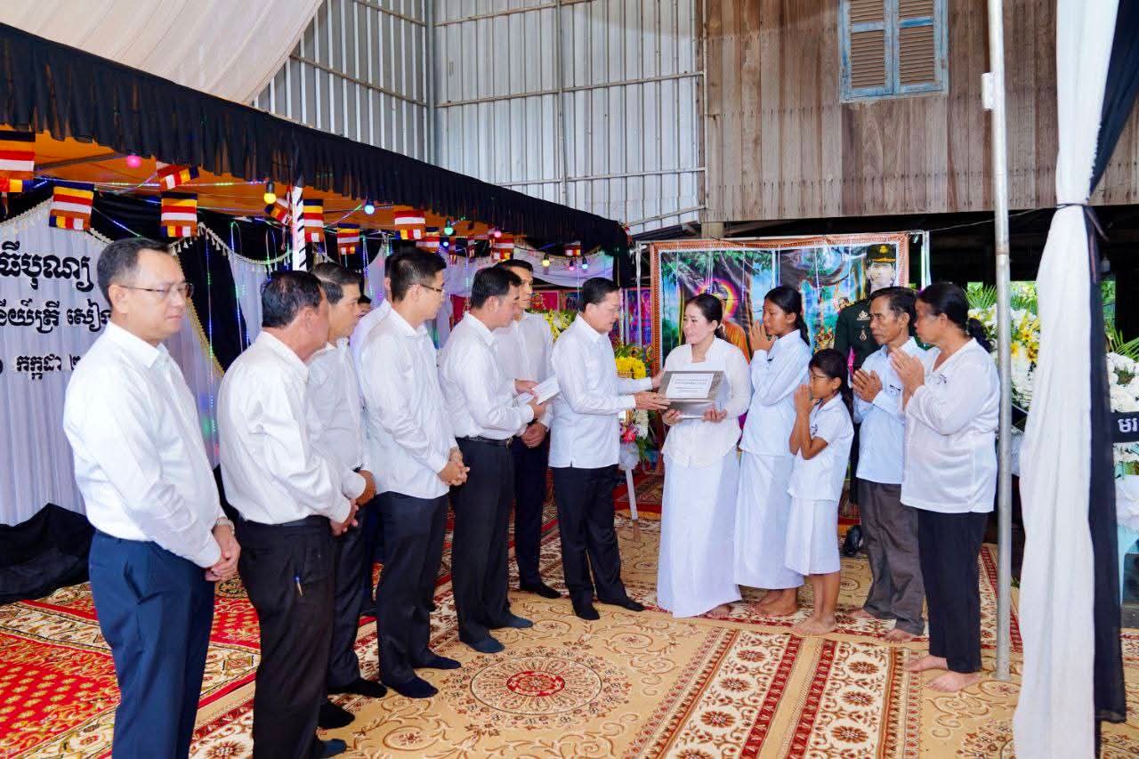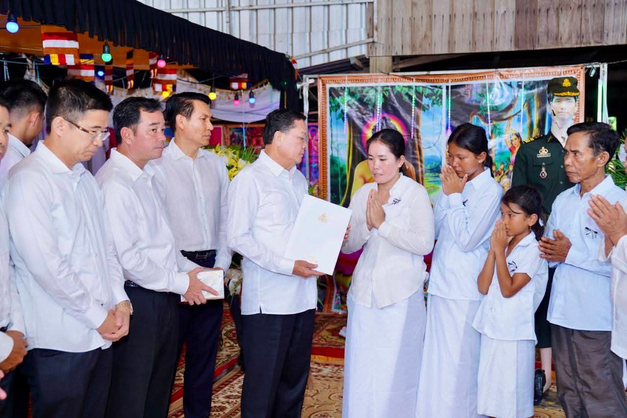 (កំពង់ចាម)៖ ឯកឧត្តម អ៊ុន ចាន់ដា អភិបាល នៃគណៈអភិបាលខេត្តកំពង់ចាម និង ឯកឧត្តម ខ្លូត ផន ប្រធានក្រុមប្រឹក្សាខេត្ត នារសៀលថ្ងៃទី៣១ ខែកក្កដា ឆ្នាំ២០២៥ នេះ ដឹកនាំប្រតិភូខេត្ត និងមន្ត្រីពាក់ព័ន្ធ អមដំណើរ ឯកឧត្តមសន្តិបណ្ឌិត នេត សាវឿន តំណាងដ៏ខ្ពង់ខ្ពស់ សម្តេចមហាបវរធិបតី ហ៊ុន ម៉ាណែត នាយករដ្ឋមន្ត្រី នៃព្រះរាជាណាចក្រកម្ពុជា អញ្ជើញគោរពវិញ្ញាណក្ខន្ធសព លោកវរសេនីយ៍ឯក សៀង សាត វីរកងទ័ពដែលបានពលីជីវិត ក្នុងបុព្វហេតុការពារបូរណភាពទឹកដី ពីចោរឈ្លានពានសៀម ក្នុងភូមិសាស្ត្រចំណុចមុំបី ខេត្តព្រះវិហារ។