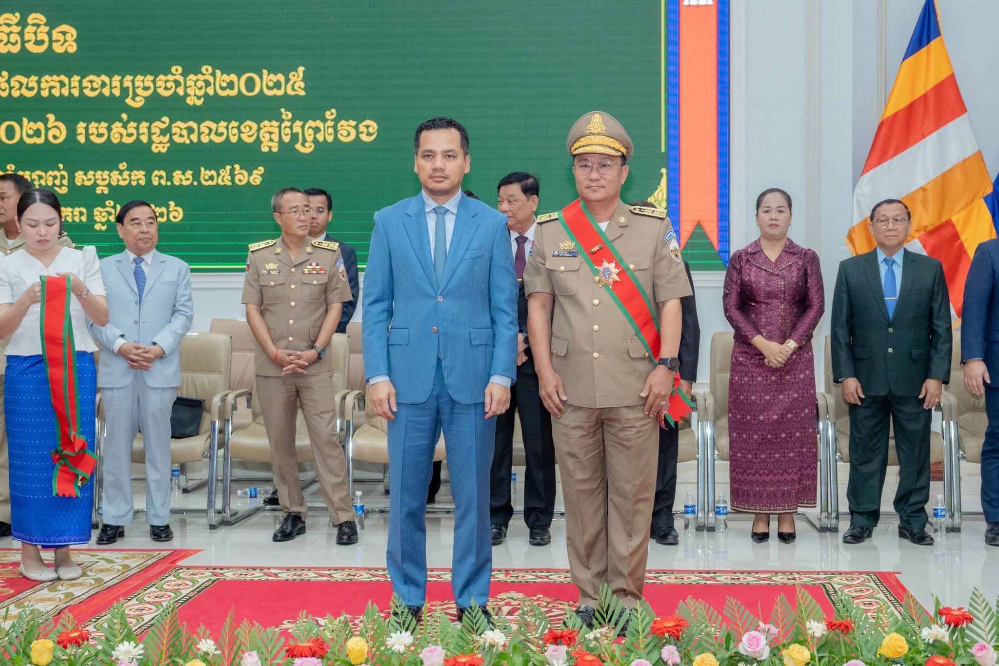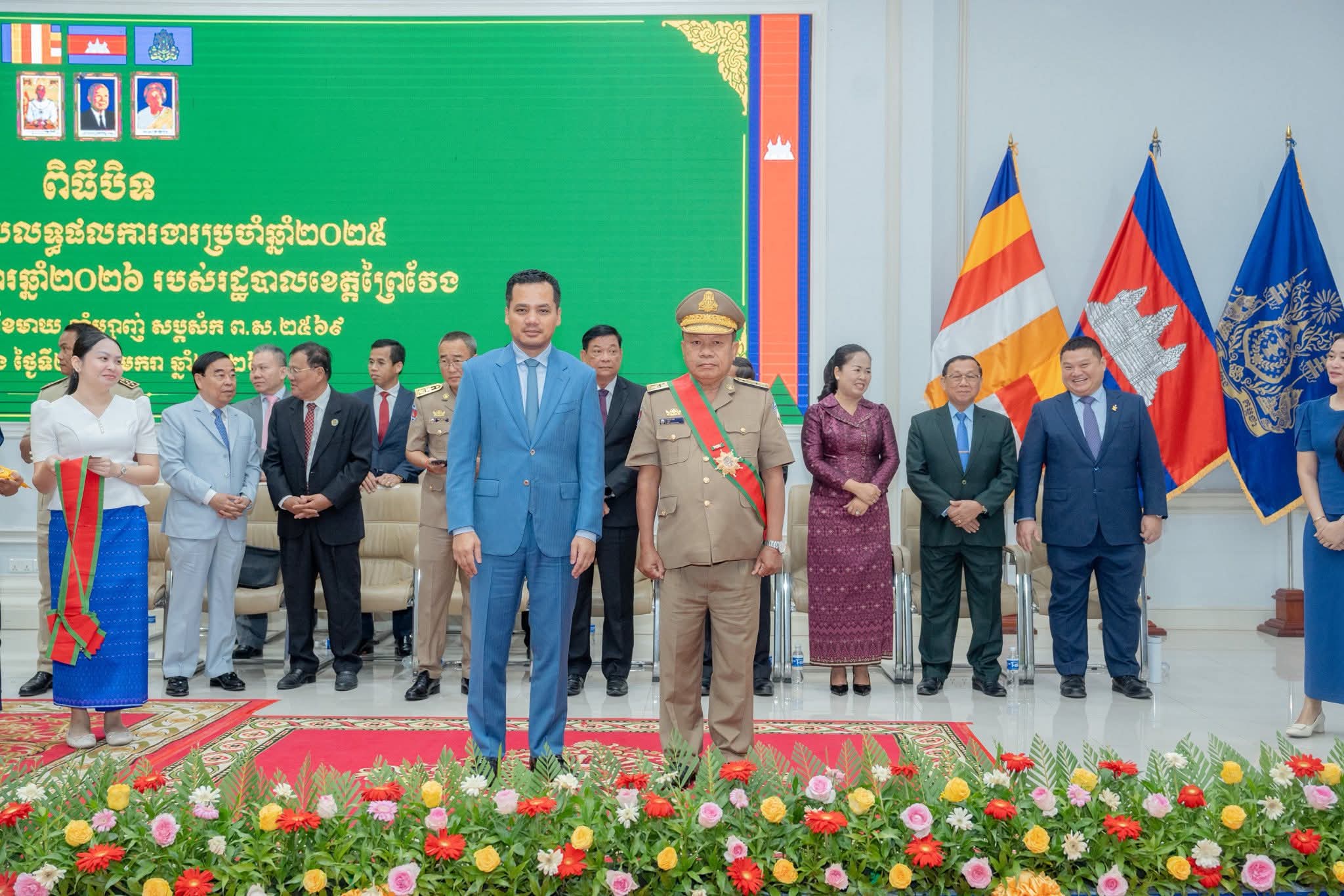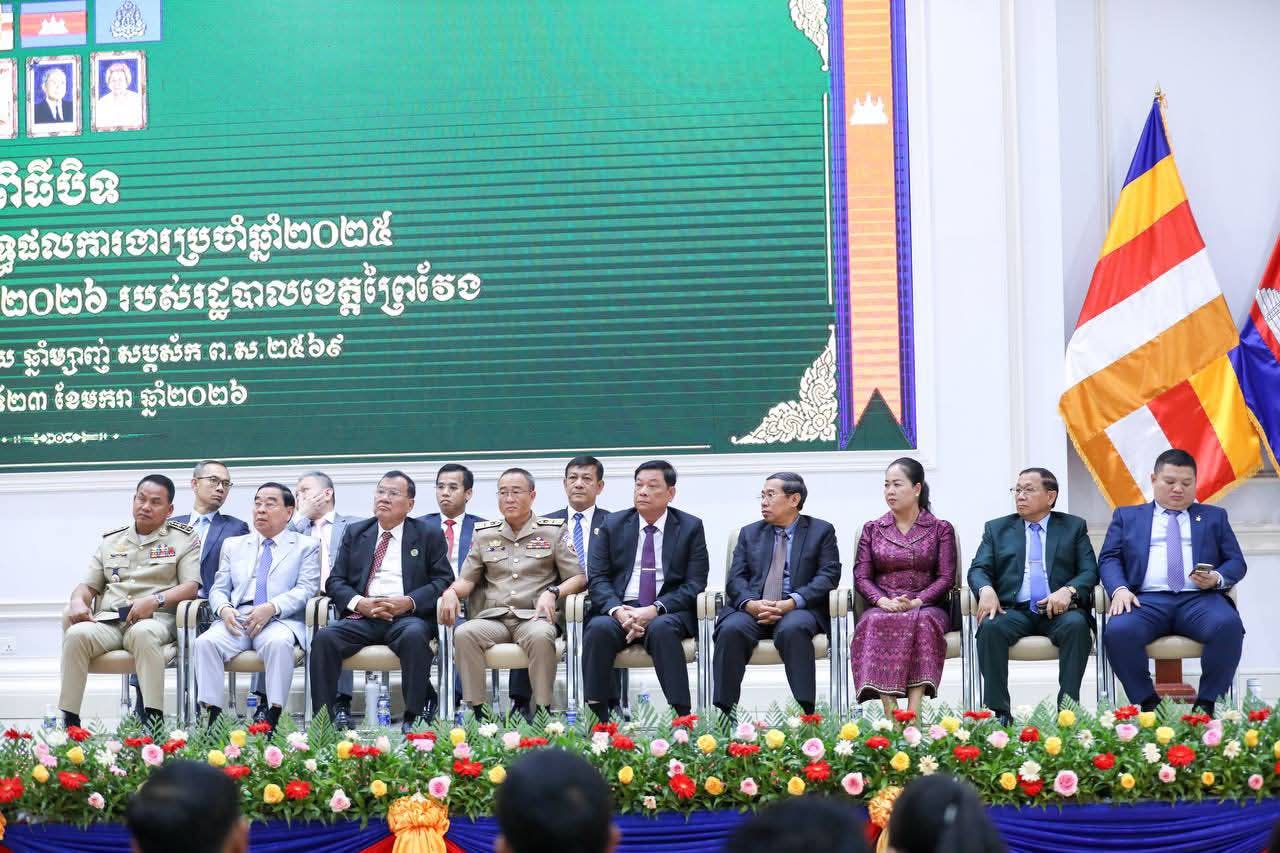 ខេត្តព្រៃវែង ៖ នាព្រឹកថ្ងៃសុក្រ ទី២៣ ខែមករា ឆ្នាំ២០២៦ ឯកឧត្តមអភិសន្តិបណ្ឌិត ស សុខា ឧបនាយករដ្ឋមន្ត្រី រដ្ឋមន្ត្រីក្រសួងមហាផ្ទៃ និងជាប្រធានក្រុមការងាររាជរដ្ឋាភិបាលចុះមូលដ្ឋានខេត្តព្រៃវែង បានអញ្ជើញជាអធិបតីបិទសន្និបាតបូកសរុបលទ្ធផលការងារប្រចាំឆ្នាំ២០២៥ និងលើកទិសដៅការងារឆ្នាំ២០២៦ របស់រដ្ឋបាលខេត្តព្រៃវែង ពិធីនេះប្រព្រឹត្តទៅនៅ សាលប្រជុំធំ “A” នៃសាលាខេត្តព្រៃវែង។