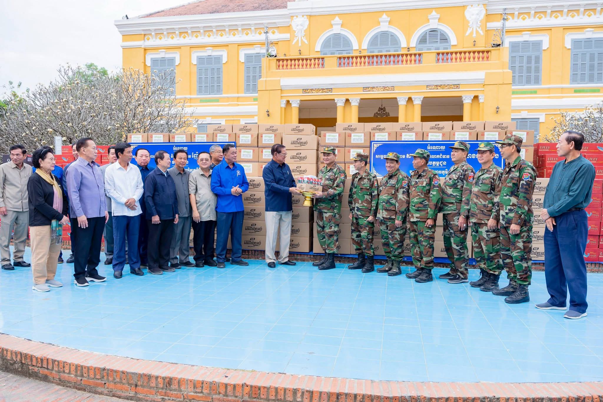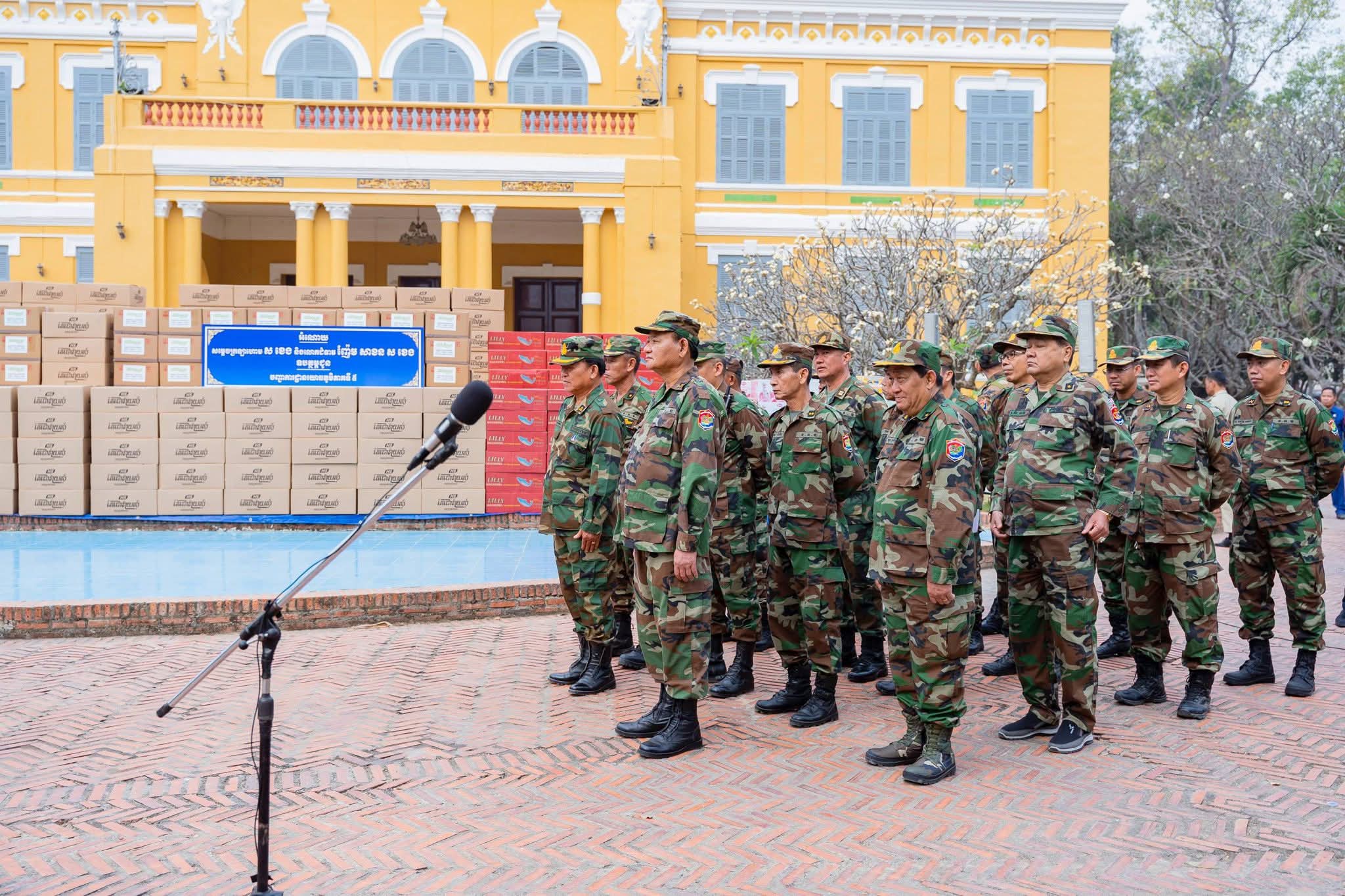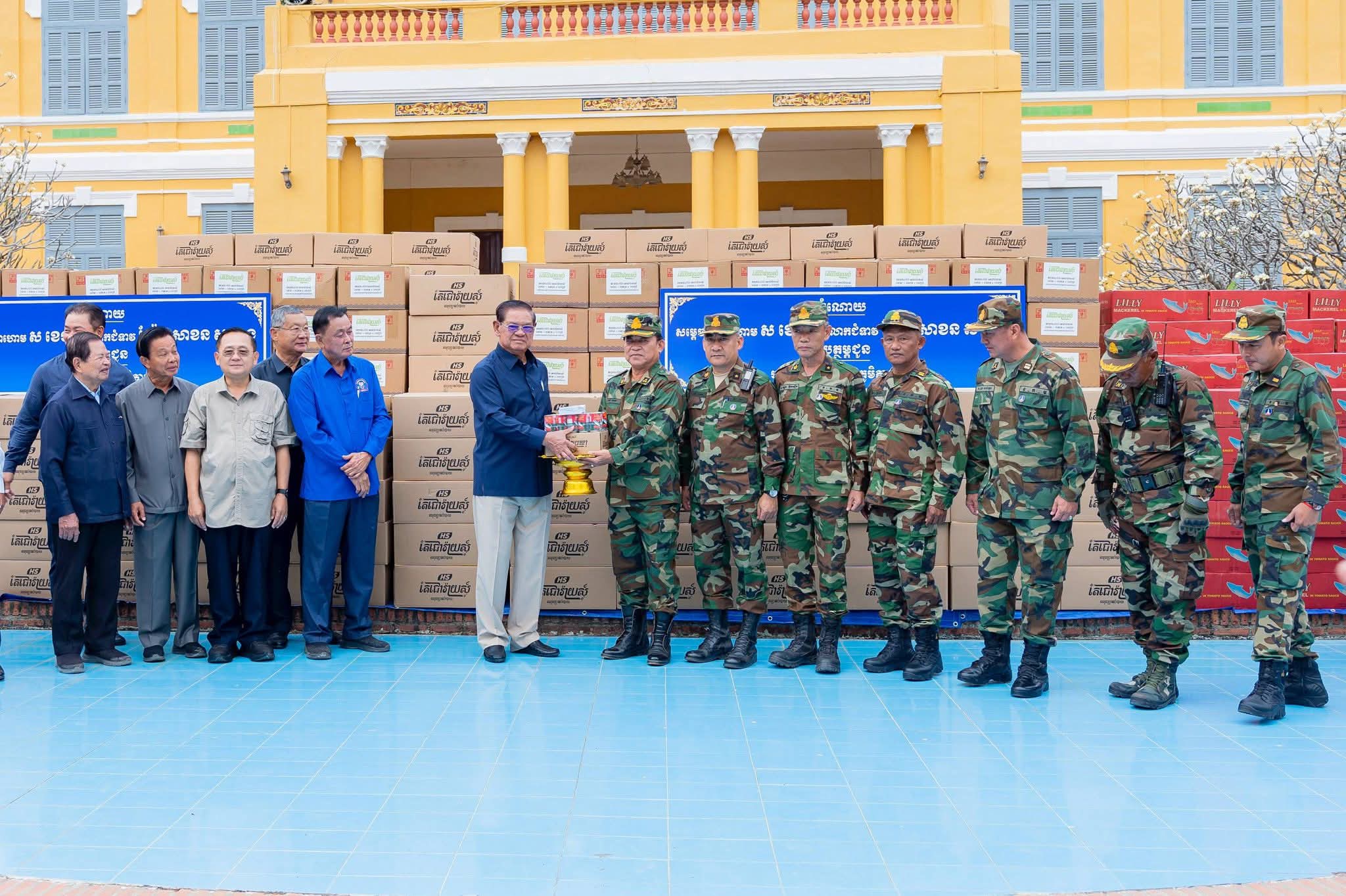 (បាត់ដំបង) ៖ នៅព្រឹកថ្ងៃទី២៤ ខែមករា ឆ្នាំ២០២៦នេះ សម្ដេចក្រឡាហោម ស ខេង ឧត្តមប្រឹក្សាផ្ទាល់ព្រះមហាក្សត្រ និងជាអ្នកតំណាងរាស្ត្រមណ្ឌលបាត់ដំបង បានអញ្ជើញប្រគល់គ្រឿងឧបភោគបរិភោគ ជូនបញ្ជាការដ្ឋានយោធភូមិភាគទី៤ និងបញ្ជាការដ្ឋានយោធភូមិភាគទី៥ នៅសាលាខេត្តបាត់ដំបង។