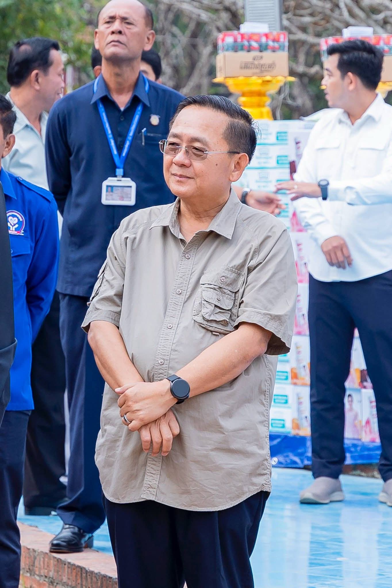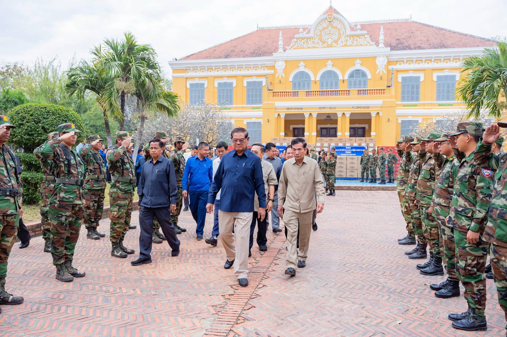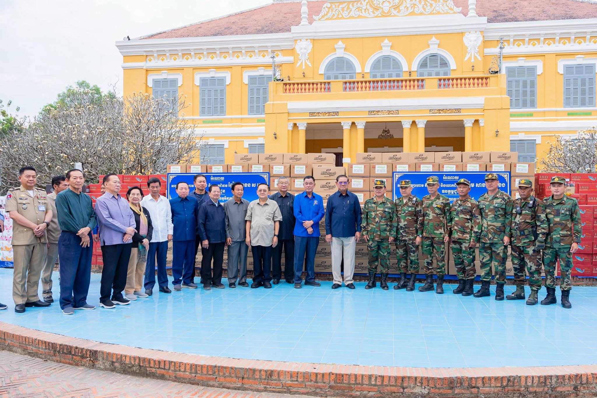 (បាត់ដំបង) ៖ នៅព្រឹកថ្ងៃទី២៤ ខែមករា ឆ្នាំ២០២៦នេះ សម្ដេចក្រឡាហោម ស ខេង ឧត្តមប្រឹក្សាផ្ទាល់ព្រះមហាក្សត្រ និងជាអ្នកតំណាងរាស្ត្រមណ្ឌលបាត់ដំបង បានអញ្ជើញប្រគល់គ្រឿងឧបភោគបរិភោគ ជូនបញ្ជាការដ្ឋានយោធភូមិភាគទី៤ និងបញ្ជាការដ្ឋានយោធភូមិភាគទី៥ នៅសាលាខេត្តបាត់ដំបង។