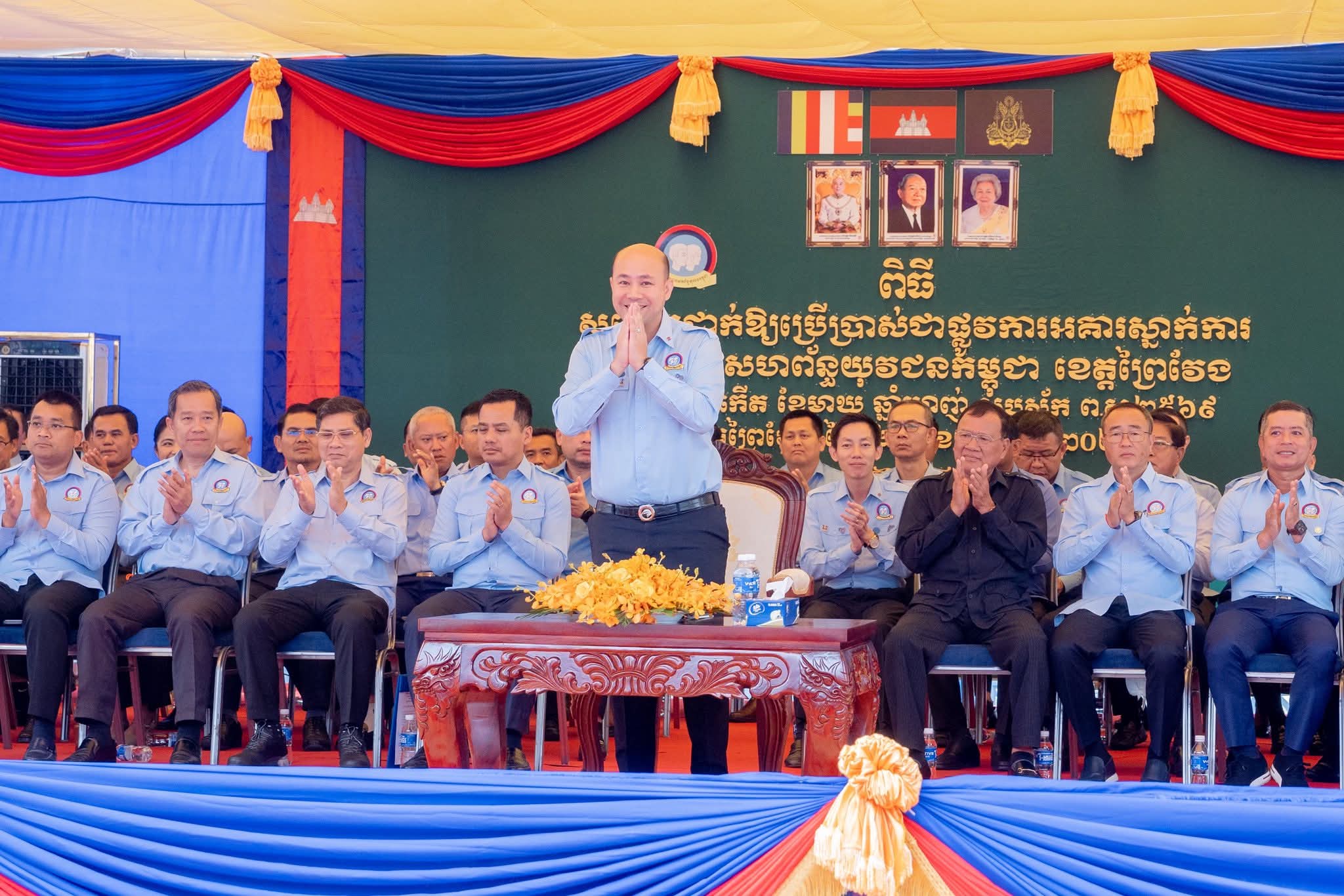 (ព្រៃវែង) :នៅព្រឹកថ្ងៃសៅរ៍ ទី២៤ ខែមករា ឆ្នាំ២០២៦ នេះ ឯកឧត្តម សួន សុម៉ាលីន សមាជិកគណ:អចិន្ត្រៃយ៍សហភាពសហព័ន្ធយុវជនកម្ពុជាថ្នាក់កណ្ដាល និងជាអភិបាល នៃគណ: អភិបាលខេត្តព្រៃវែង និងលោក ស្បោង សារ៉ាត ប្រធានក្រុមប្រឹក្សាខេត្តបានអញ្ជើញចូលរួមក្នុងពិធីសម្ពោធដាក់ឱ្យប្រើប្រាស់ជាផ្លូវការអគារទីស្នាក់ការសហភាពសហព័ន្ធយុវជនកម្ពុជា ខេត្តព្រៃវែង ក្រោមអធិបតីភាពដ៏ខ្ពង់ខ្ពស់ឯកឧត្តម ហ៊ុន ម៉ានី ប្រធានសហភាពសហព័ន្ធយុវជនកម្ពុជា (ស.ស.យ.ក.) នៅបរិវេណទីស្នាក់ការ ស្ថិតក្នុងក្រុងព្រៃវែង ខេត្តព្រៃវែង។
