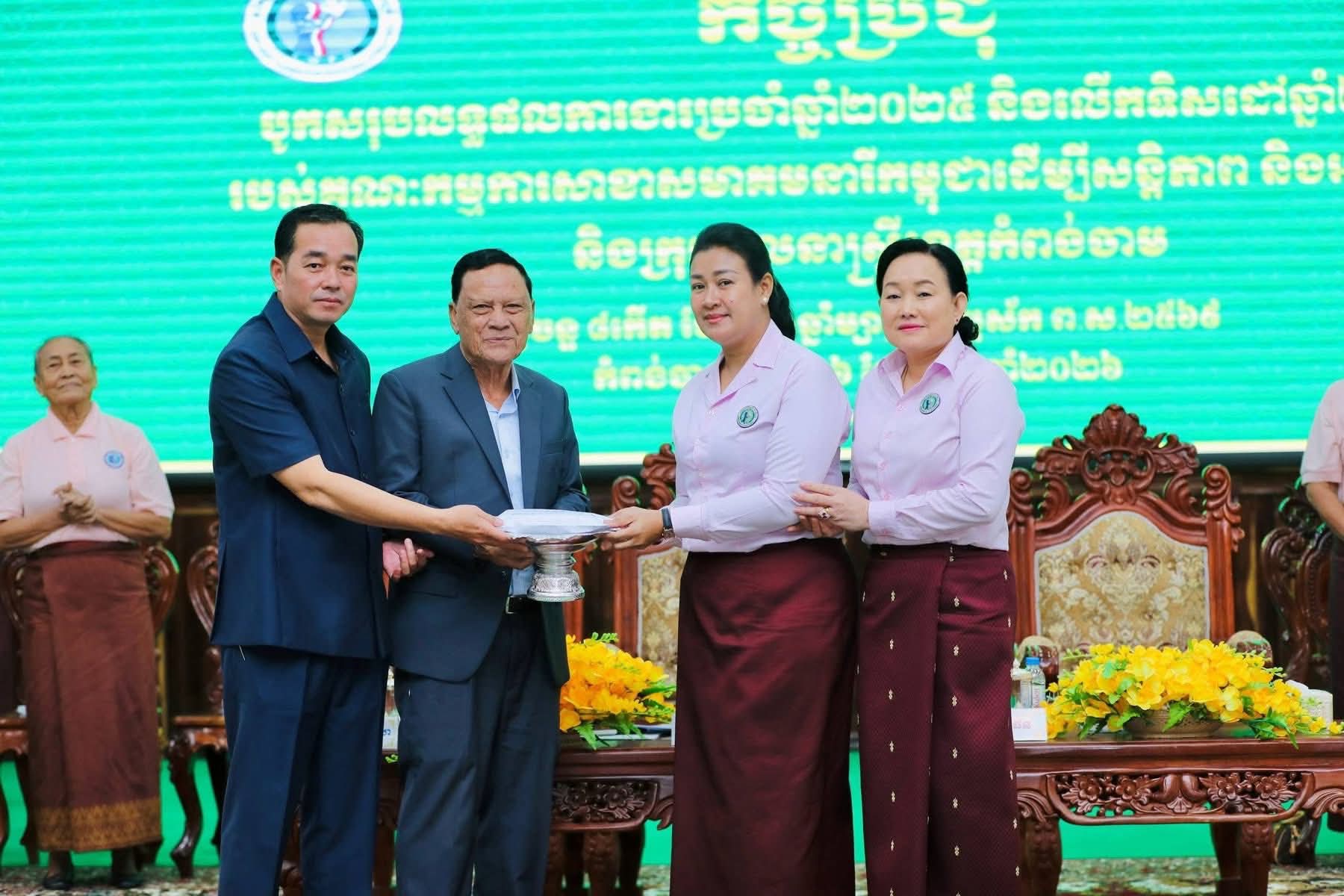 (កំពង់ចាម) ឯកឧត្តម អ៊ុន ចាន់ដា អភិបាល នៃគណៈអភិបាលខេត្តកំពង់ចាម បានស្នើសុំដល់សមាជិកសមាគមនារី តាម ខេត្ត ក្រុង-ស្រុក ជួយធ្វើចលនាធ្វើការងារសង្គម តាមរយៈ ជួយស្ត្រីមានផ្ទៃពោះ ស្ត្រីមេម៉ាយ ចាស់ជរា ក្មេងកំព្រា ជនពិការ ឲ្យបានផុសផុលដើម្បីរួមចំណែក ជាមួយរាជរដ្ឋាភិបាលកម្ពុជា ក្នុងការកាត់បន្ថយ ភាពក្រីក្រ និងលើកស្ទួយជីវភាពប្រជាពលរដ្ឋ។