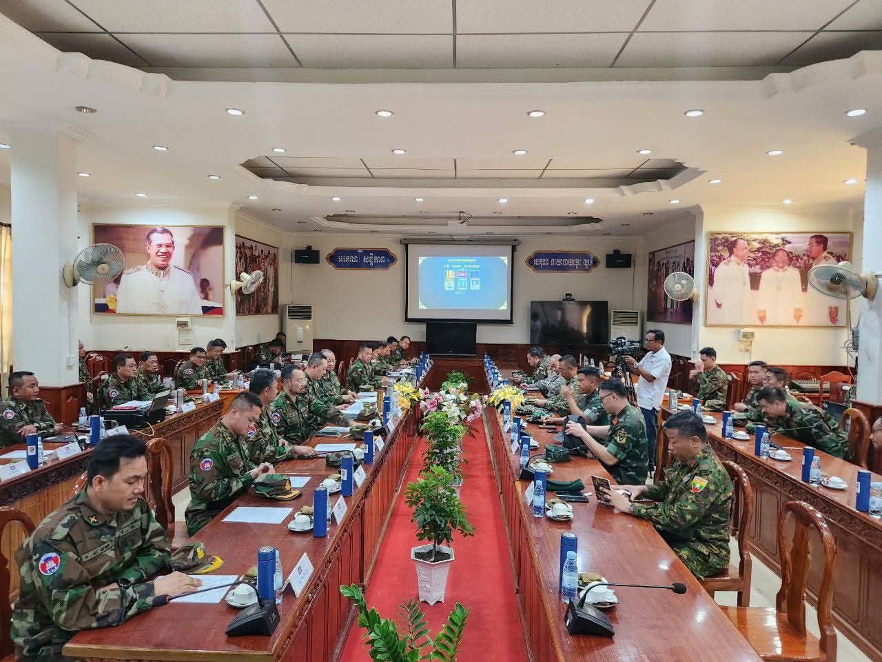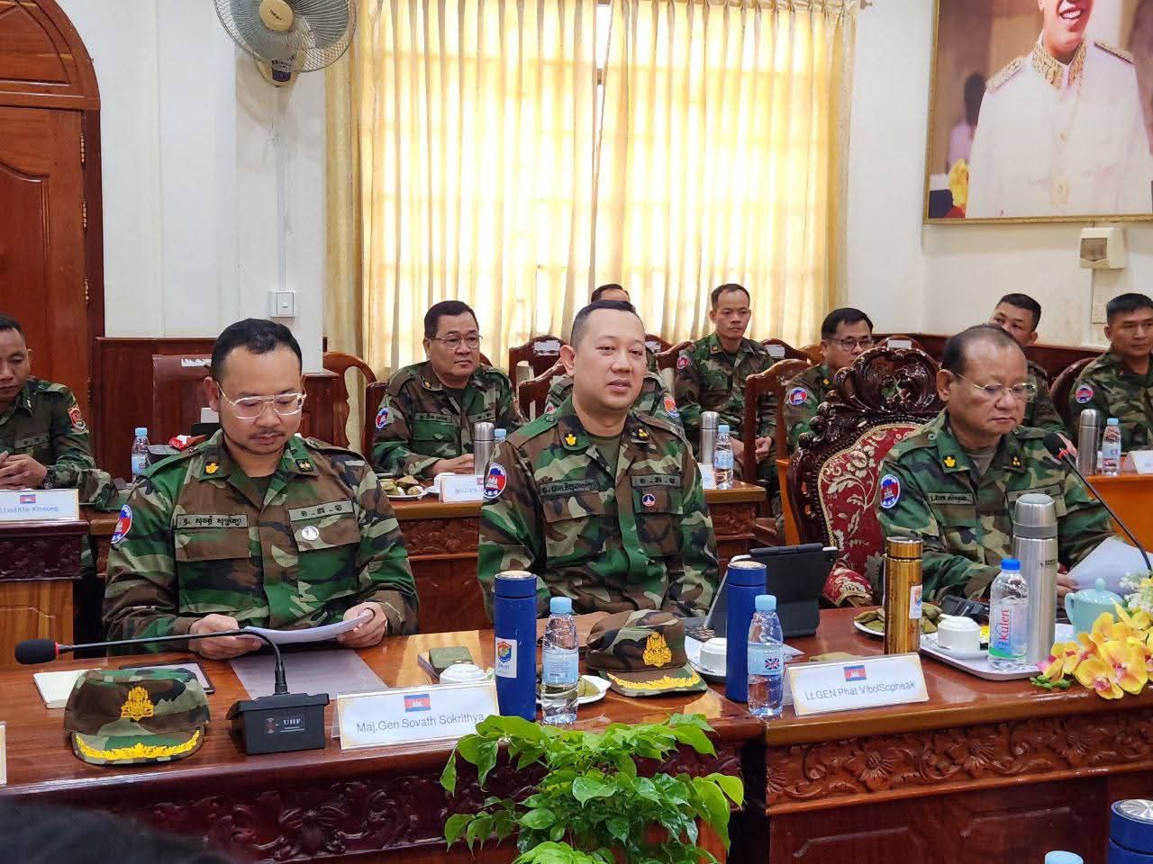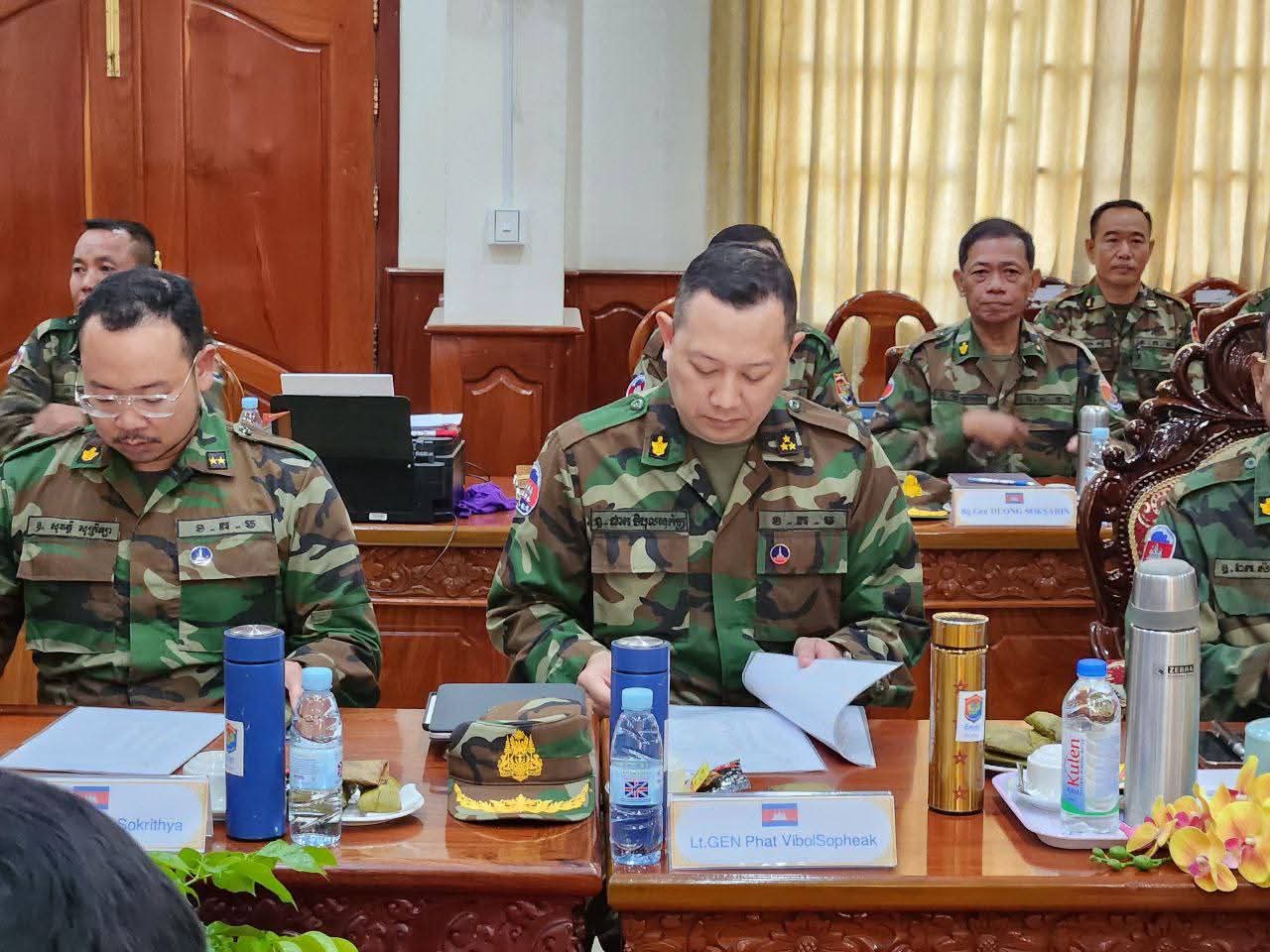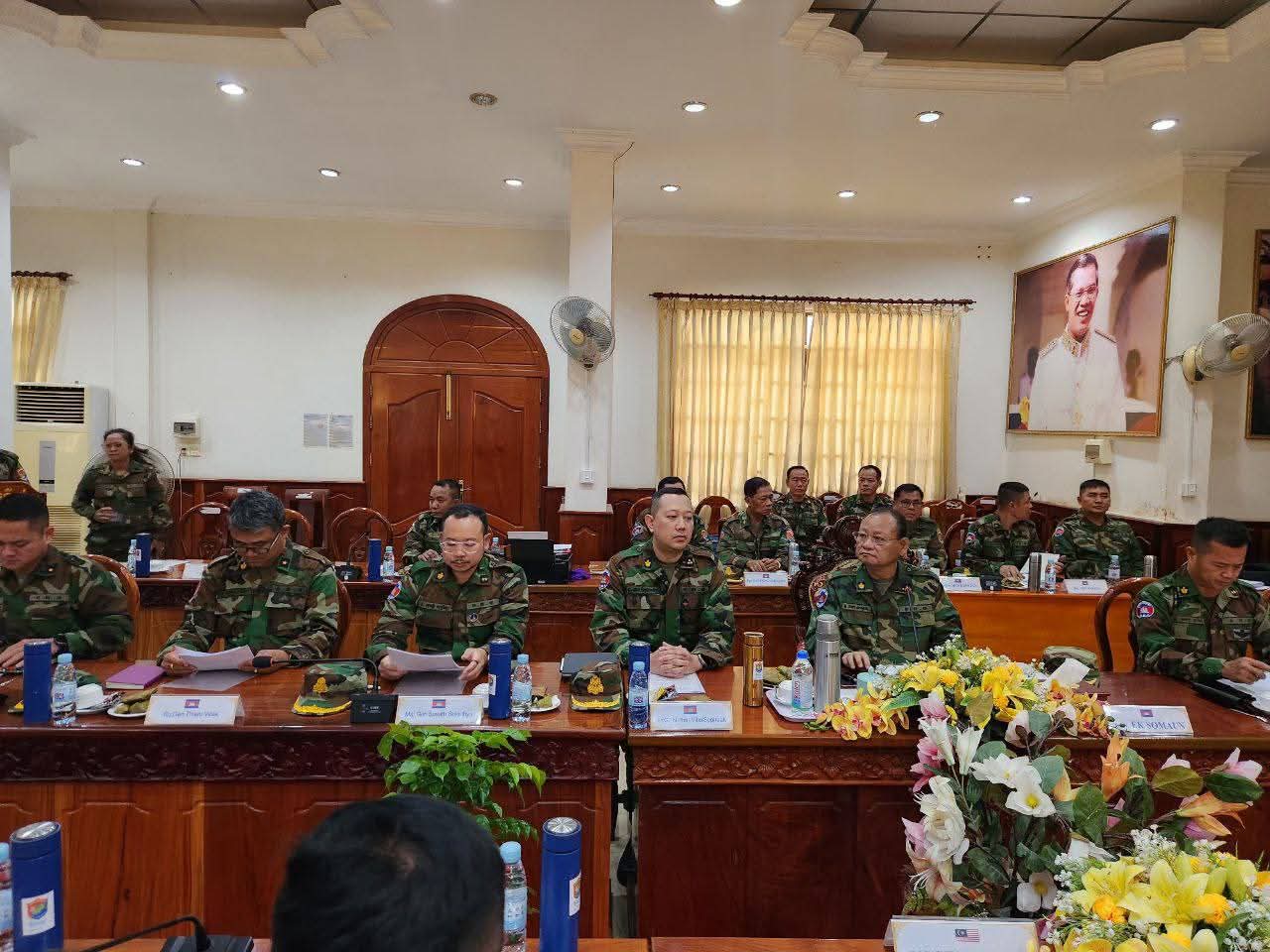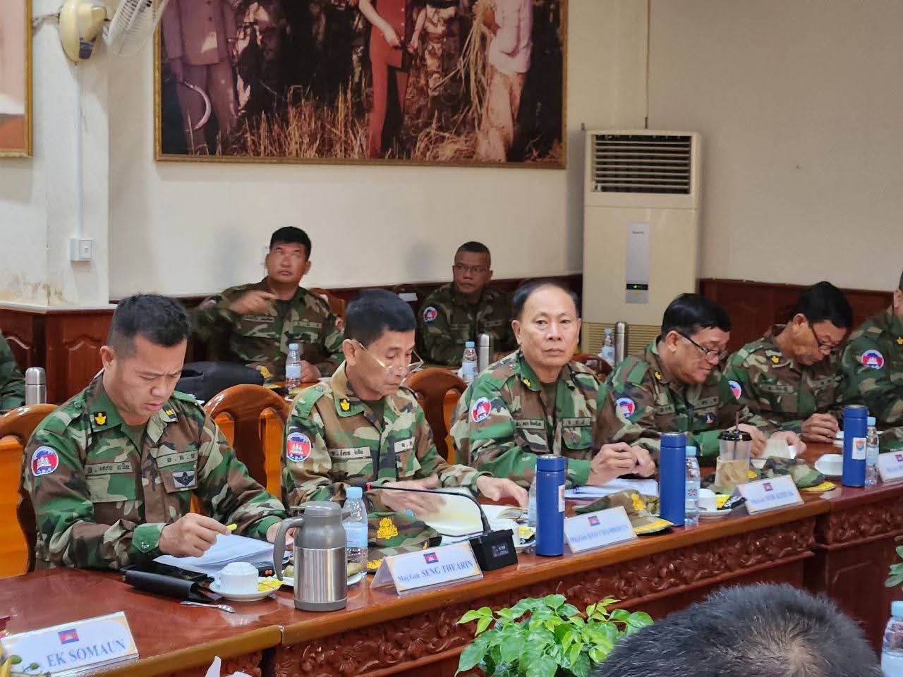 ឯកឧត្តម ឧត្តមសេនីយ៍ឯក ឯក សំអូន មេបញ្ជាការរងកងទ័ពជើងគោក មេបញ្ជាការយោធភូមិភាគទី៥ ខេត្តបាត់ដំបង បានជម្រាបជូនប្រតិភូដែលមានសមាជិកសរុបចំនួន ៧ប្រទេសអំពីបច្ចុប្បន្នភាពស្ថានភាពព្រំដែនកម្ពុជា-ថៃ ។