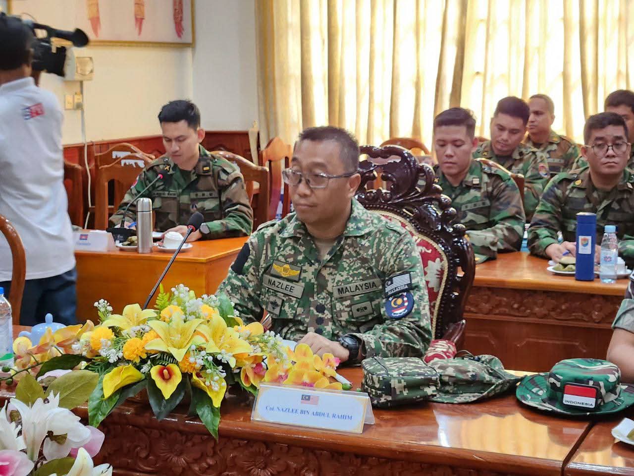 សូមបញ្ជាក់ថា អនុព័ន្ធយោធាដែលមានតំណាងមកពីប្រទេស (ប្រ៊ុយណេ ឥណ្ឌូនេស៊ី ឡាវ មីយ៉ាន់ម៉ា ហ្វីលីពីន និងវៀតណាម) ដែលមាននិវេសន្នដ្ឋានក្នុង និងក្រៅប្រទេសកម្ពុជា ដោយមានសមាជិកសរុបចំនួន ៧ប្រទេស បានចេញដំណើរទៅកាន់ទីតាំងជាក់ស្តែងផ្សេងៗ ដើម្បីសង្កេតមើលស្ថានភាពសន្តិសុខតាមព្រំដែន ដែលប៉ះពាល់ផ្ទាល់ក្នុងអំឡុងជម្លោះព្រំដែនកម្ពុជា-ថៃ ដូចខាងក្រោម៖