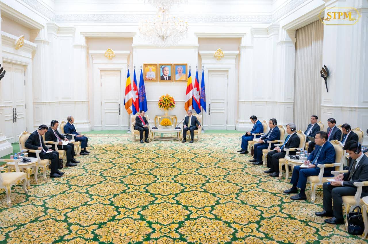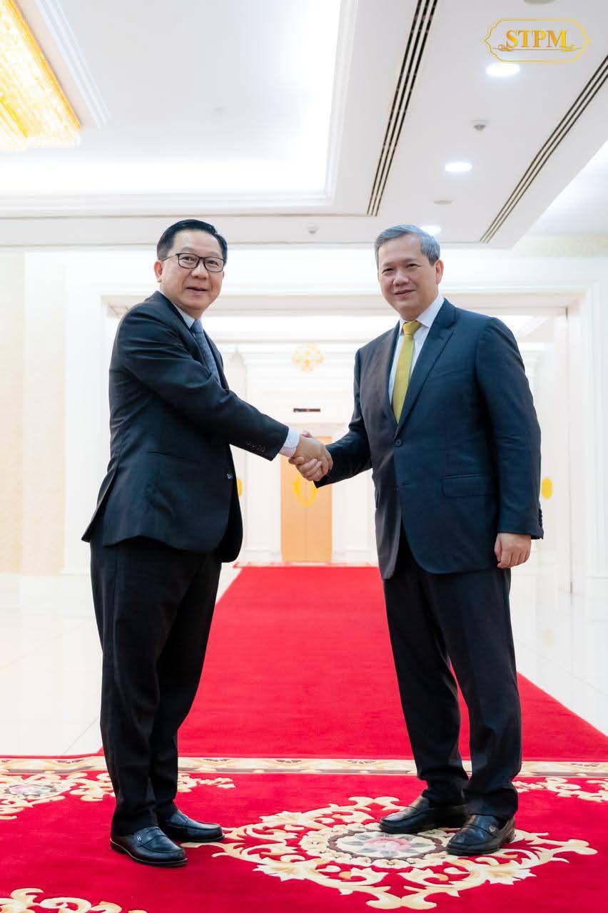 (ភ្នំពេញ) :នាព្រឹកថ្ងៃទី២៦ ខែមករា ឆ្នាំ២០២៦, សម្តេចមហាបវរធិបតី ហ៊ុន ម៉ាណែត នាយករដ្ឋមន្ត្រីនៃព្រះរាជាណាចក្រកម្ពុជា បានអនុញ្ញាតឱ្យឯកឧត្តមបណ្ឌិត Linkham Douangsavanh រដ្ឋមន្ត្រីក្រសួងកសិកម្ម និងបរិស្ថាន នៃសាធារណរដ្ឋប្រជាធិបតេយ្យប្រជាមានិតឡាវ ចូលជួបសម្តែងការគួរសម និងពិភាក្សាការងារ នៅវិមានសន្តិភាព។