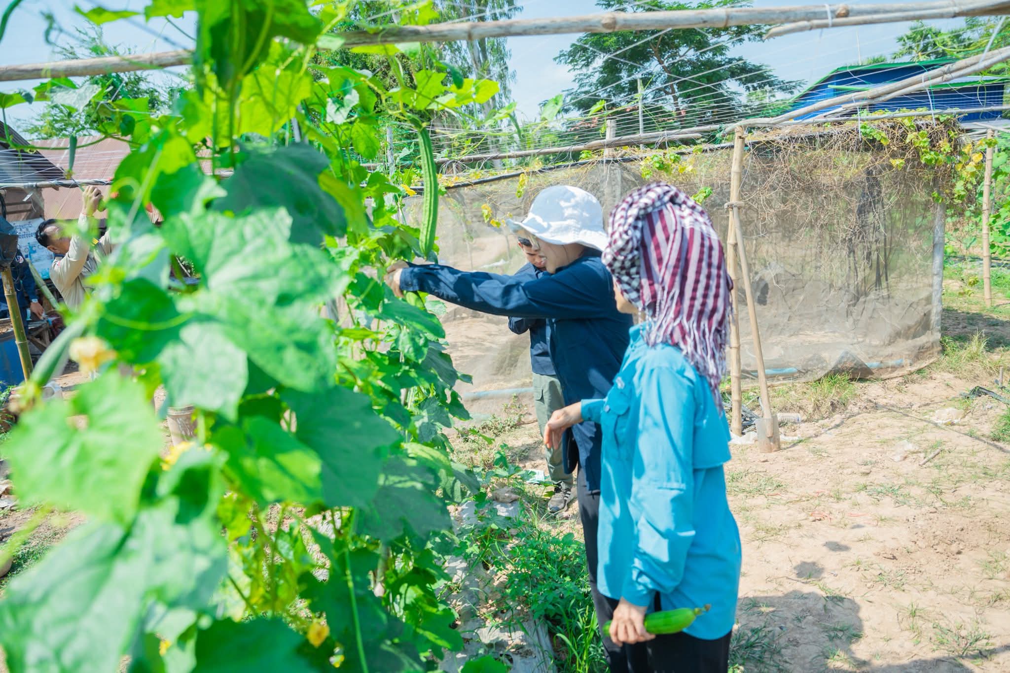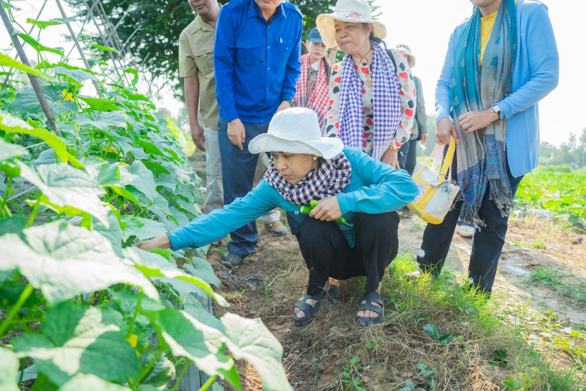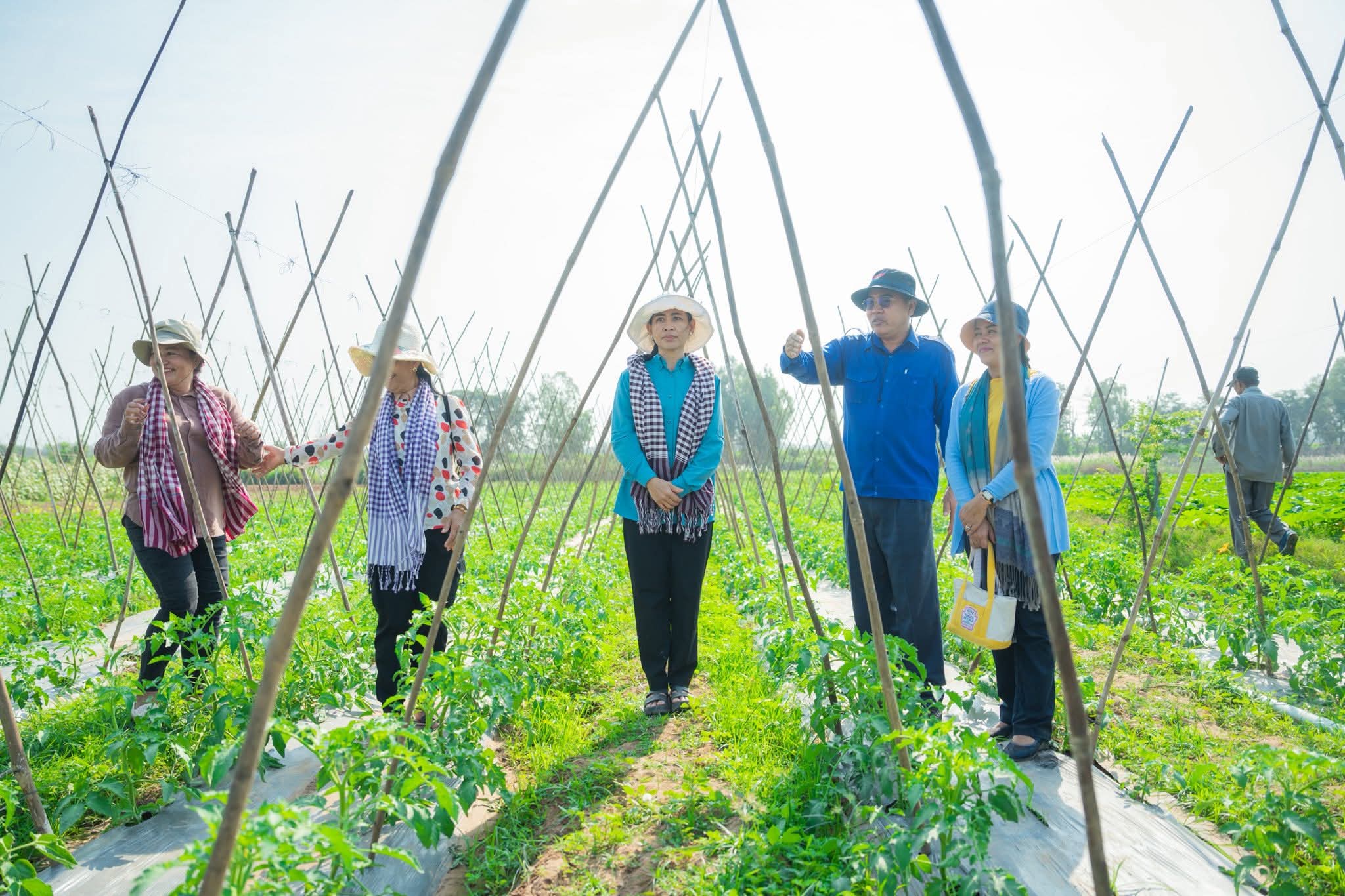 ក្នុងឱកាសនោះផងដែរ លោកជំទាវ និងក្រុមការងារបានពិនិត្យយ៉ាងយកចិត្តទុកដាក់លើការដាំដុះដំណាំរួមផ្សំជាច្រើនប្រភេទរួមមាន÷ ដំណាំល្ពៅ ល្លុង ត្រសក់ ម្រះ ប៉េងប៉ោះ ម្ទេស ខាត់ណា និងននោង ។ល។ លោកជំទាវបានកោតសរសើរចំពោះការខិតខំប្រឹងប្រែងរបស់បងប្អូនកសិករ ដែលចេះច្នៃប្រឌិតផ្ទៃដីទំនេរមកបង្កើតជាប្រភពចំណូល និងធានាបាននូវការផ្គត់ផ្គង់បន្លែសុវត្ថិភាពសម្រាប់គ្រួសារ ក៏ដូចជាទីផ្សារផងដែរ។ ជាមួយគ្នានោះ លោកជំទាវ ក៏បានលើកទឹកចិត្តឱ្យកសិករ បន្តពង្រីកការដាំដុះបន្ថែមទៀត ដោយប្រើប្រាស់បច្ចេកទេសកសិកម្មឱ្យបានត្រឹមត្រូវ ដើម្បីបង្កើនទិន្នផល គុណភាពដំណាំសម្រាប់រក្សាសន្តិសុខស្បៀង និងអាជីវកម្មបង្កើតចំណូលក្រៅប្រព័ន្ធ សំដៅលើកកម្ពស់ជីវភាពរស់នៅប្រចាំថ្ងៃឱ្យកាន់តែមានភាពប្រសើរឡើង។